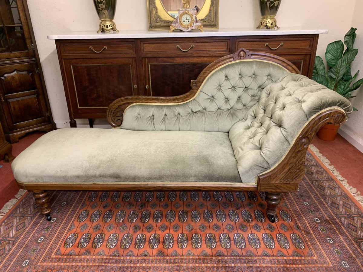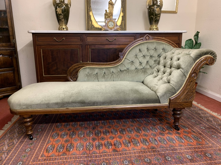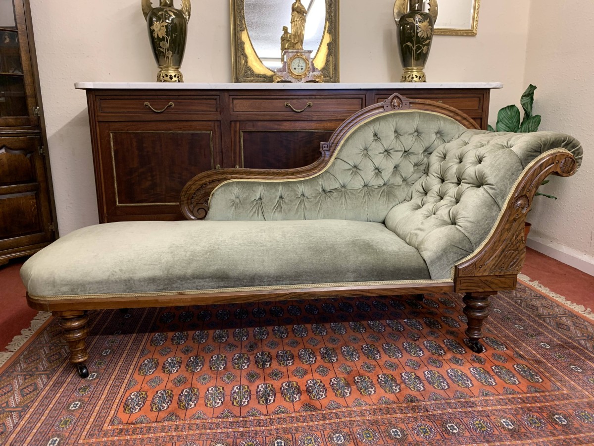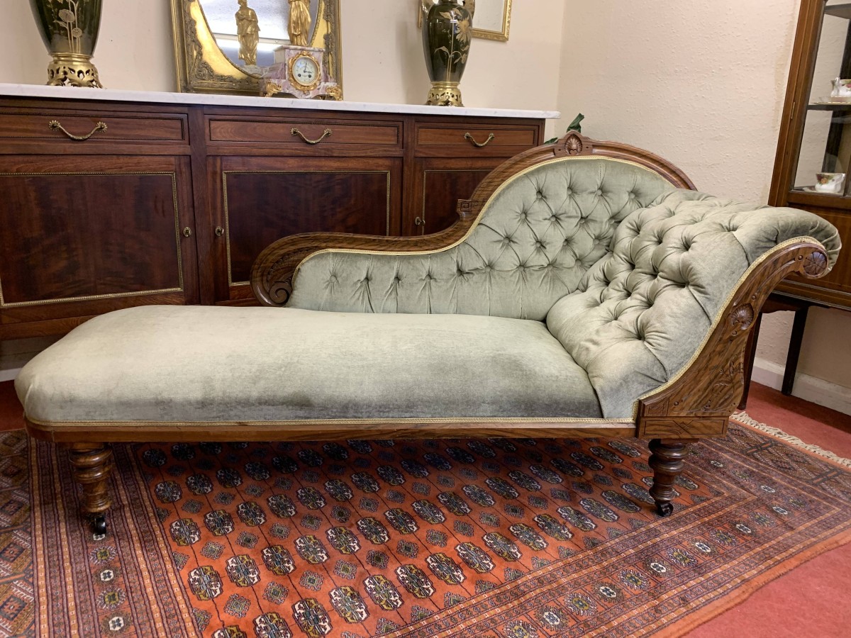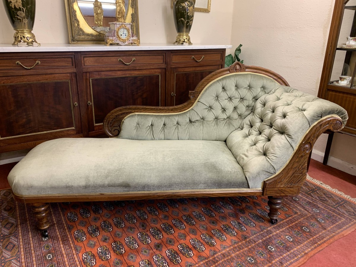 - Outstanding Quality Victorian Carved Walnut Upholstered Chaise Longue – Now Sold