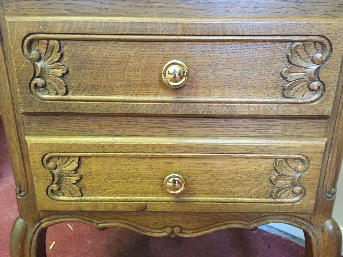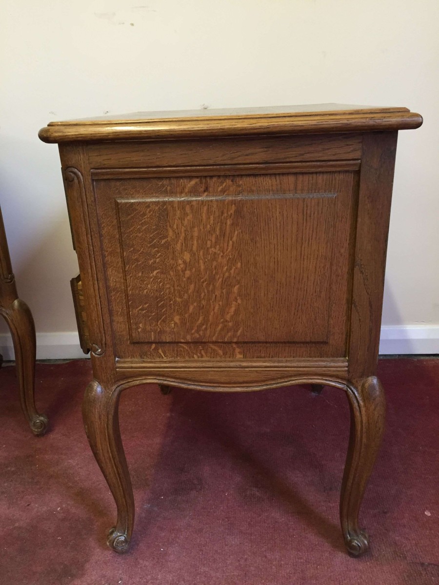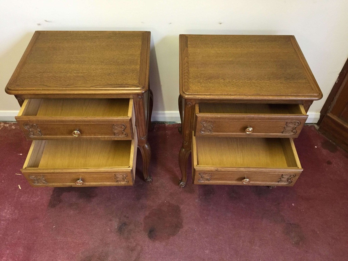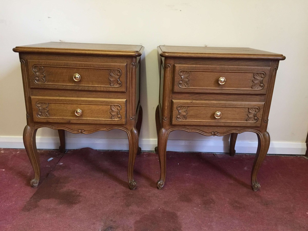 Lovely pair of French bedsides cabinets each with two drawers standing on cabriole legs.