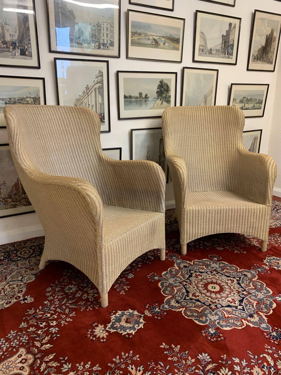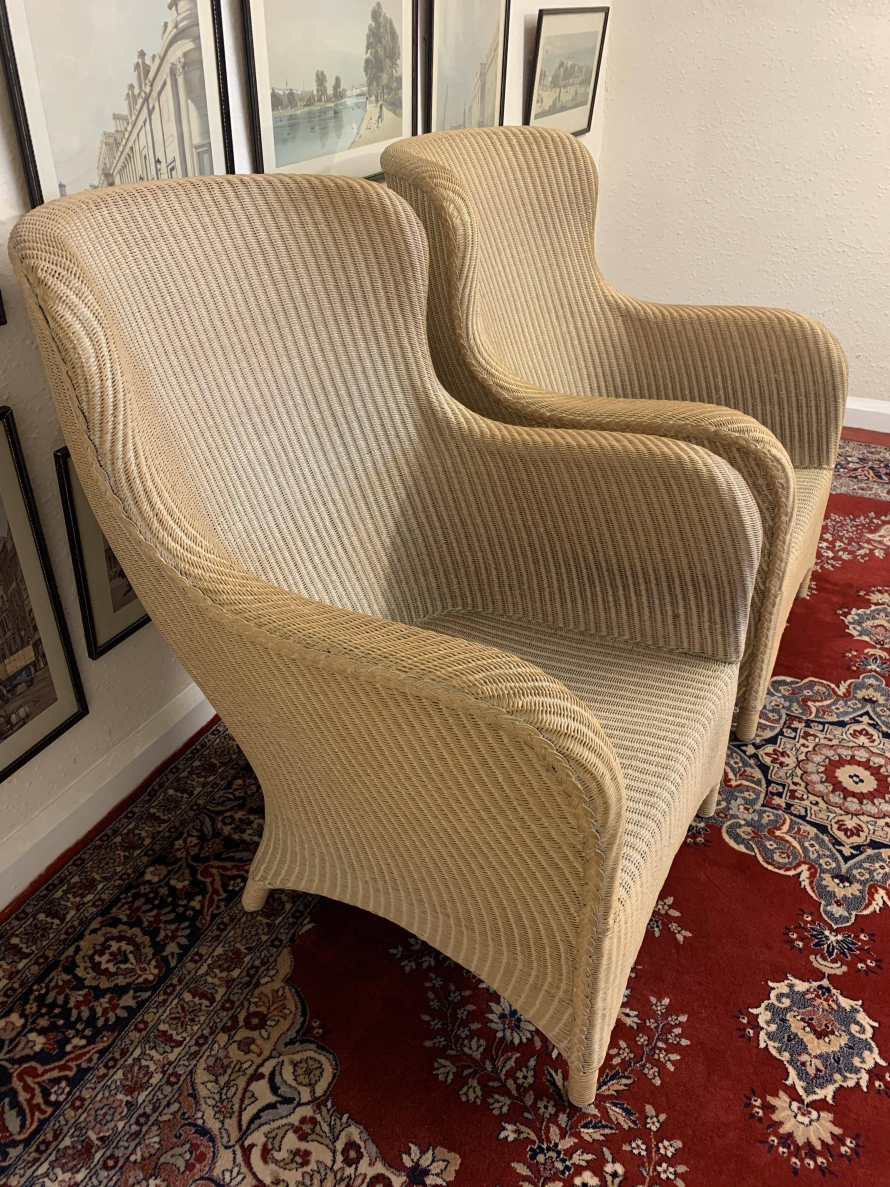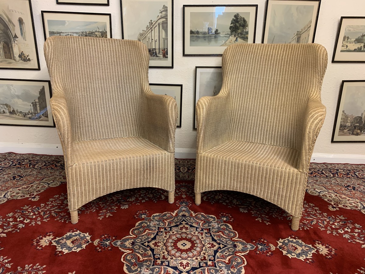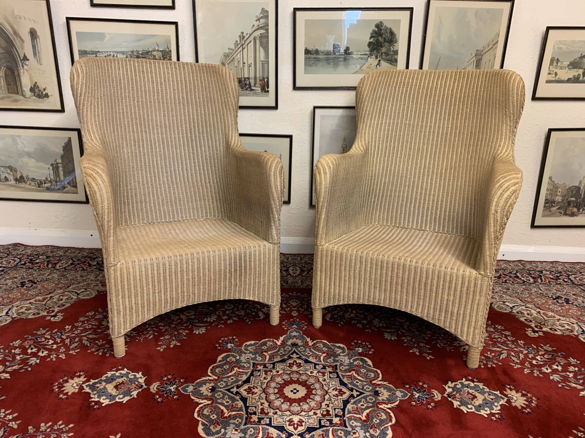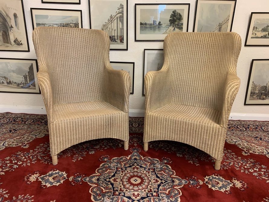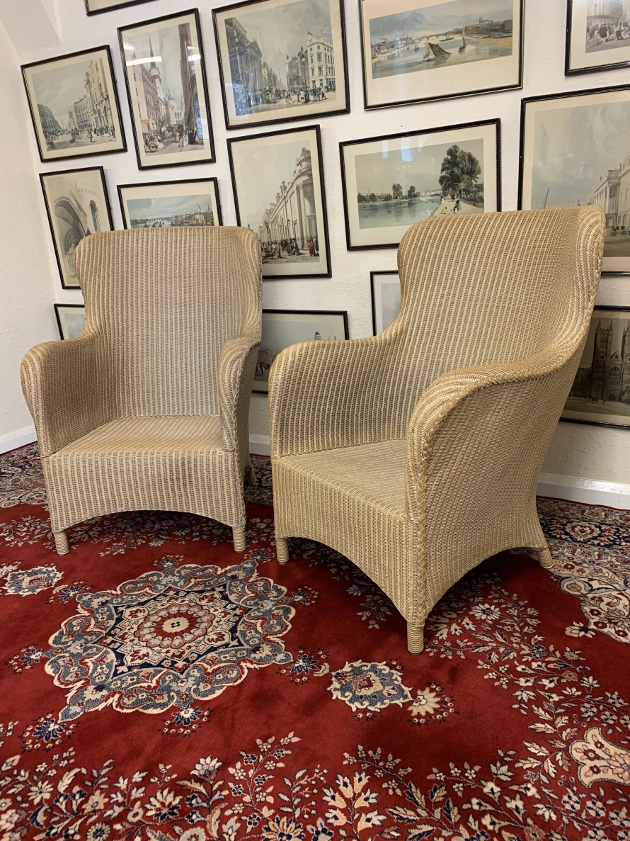A super pair of Loom armchairs which are in excellent condition. Each chair has a high back with shaped arms and comfy seat. The chairs each sit on four legs.
