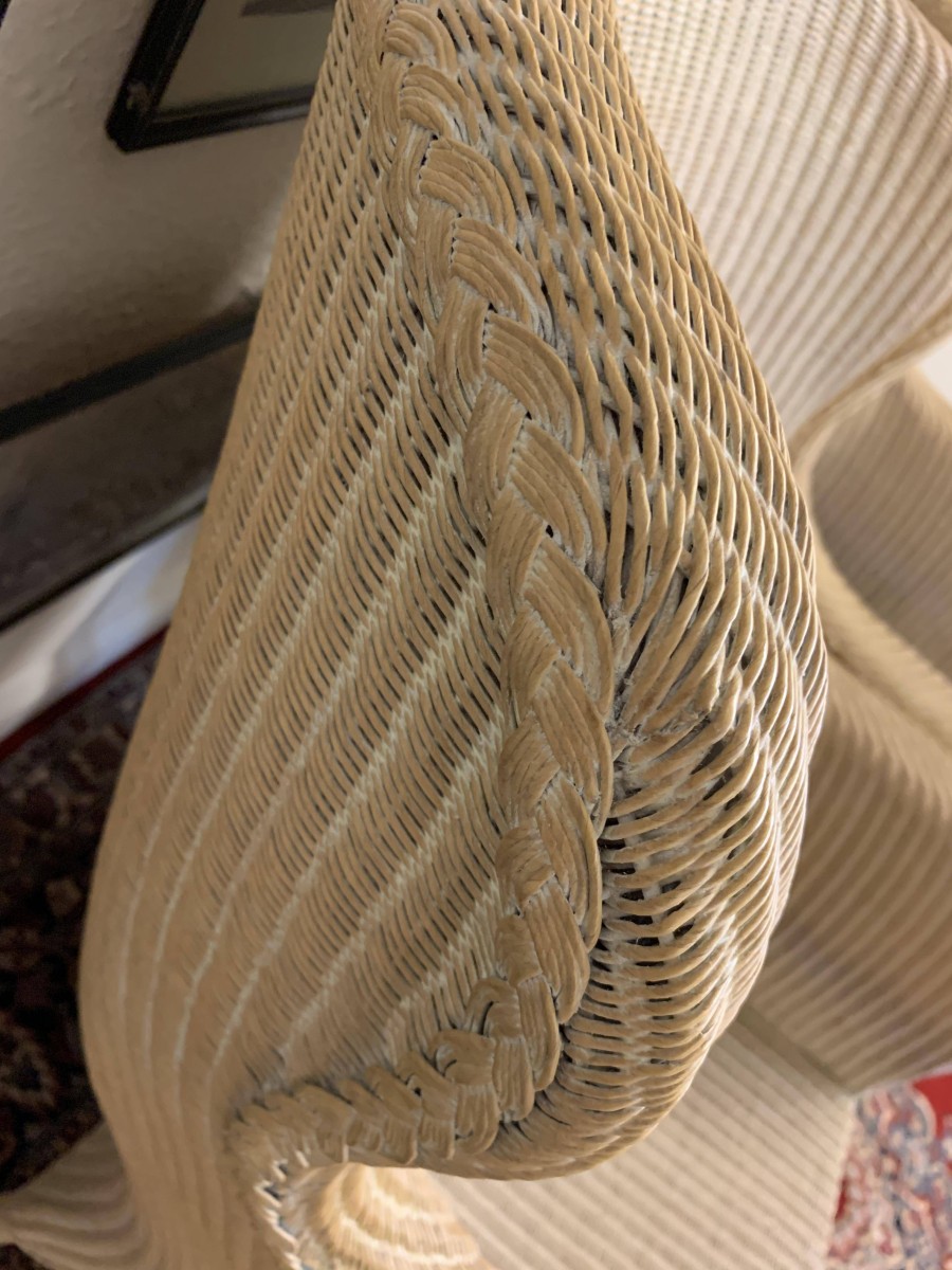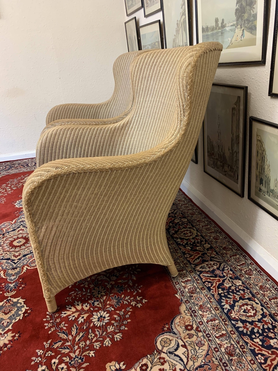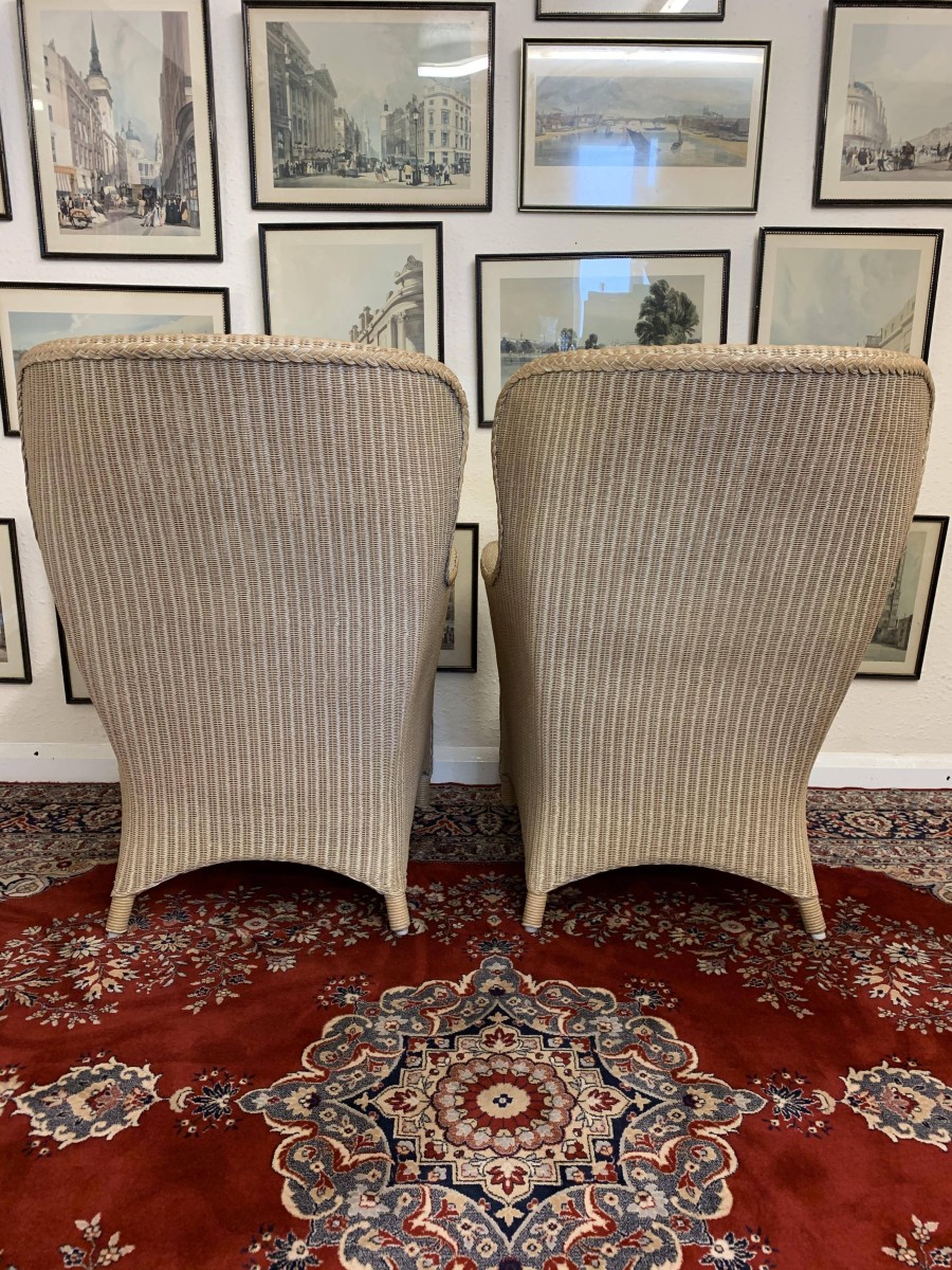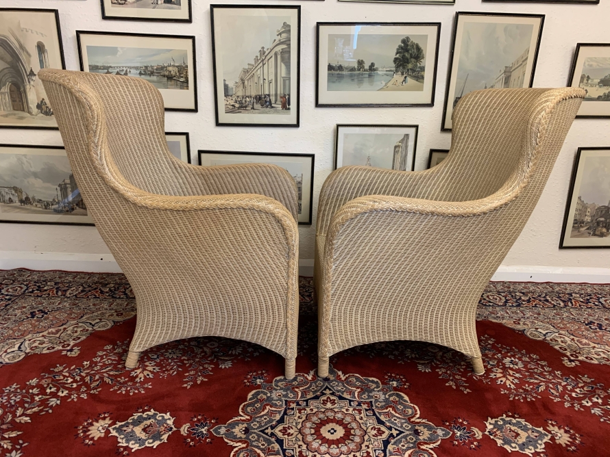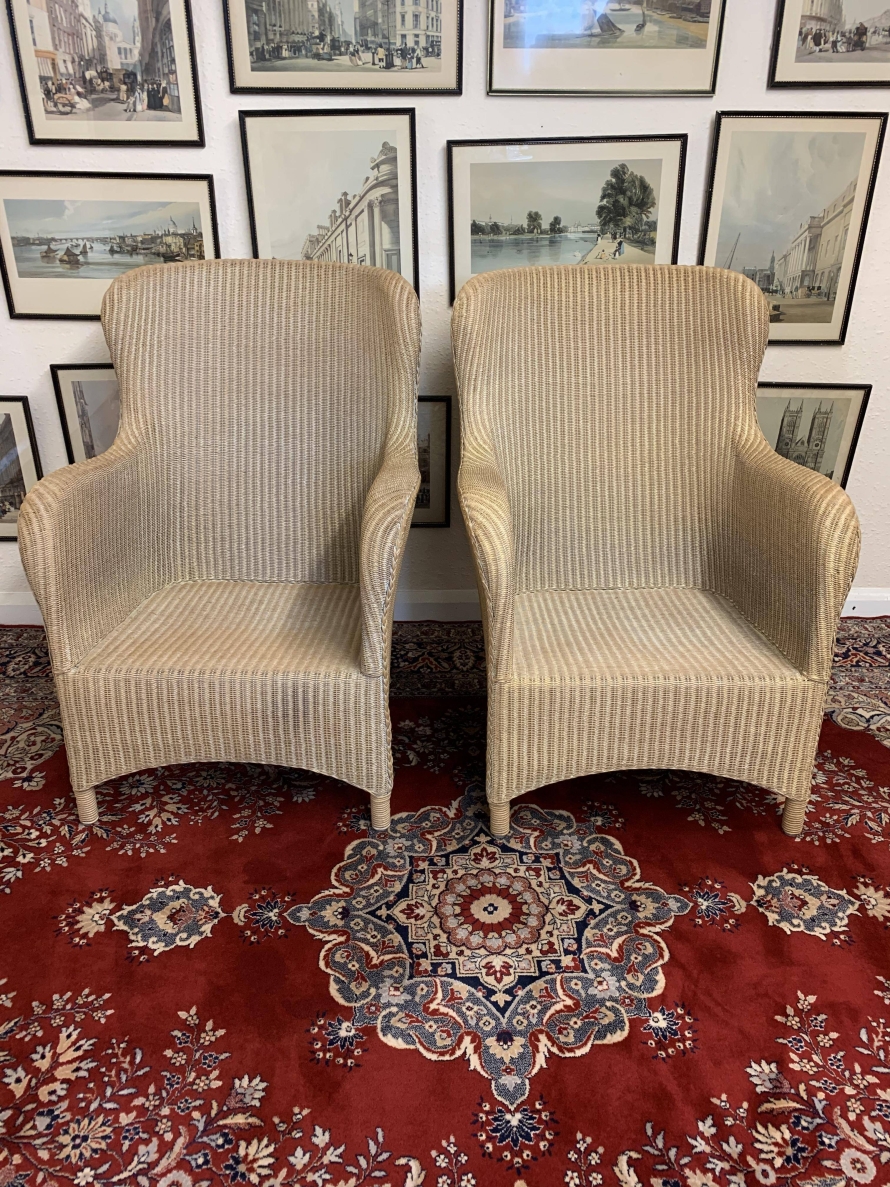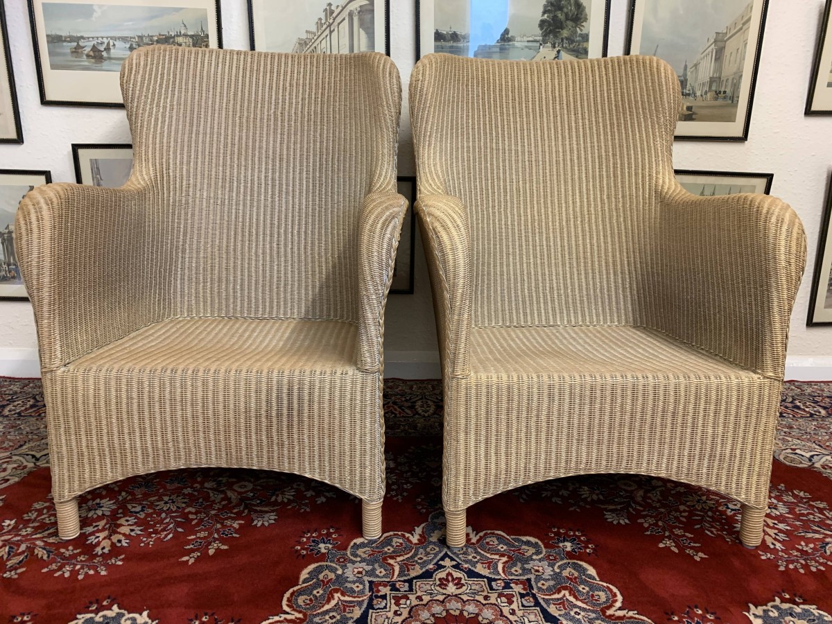 A super pair of Loom armchairs which are in excellent condition. Each chair has a high back with shaped arms and comfy seat. The chairs each sit on four legs.