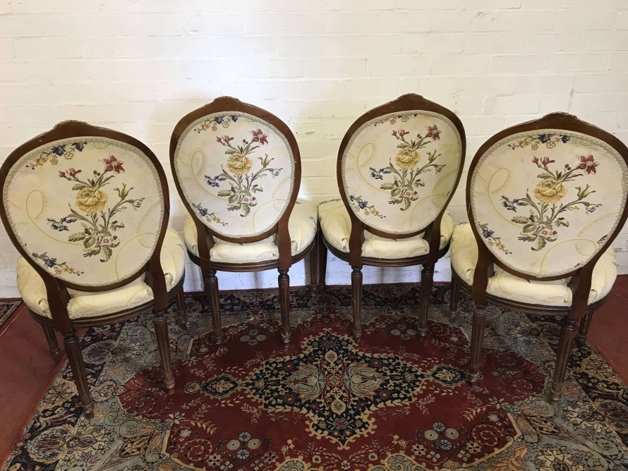 - Pretty Set Of Four Upholstered Cameo Back Chairs – Now Sold