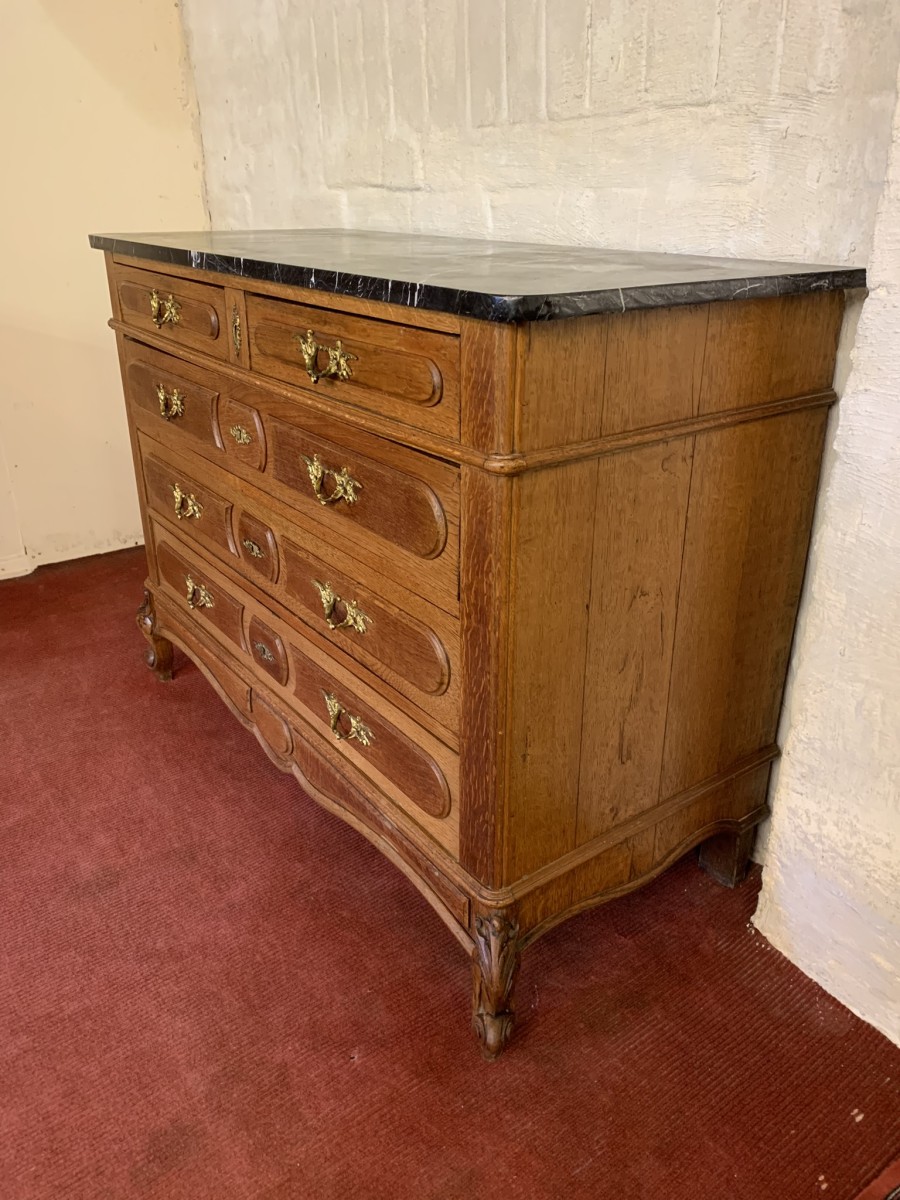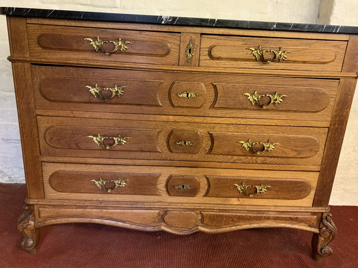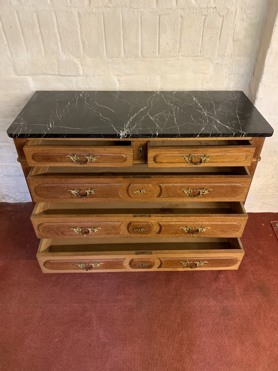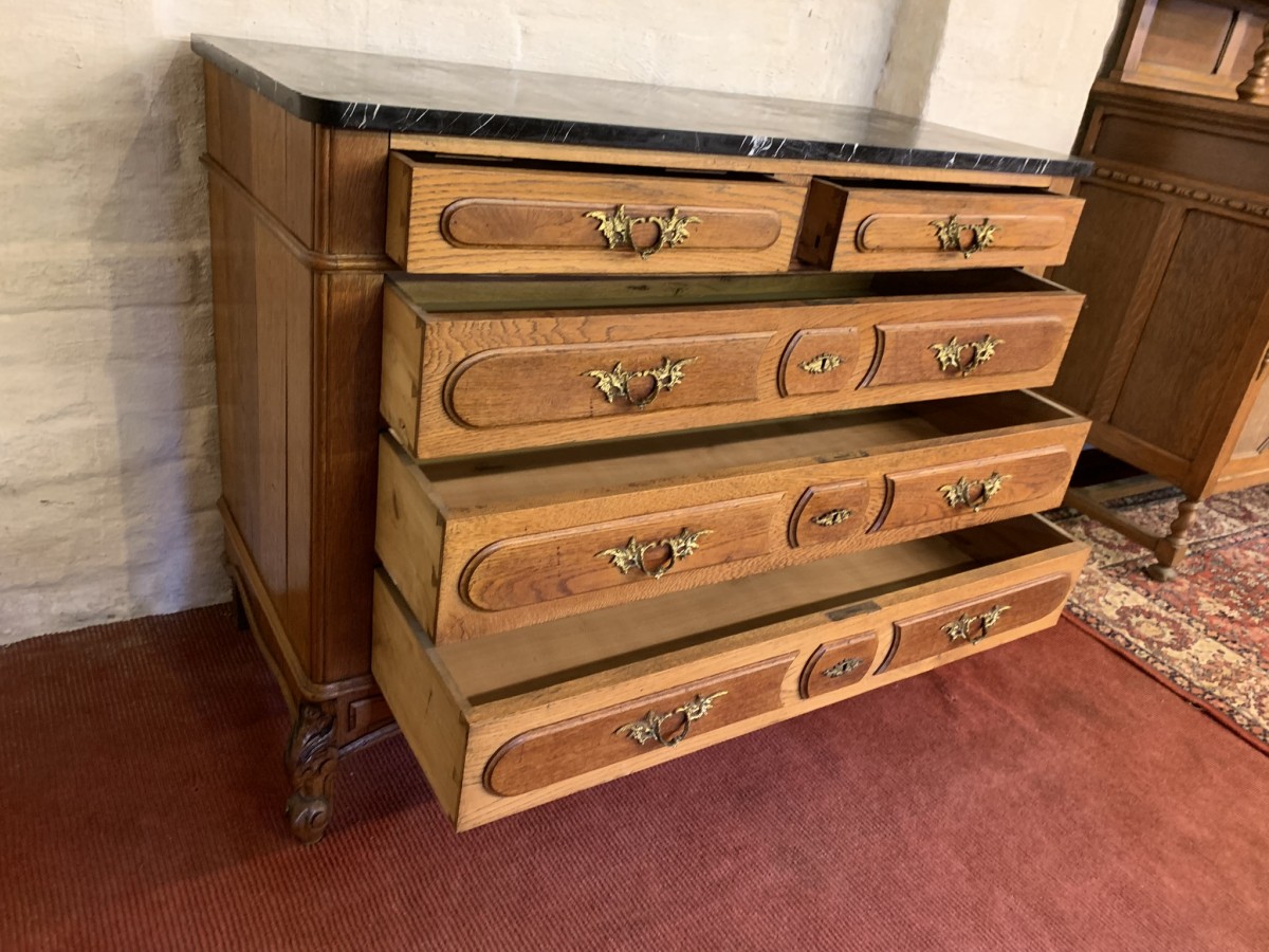 - Quality Antique French Oak Marble Top Commode/chest Of Drawers Cira 1910