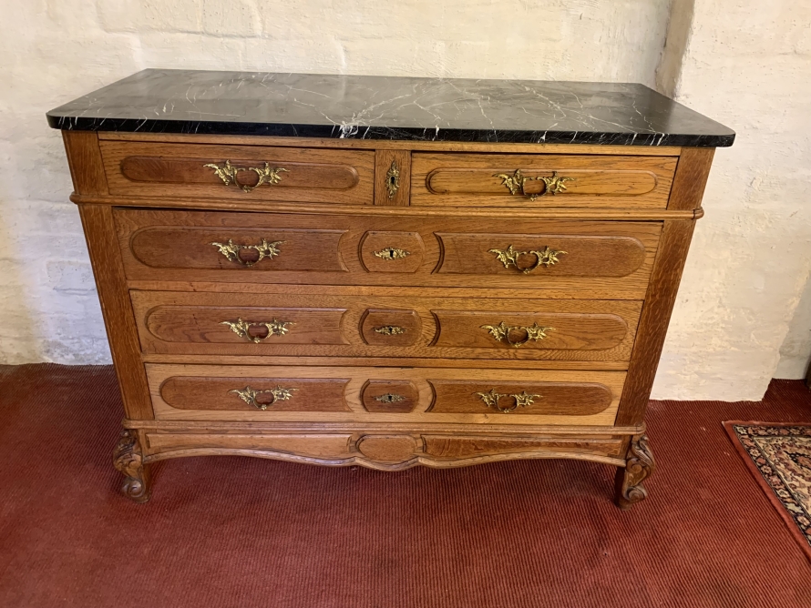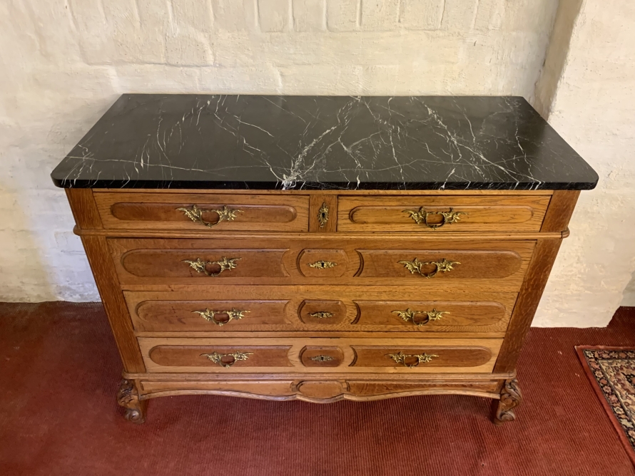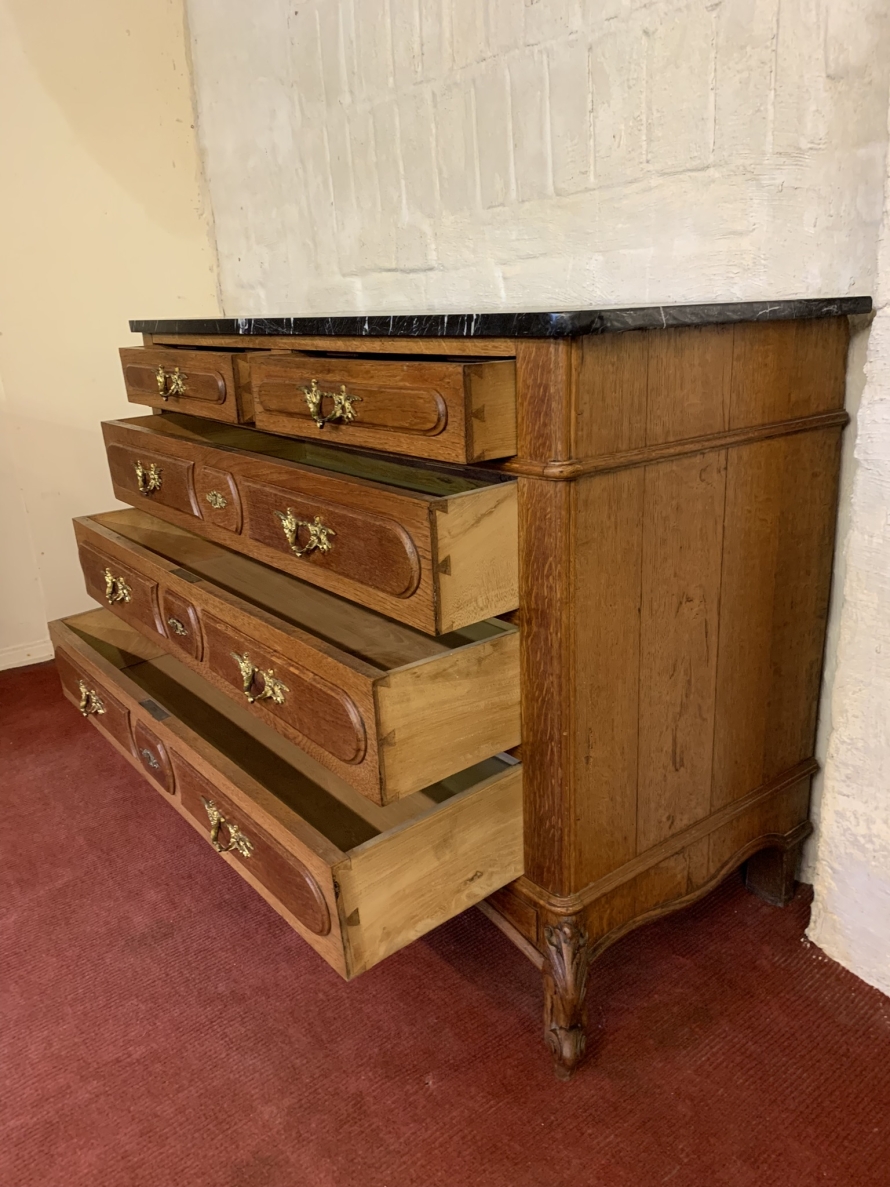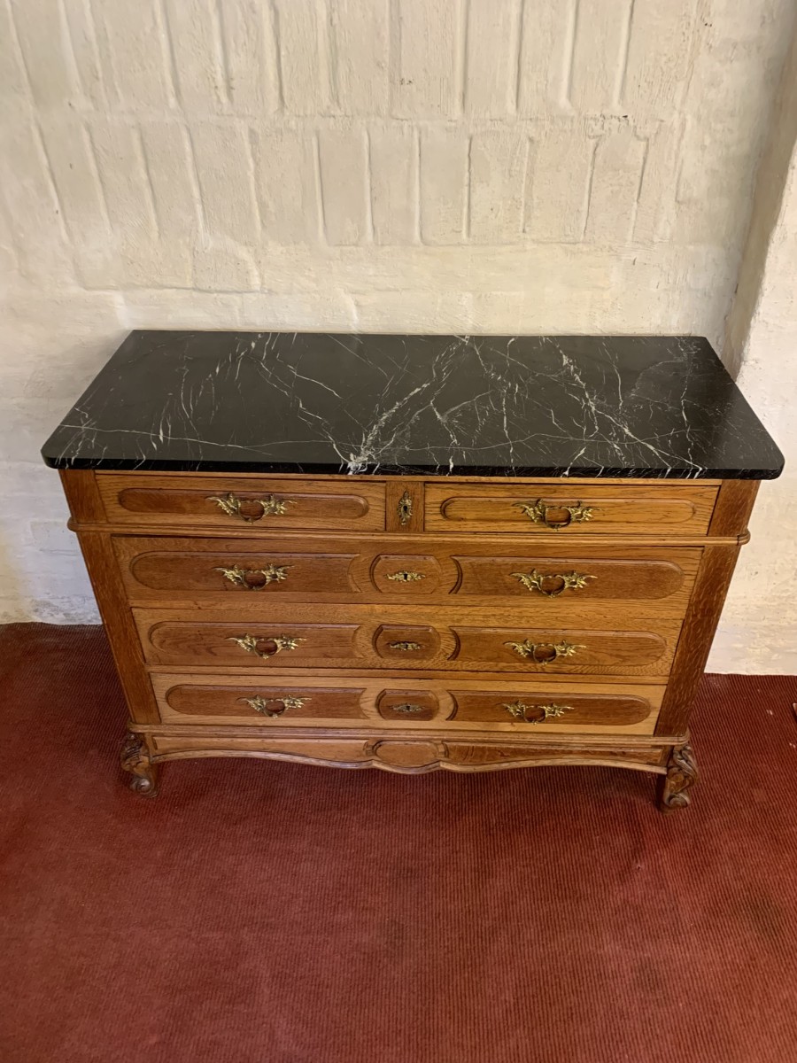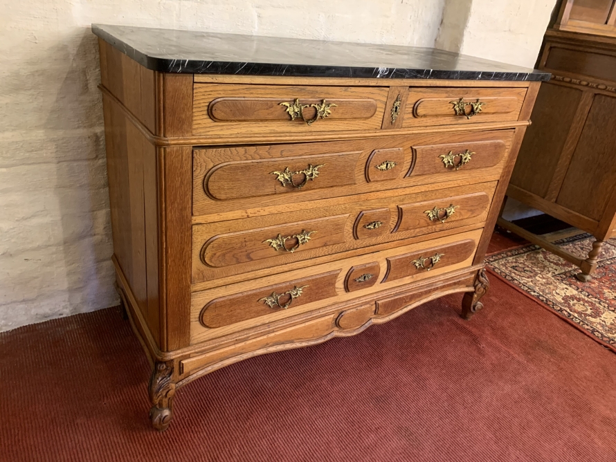- Quality Antique French Oak Marble Top Commode/chest Of Drawers Cira 1910