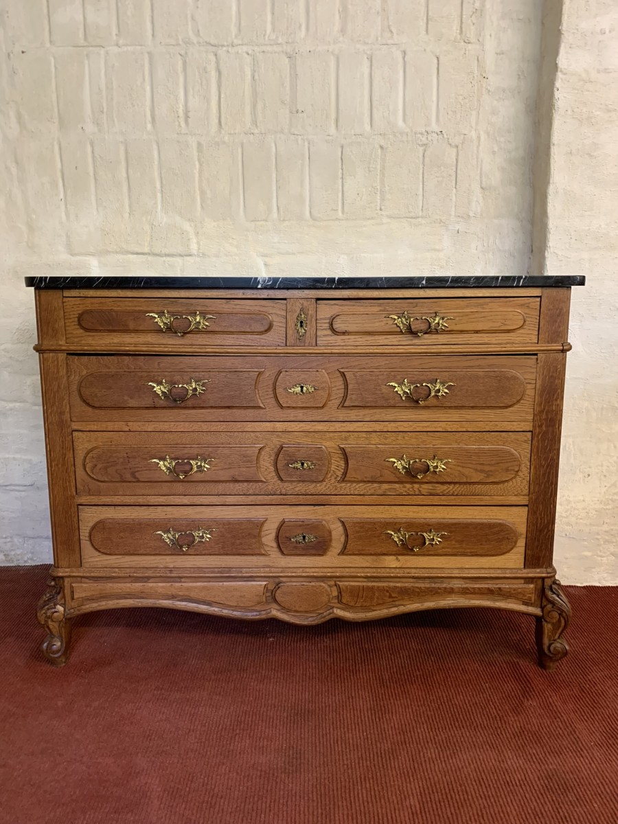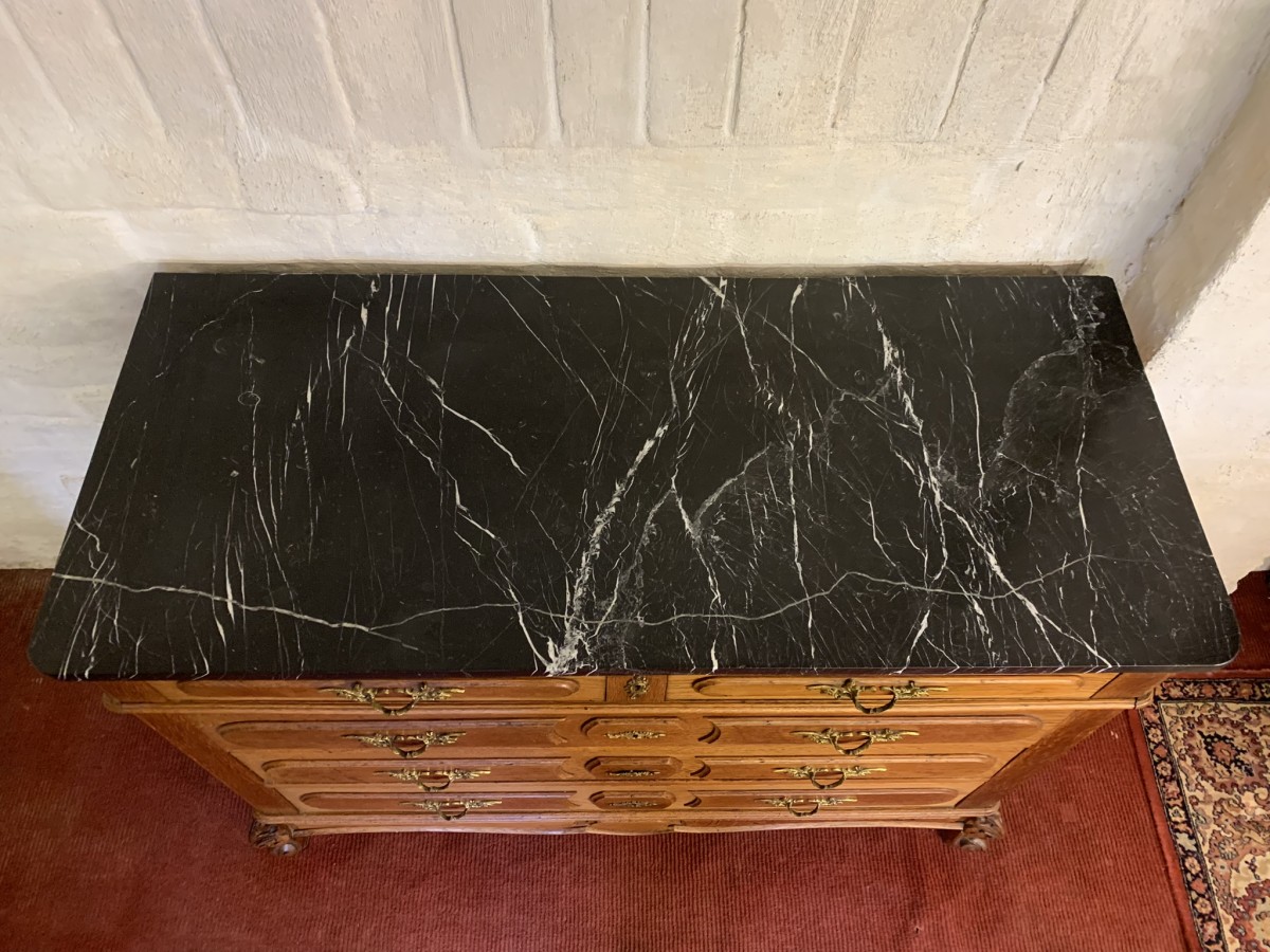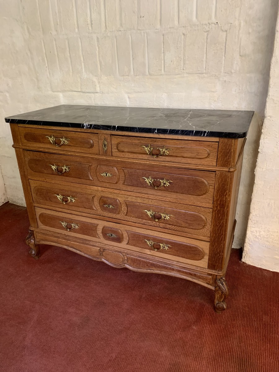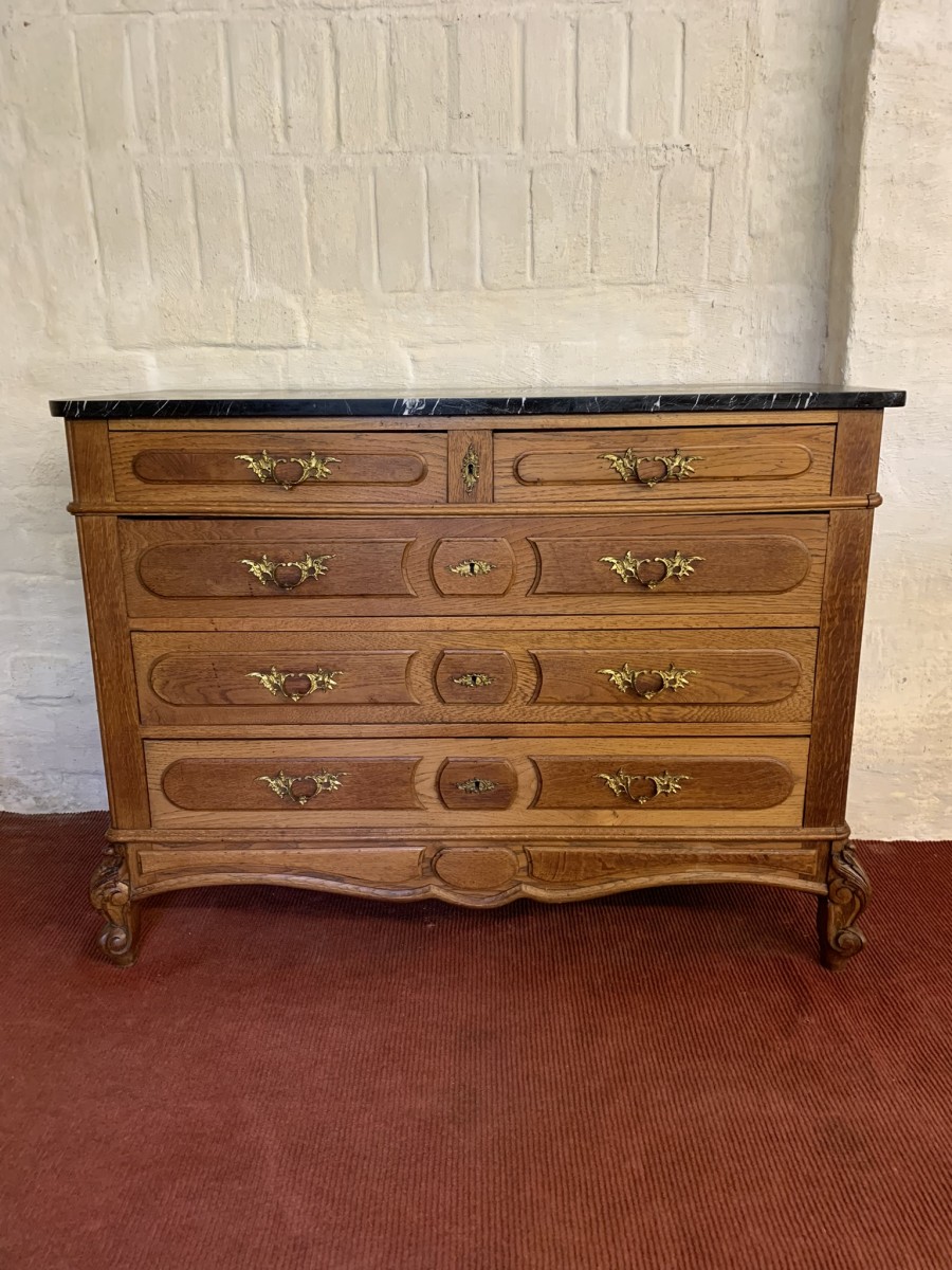 - Quality Antique French Oak Marble Top Commode/chest Of Drawers Cira 1910
