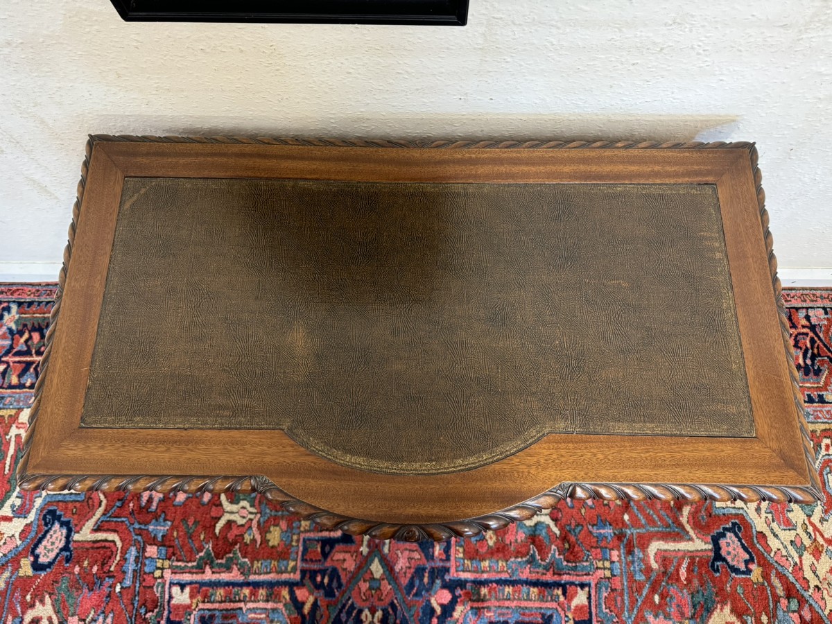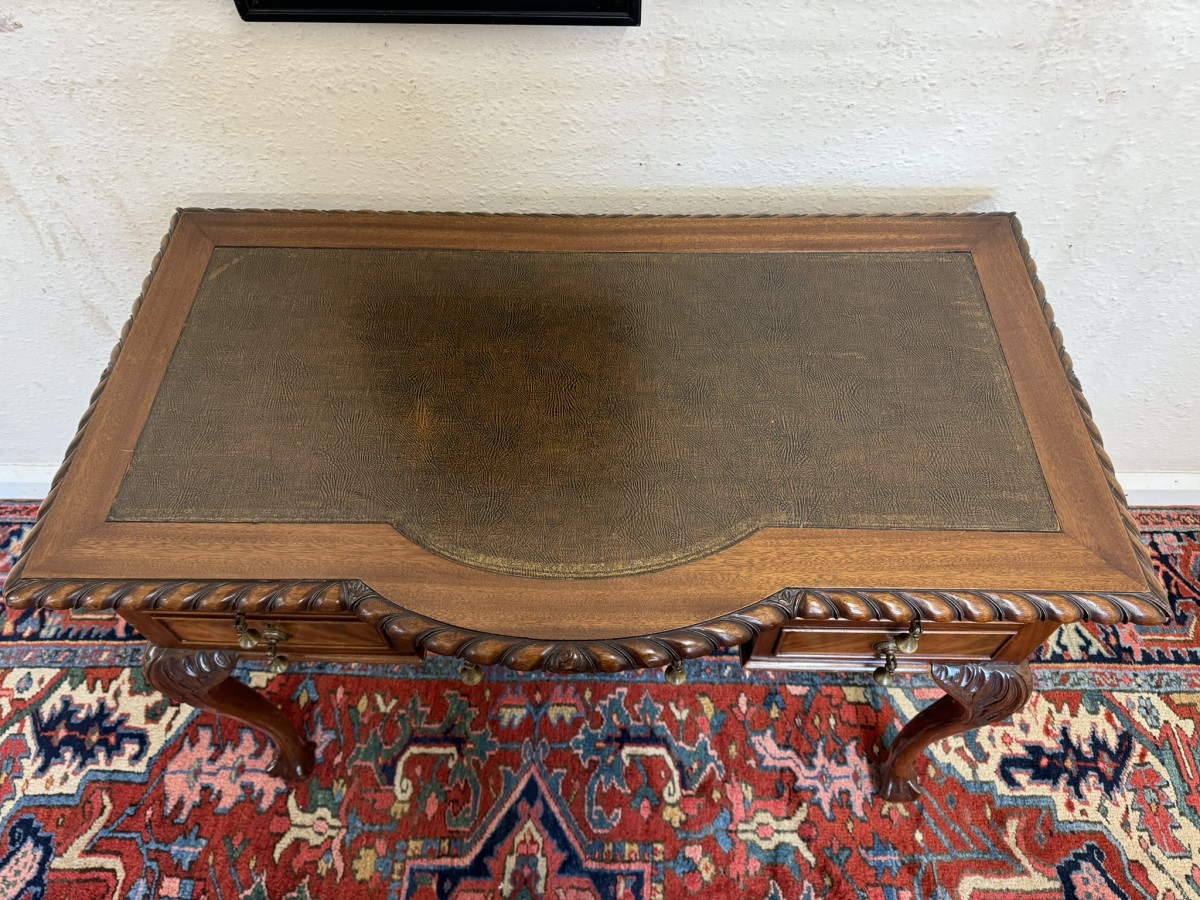 - Quality Antique Mahogany Chippendale Influenced Leather Topped Desk/hall Table