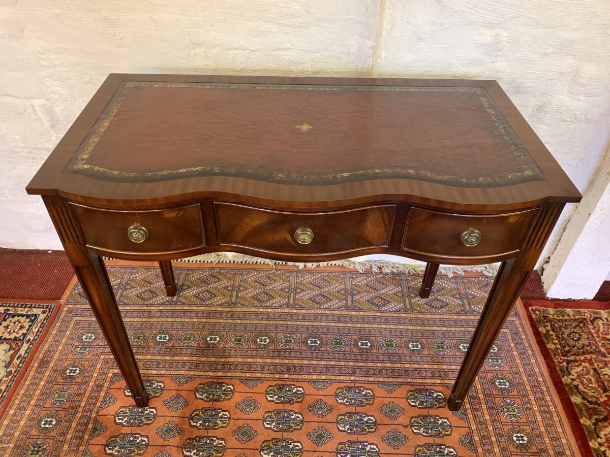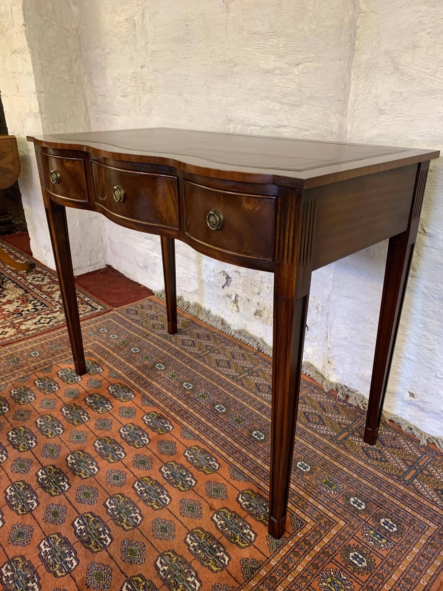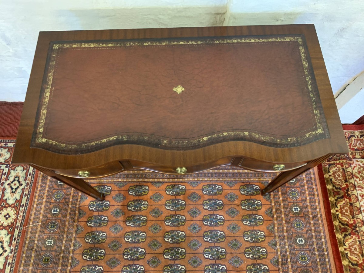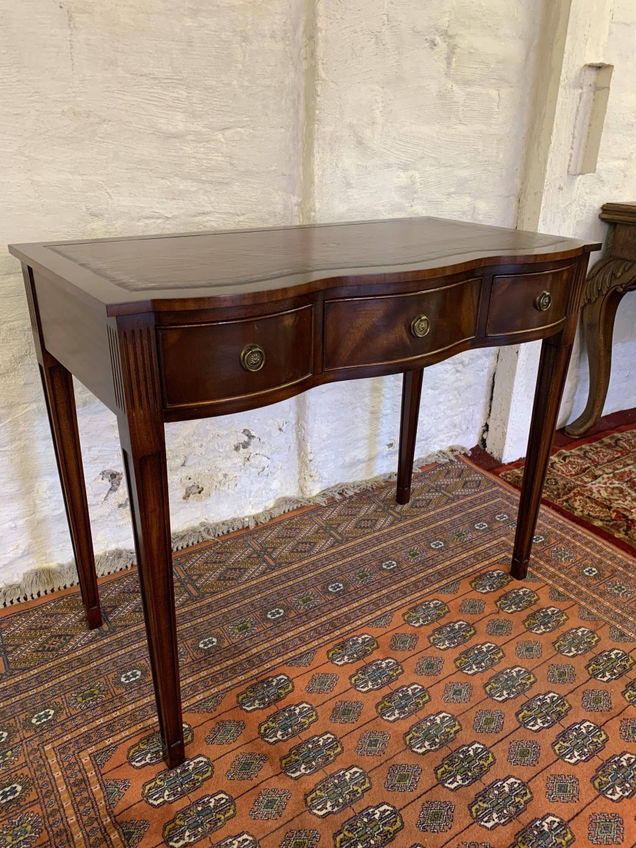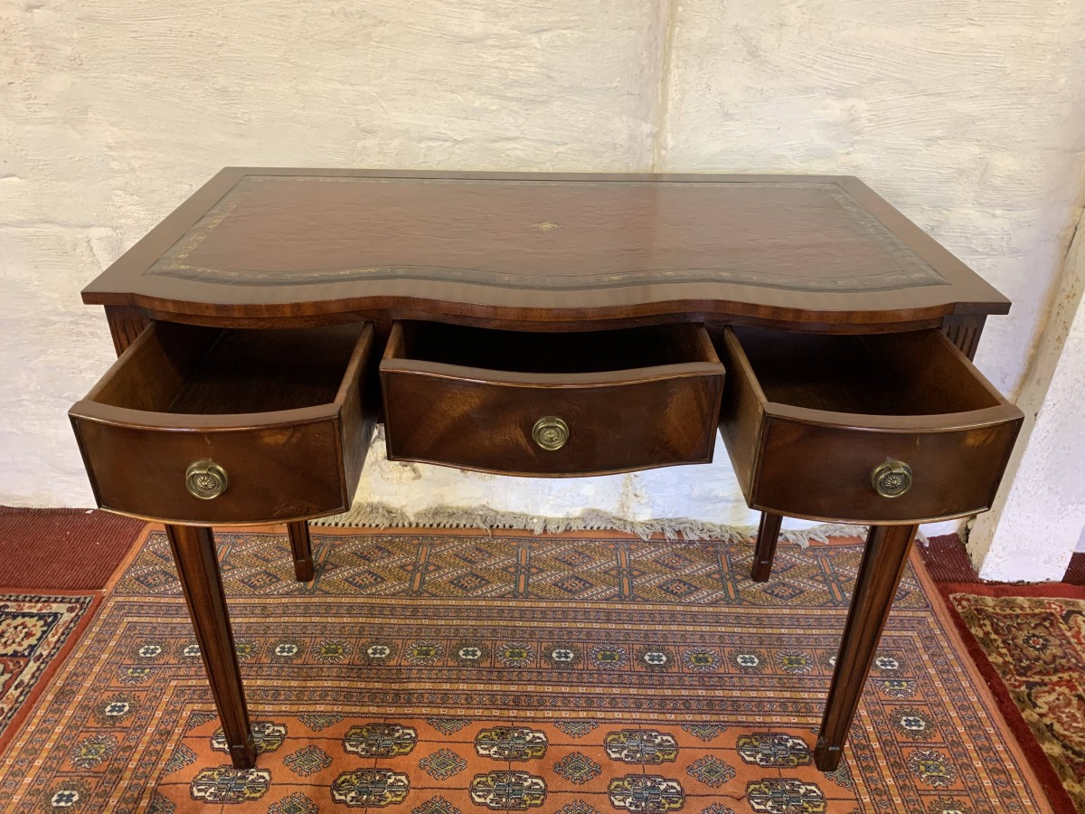 - Quality Bevan Funnell Serpentine Shaped Mahogany Leather Topped Writting Desk/table – Now Sold