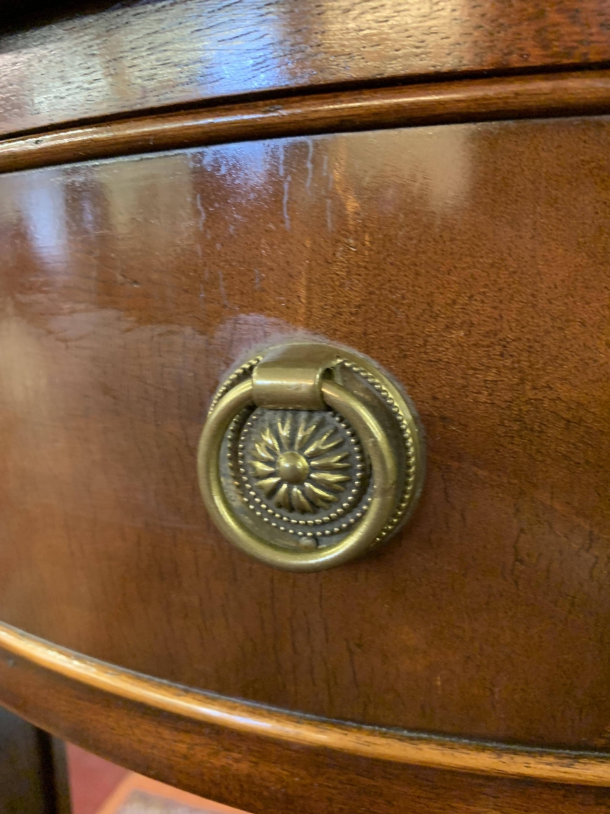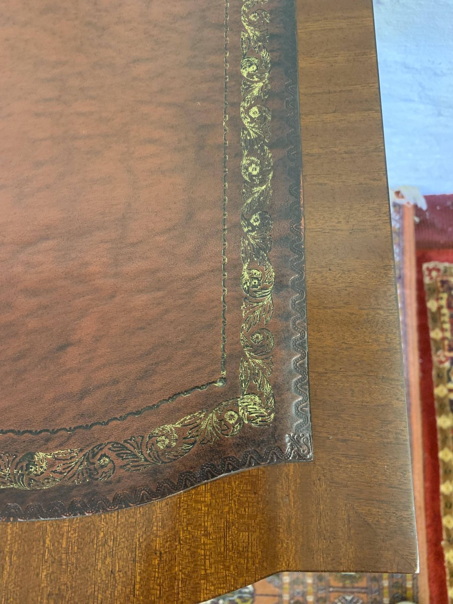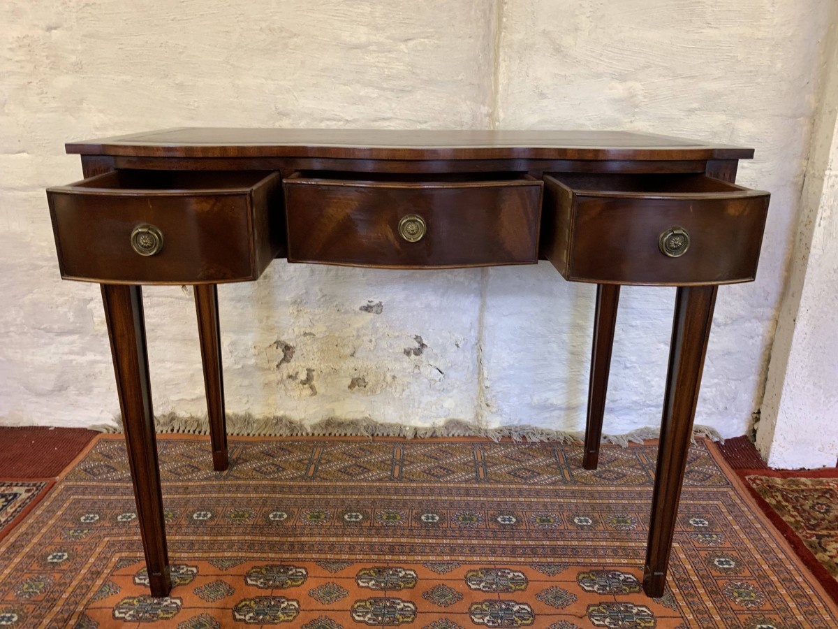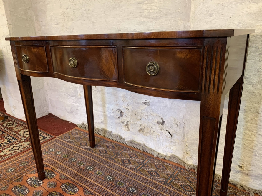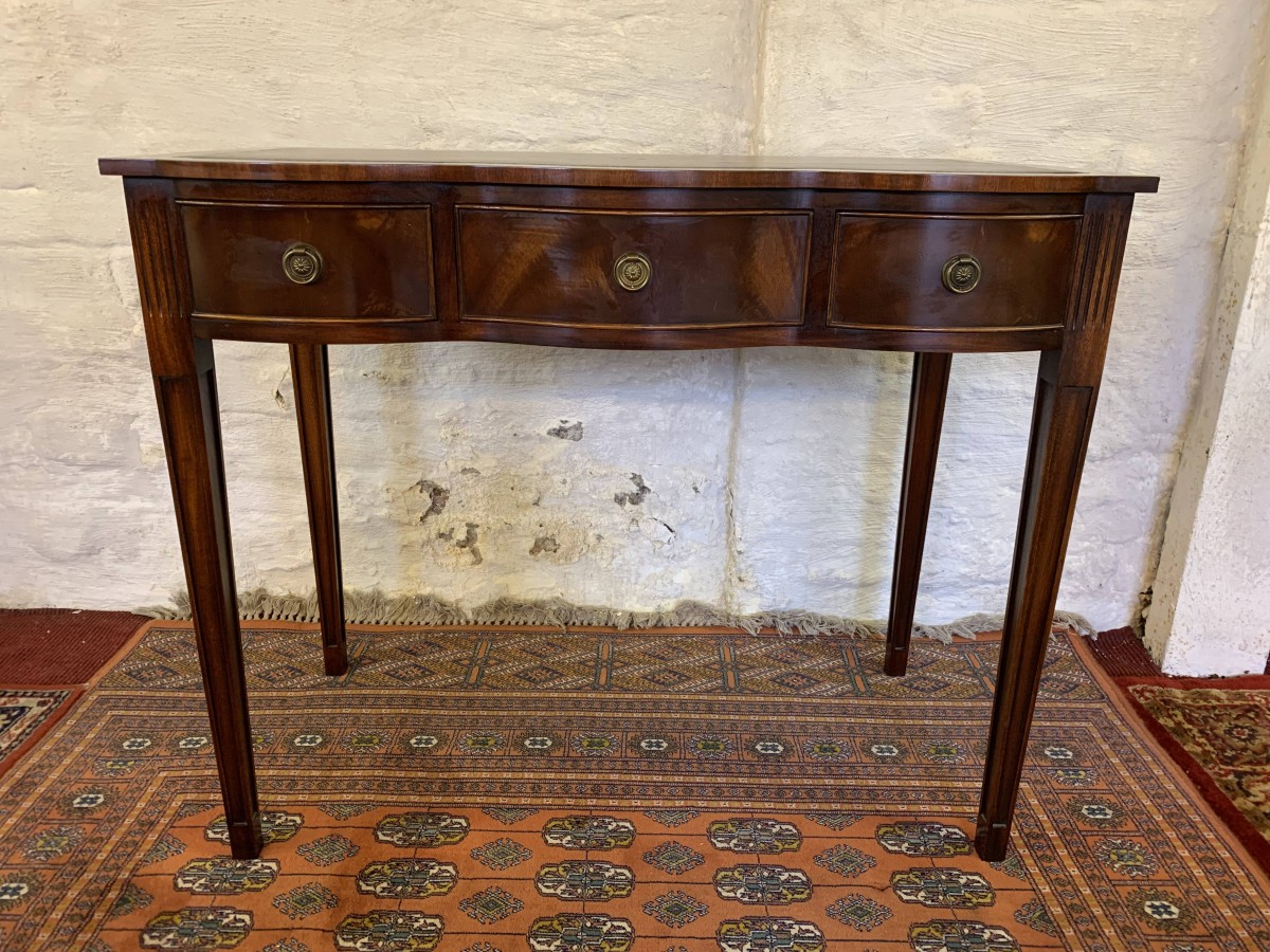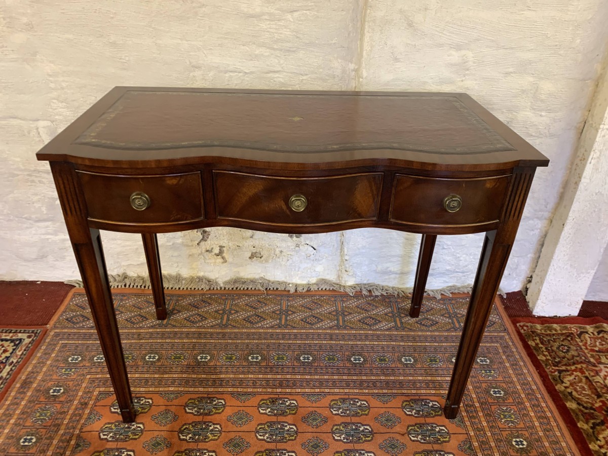 - Quality Bevan Funnell Serpentine Shaped Mahogany Leather Topped Writting Desk/table – Now Sold