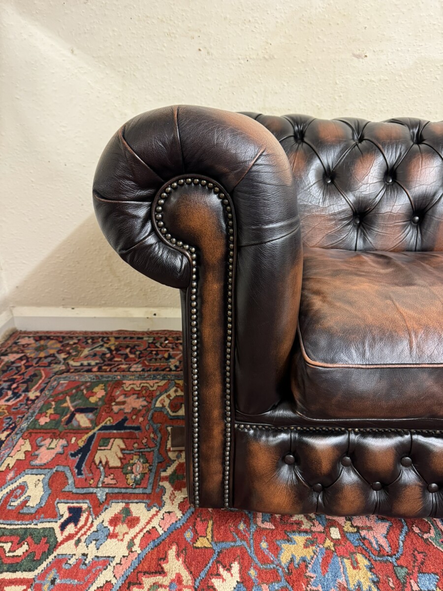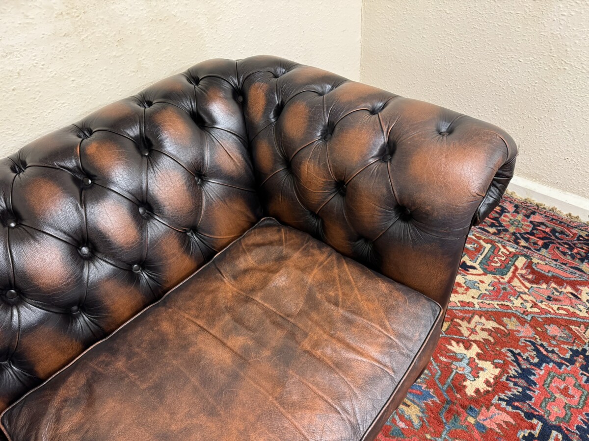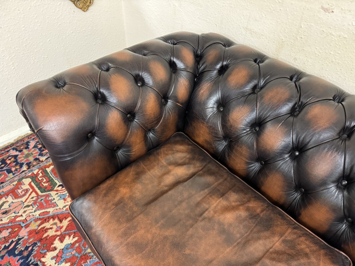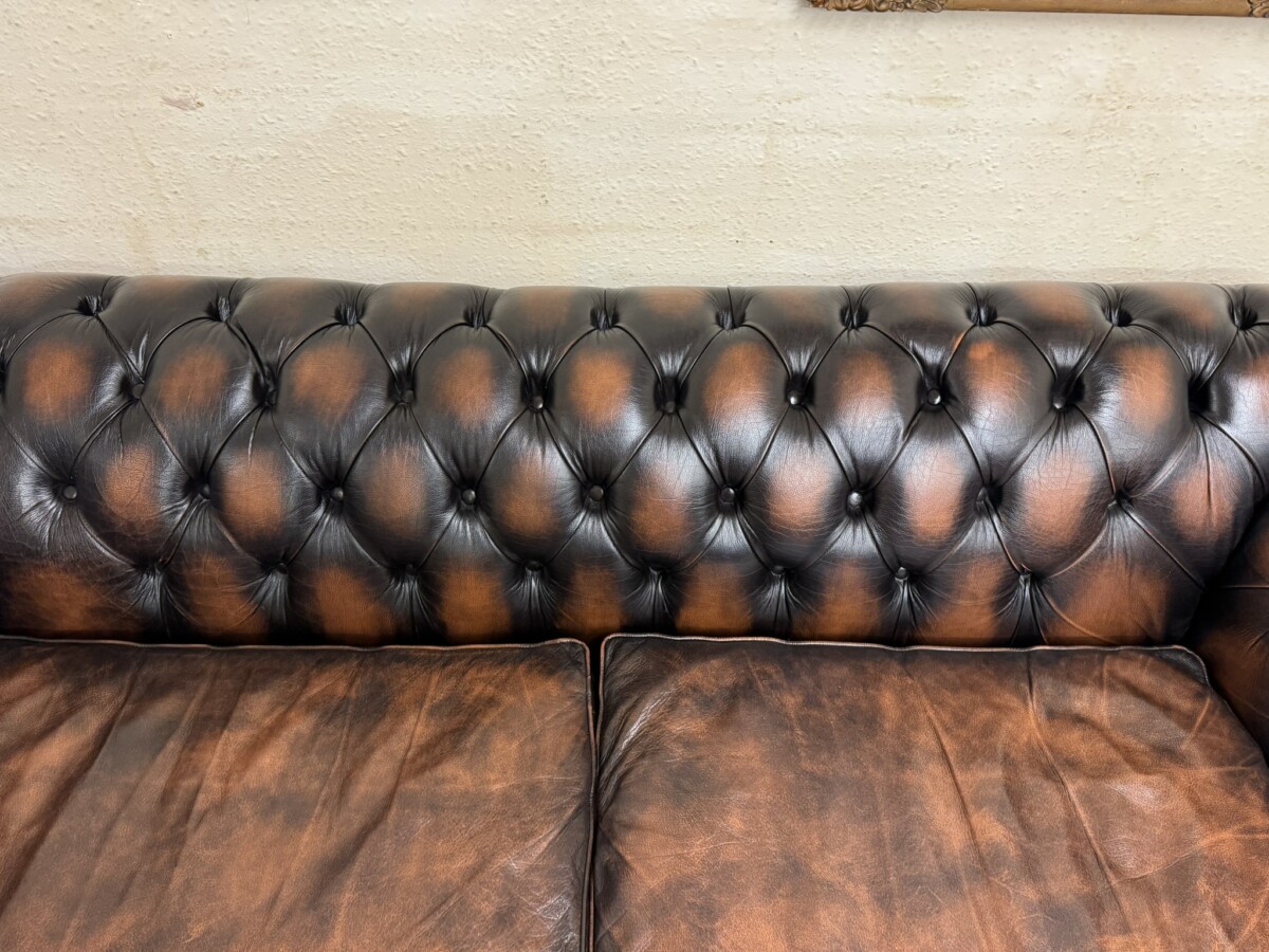 We are also listing is a matching two seater brown leather Chesterfield settee.