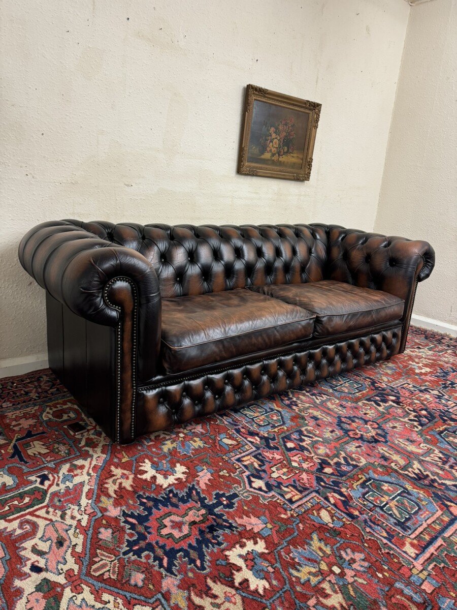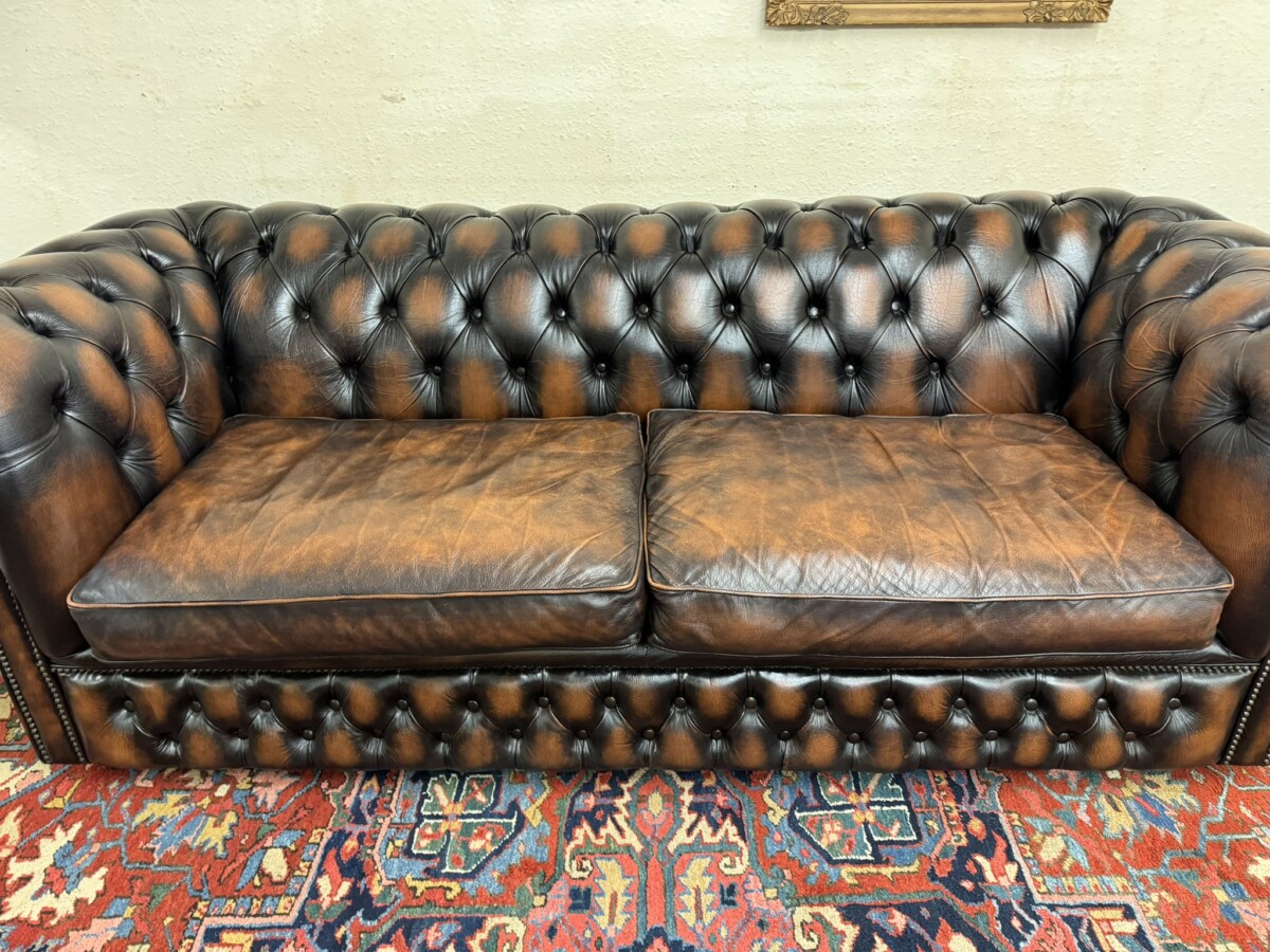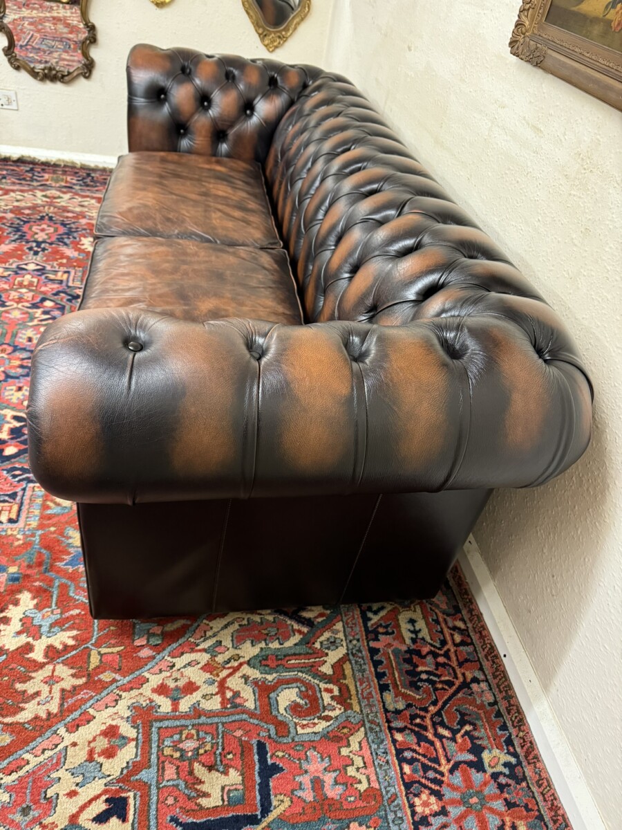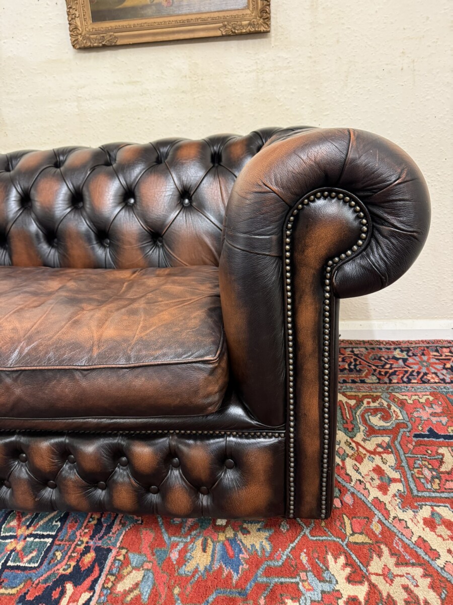 We are also listing is a matching two seater brown leather Chesterfield settee.