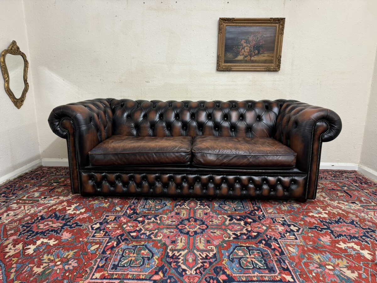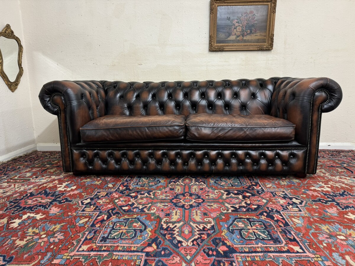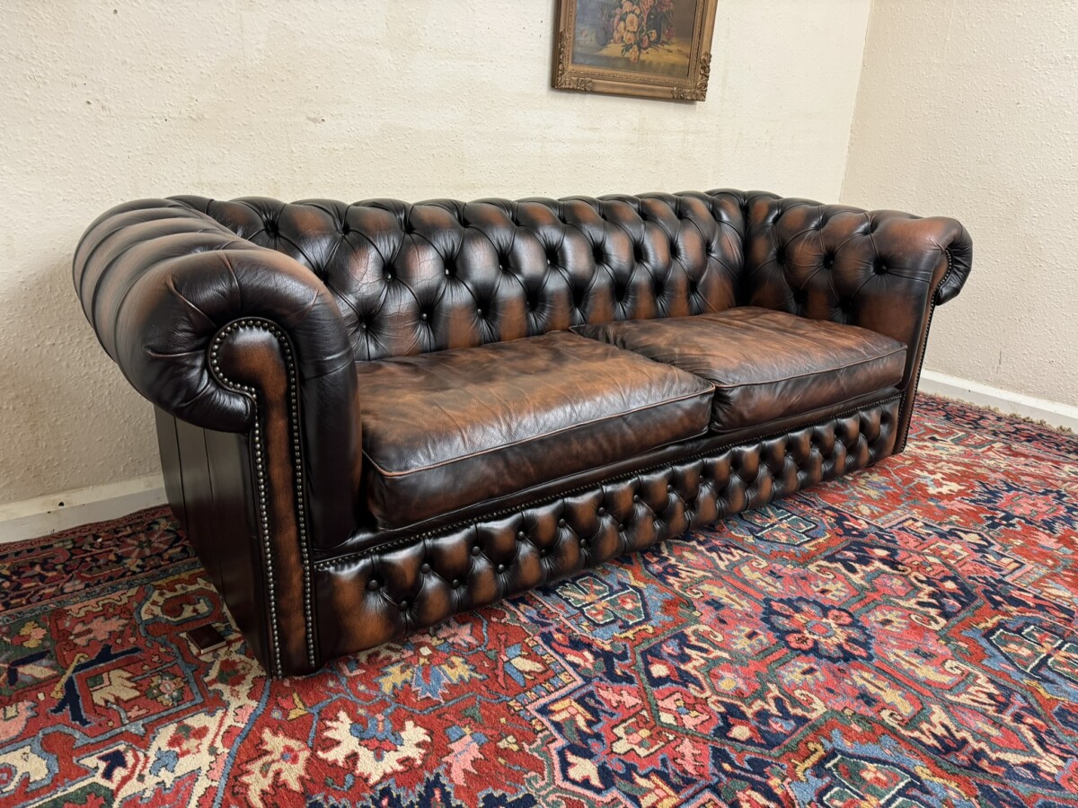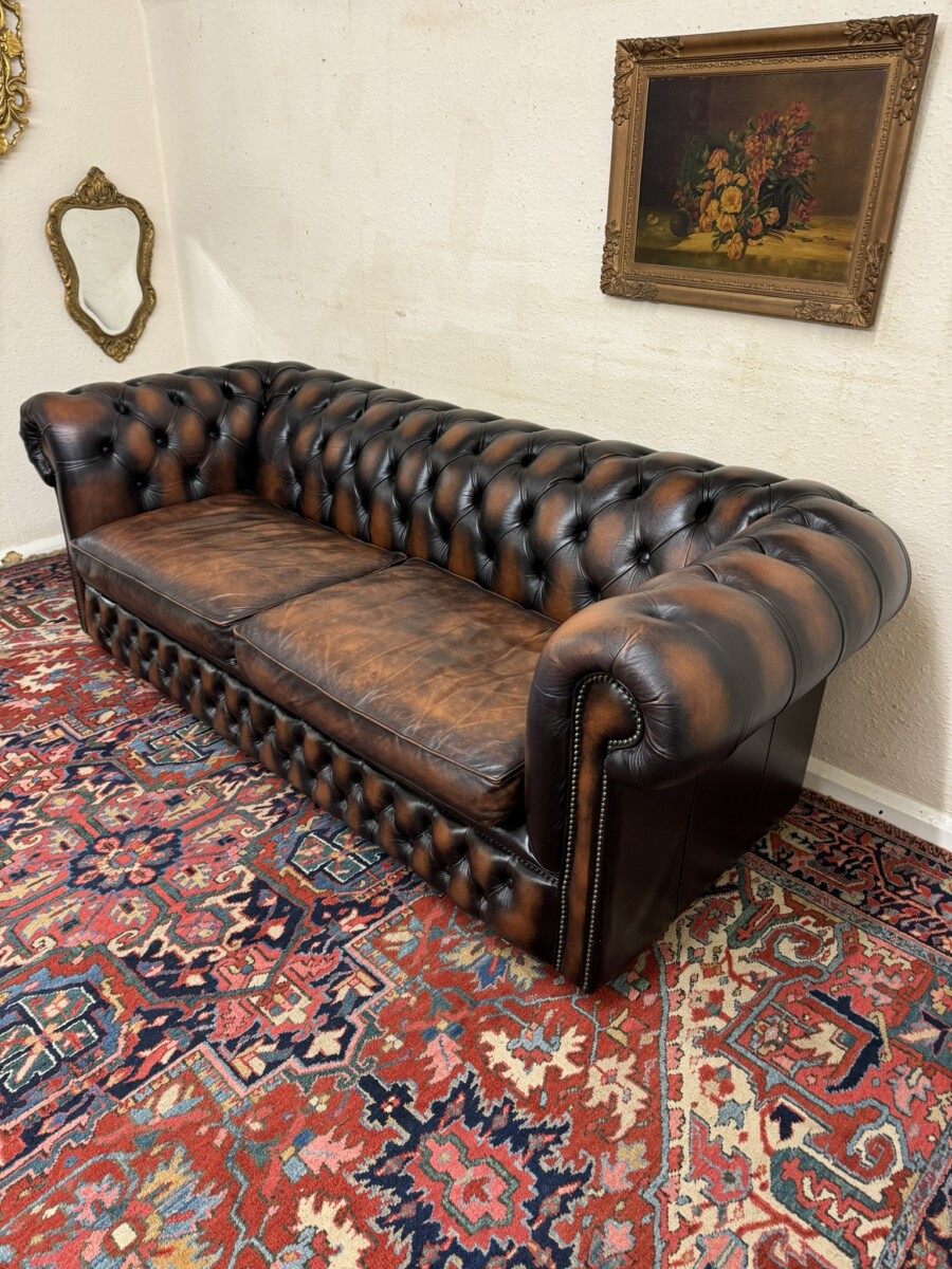 We are also listing is a matching two seater brown leather Chesterfield settee.
