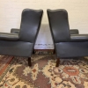 Quality Pair Of Grey Leather Wingback Chesterfield Armchairs And Footstool – Now Sold