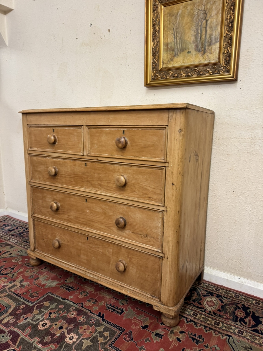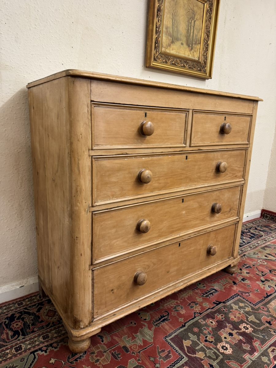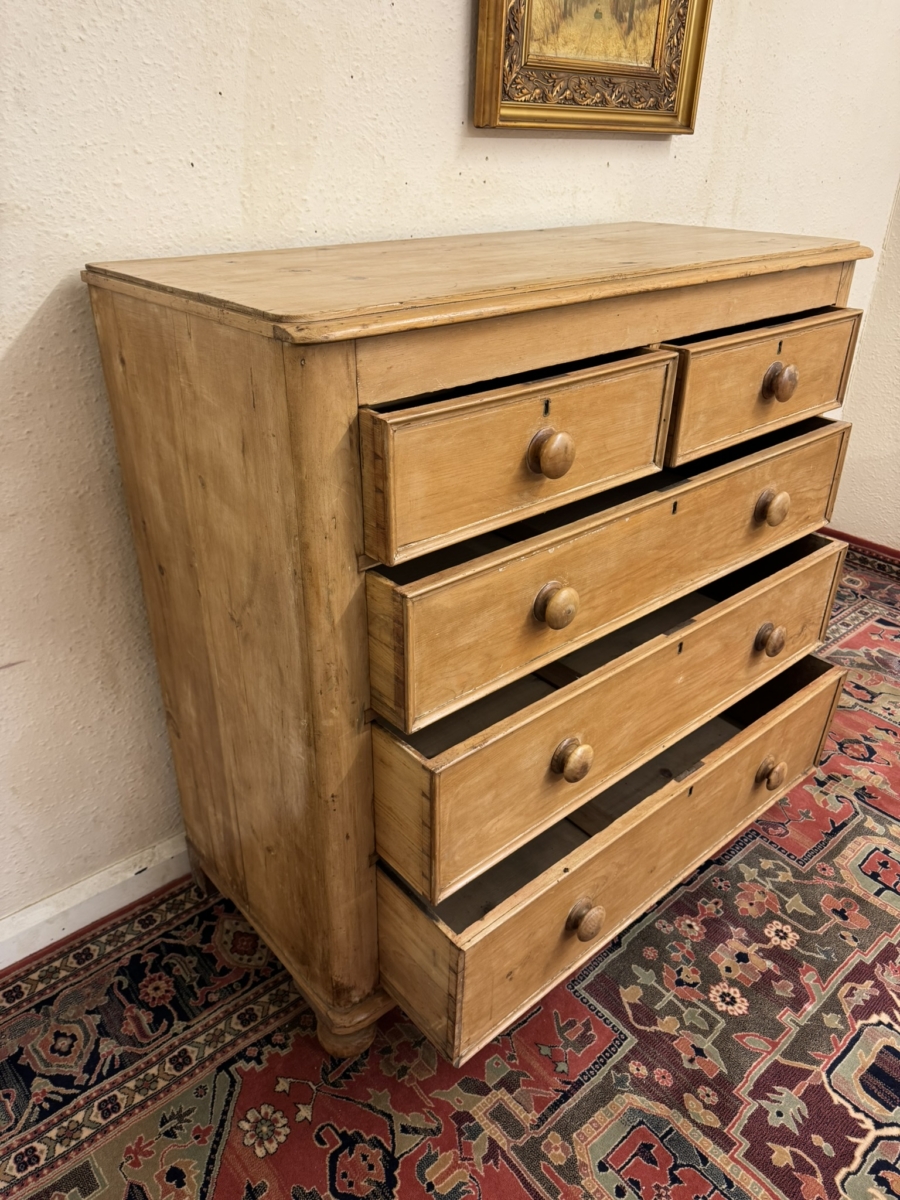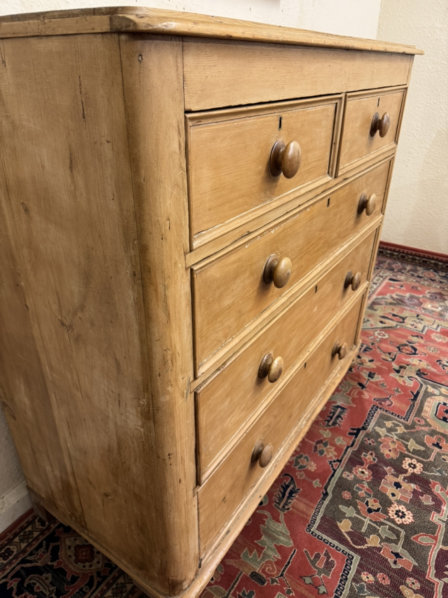 QUALITY VICTORIAN TALL PINE CHEST OF FIVE DRAWERS CIRCA 1880