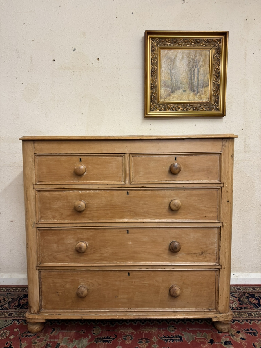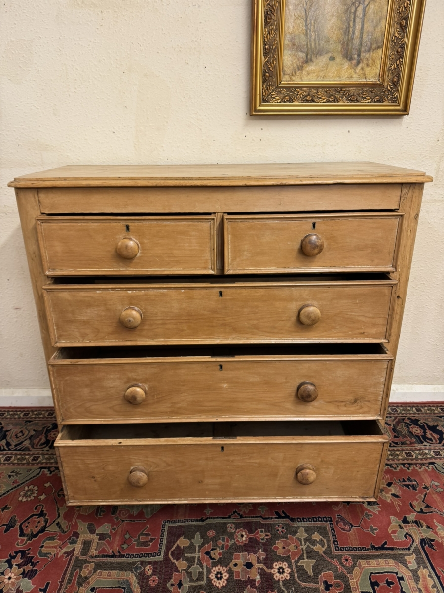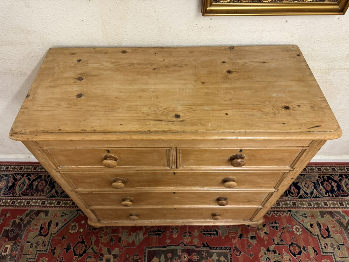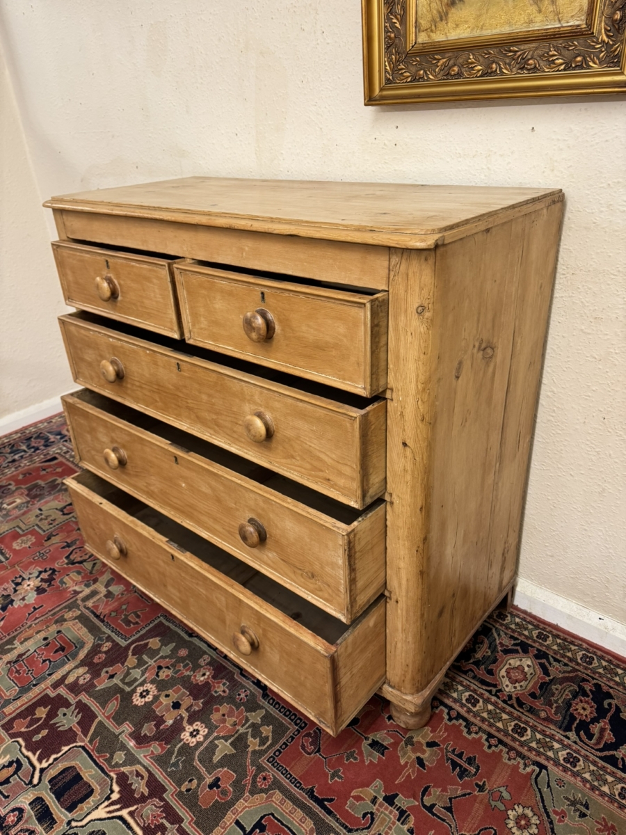 QUALITY VICTORIAN TALL PINE CHEST OF FIVE DRAWERS CIRCA 1880