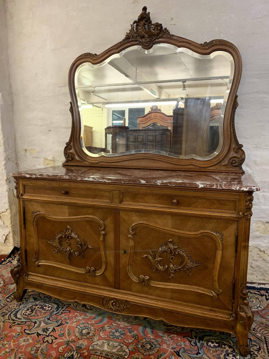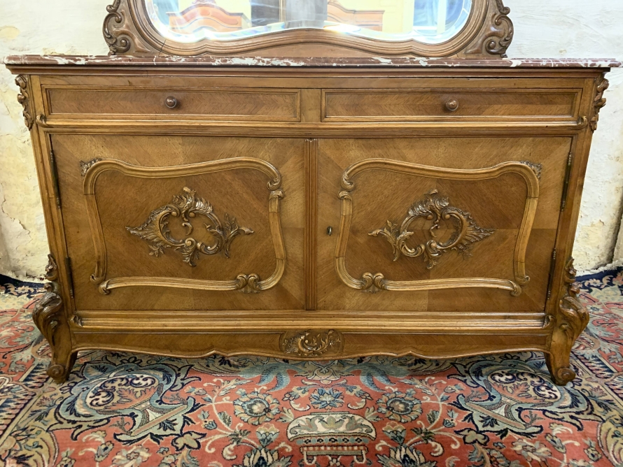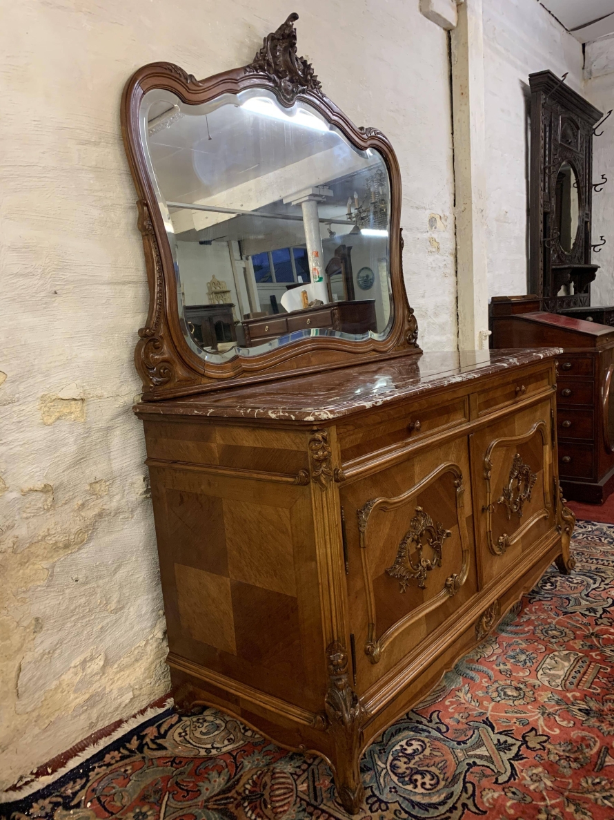 Please note we are aslo listing a matching, mirrored armoire, pair of marble top bedside cabinets and carved shaped double bed