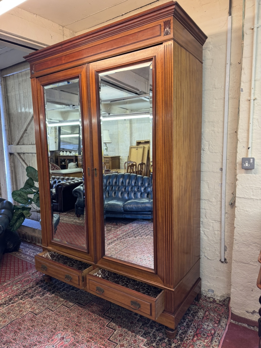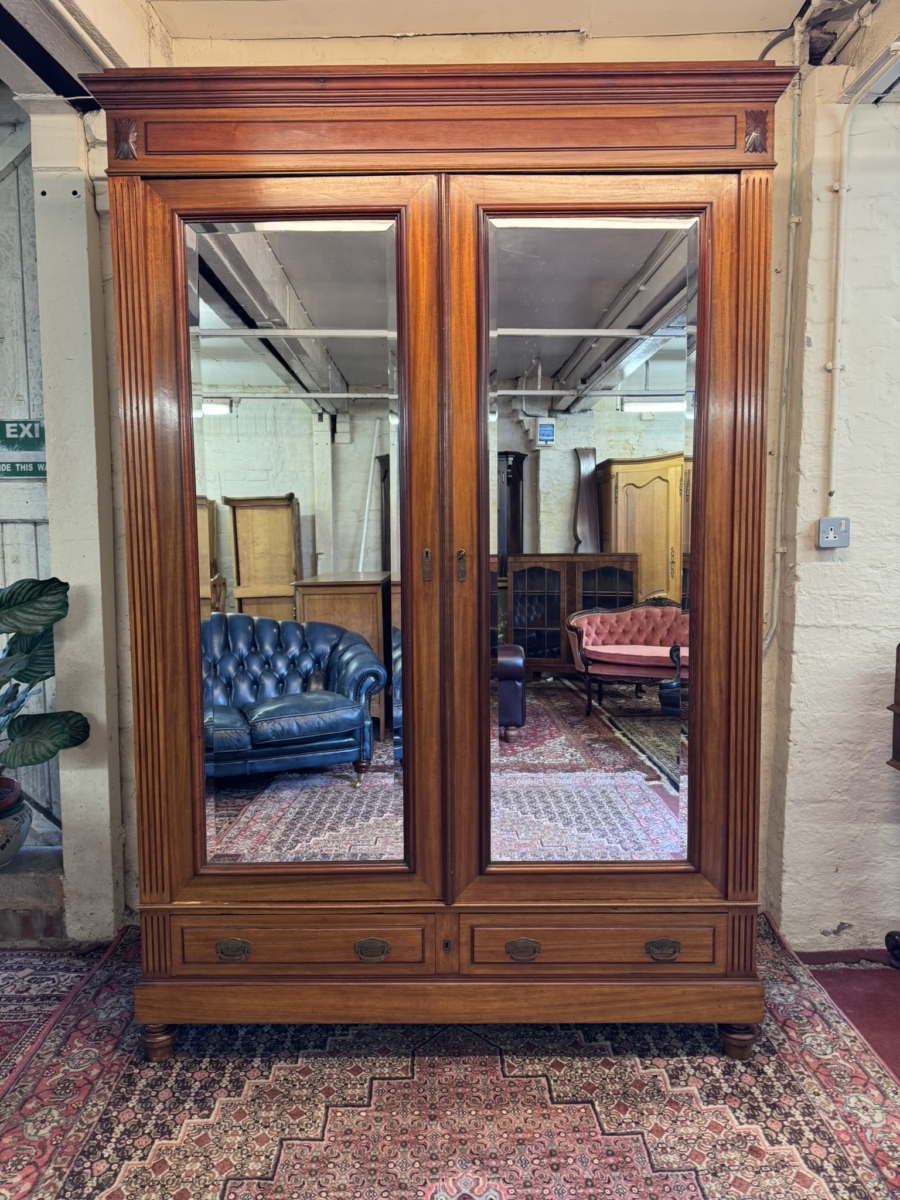 - STUNNING ANTIQUE MAHOGANY TWO MIRRORED DOOR ARMOIRE/WARDROBE CIRCA 1890