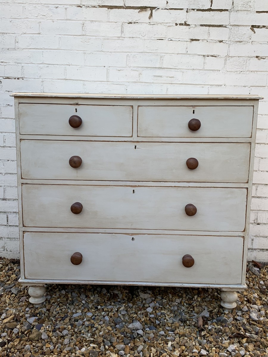 - Stunning Antique Painted Pine Chest Of Five Drawers – Now Sold