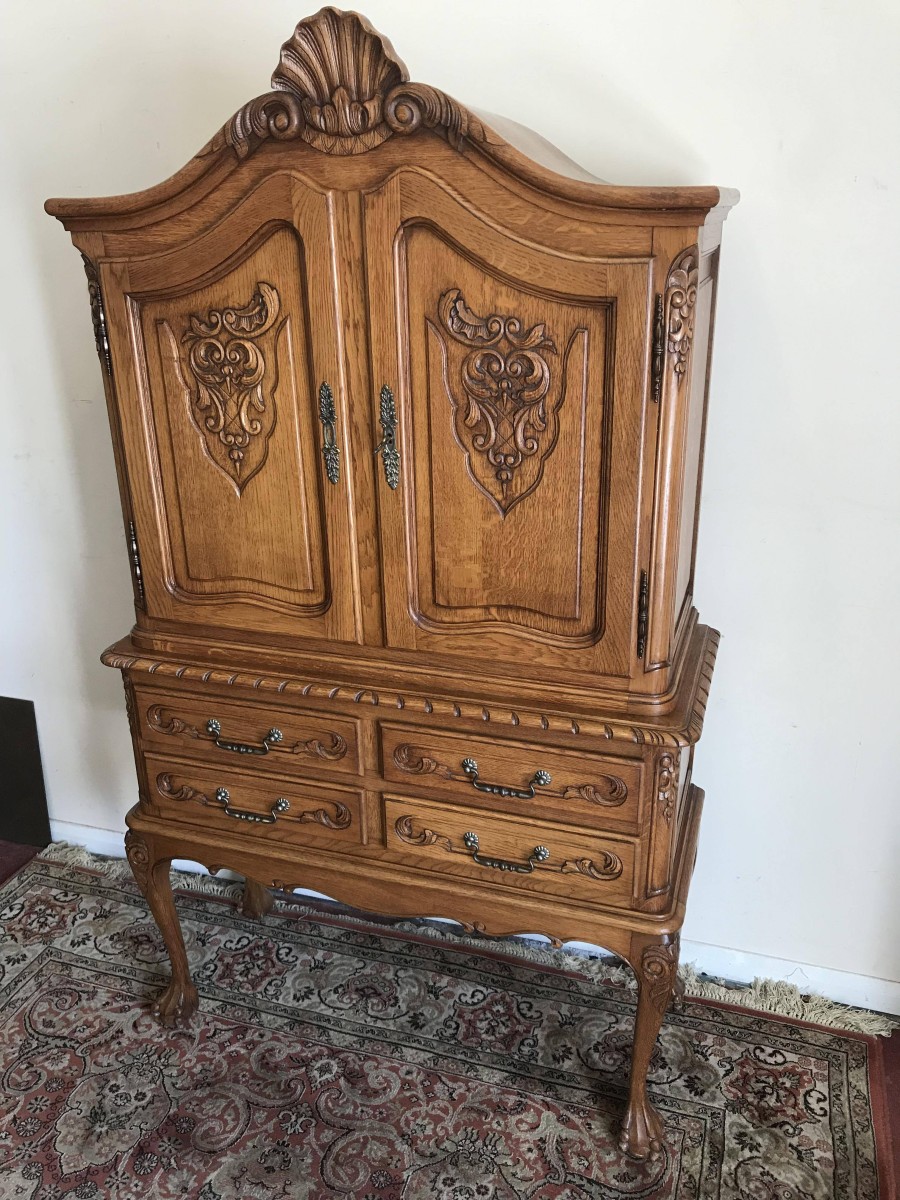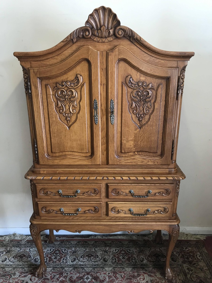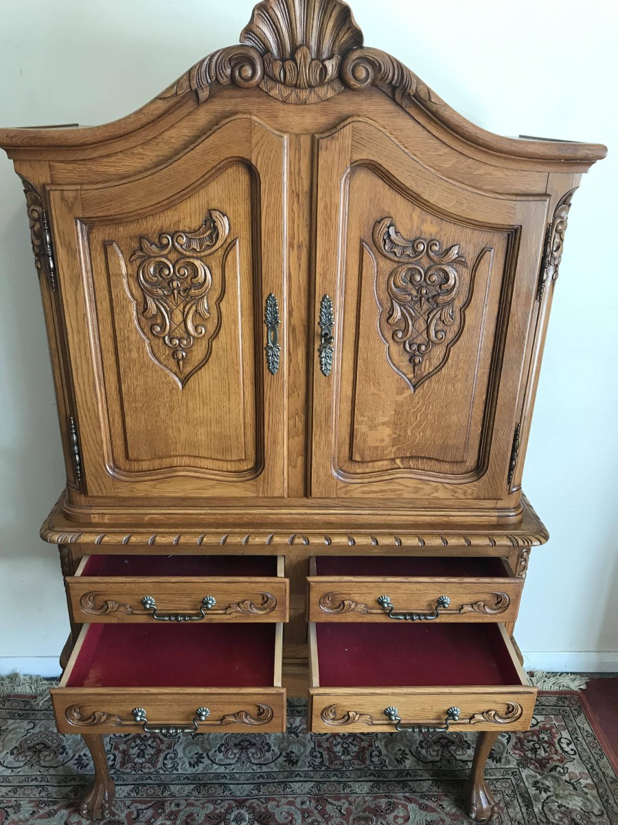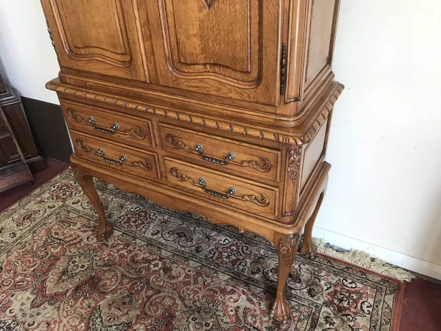 Stunning Carved Golden Oak Chippendale Style Cabinet/Cupboard.