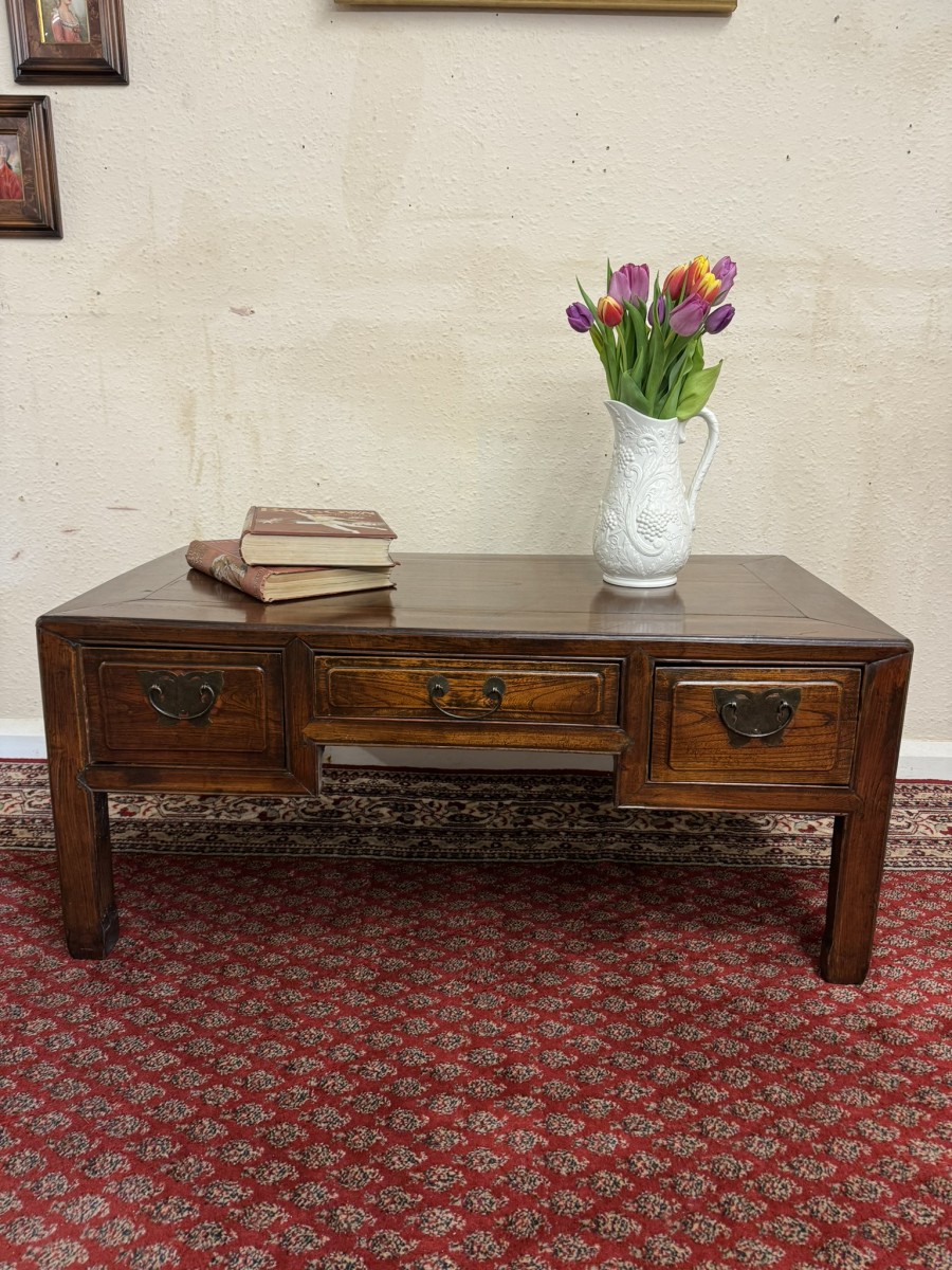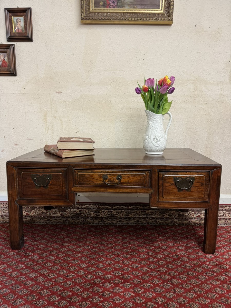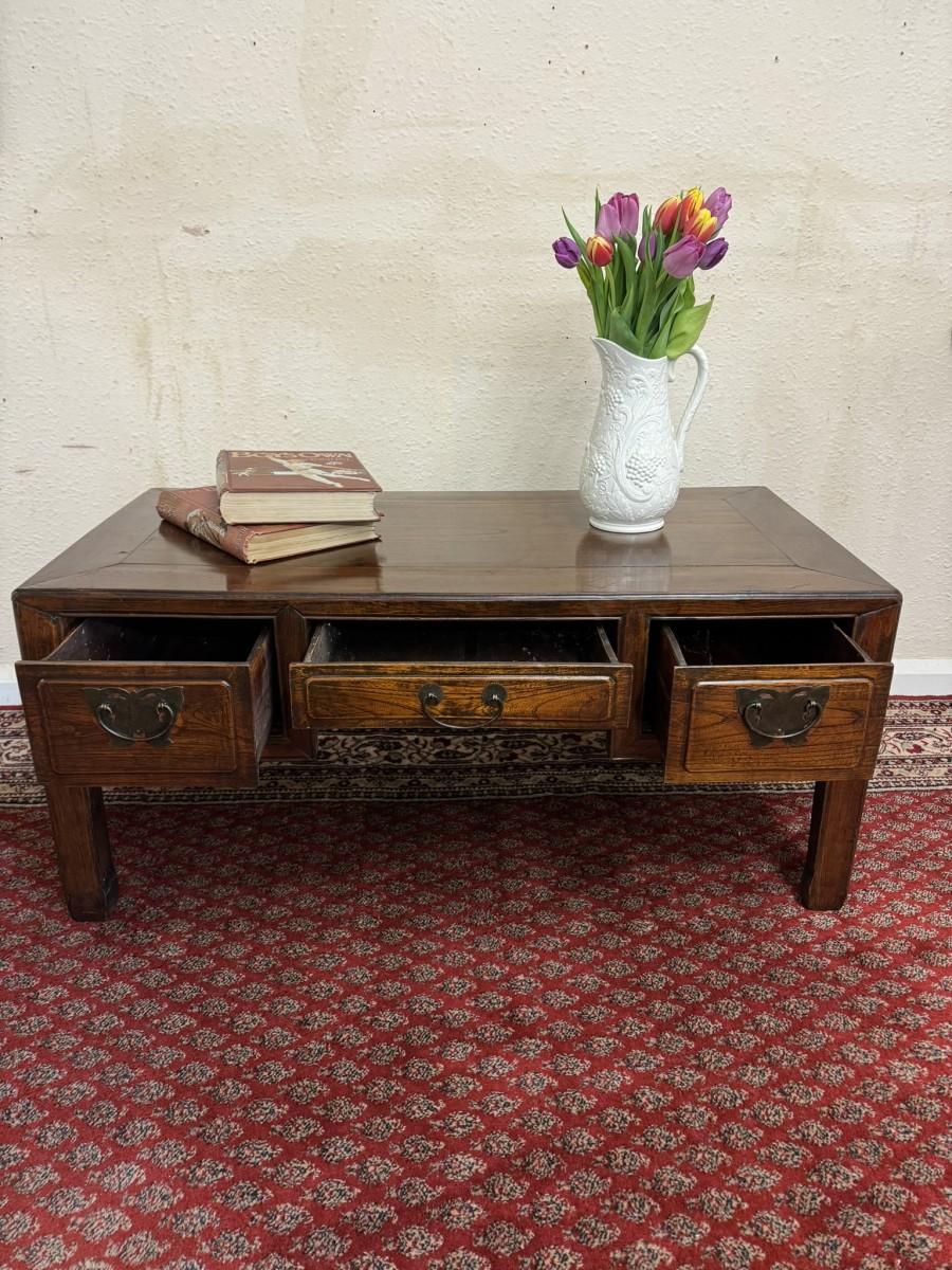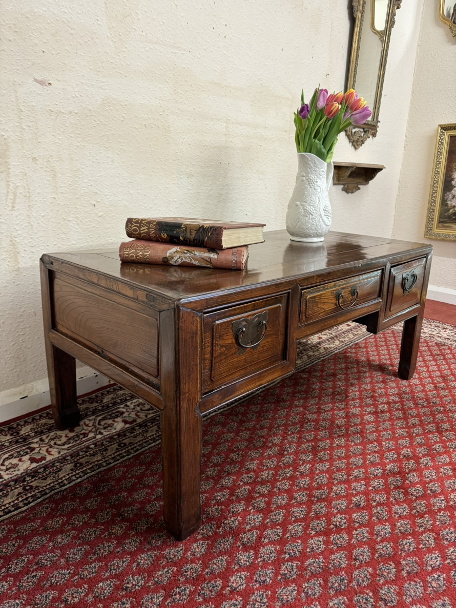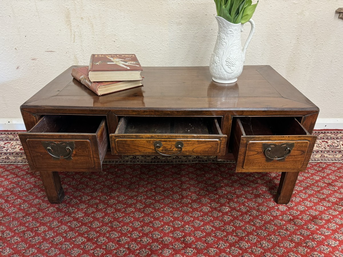 - Stunning Chinese 19th Century Elm Low Table With Three Drawers