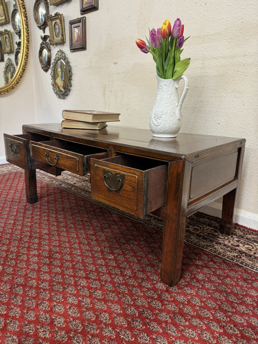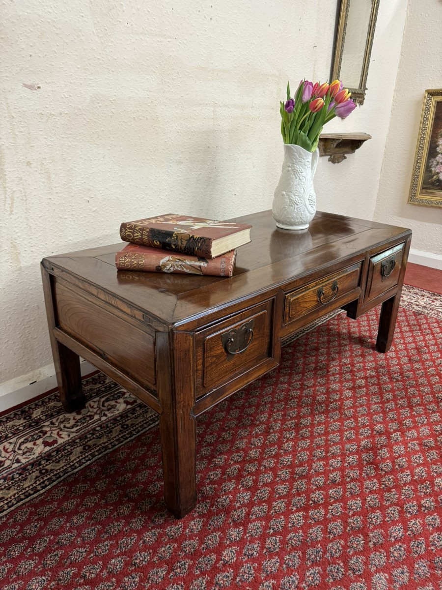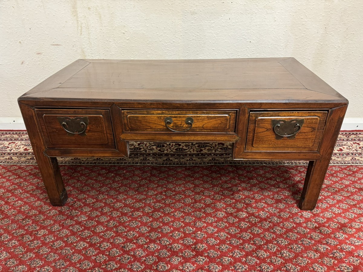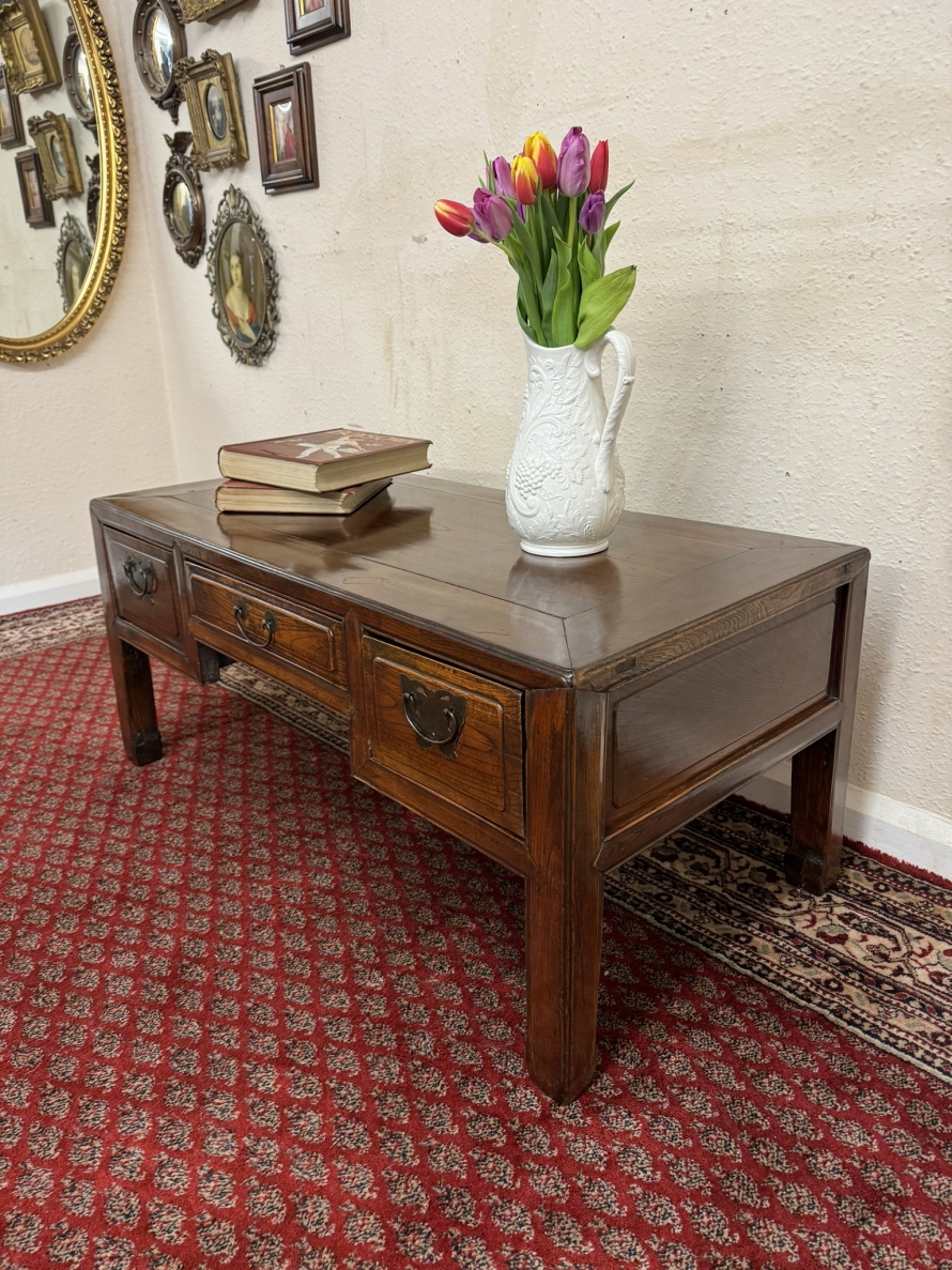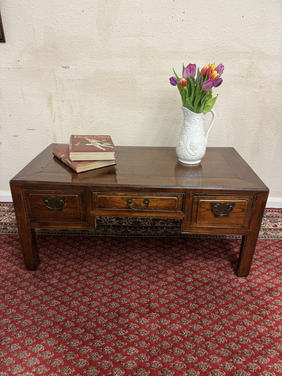 - Stunning Chinese 19th Century Elm Low Table With Three Drawers