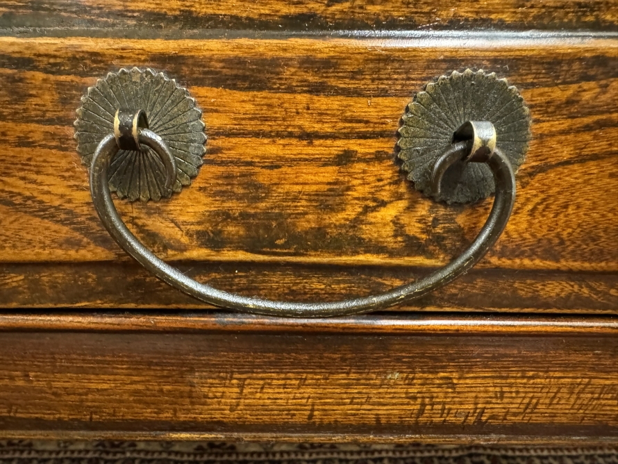 Dating circa 1890 and made in solid elm, the patina of the elm is striking. Three drawers to the front each with drop handle. The table stands on four legs which are slightly chamfered on the inner sides. A fabulous antique Chinese item.