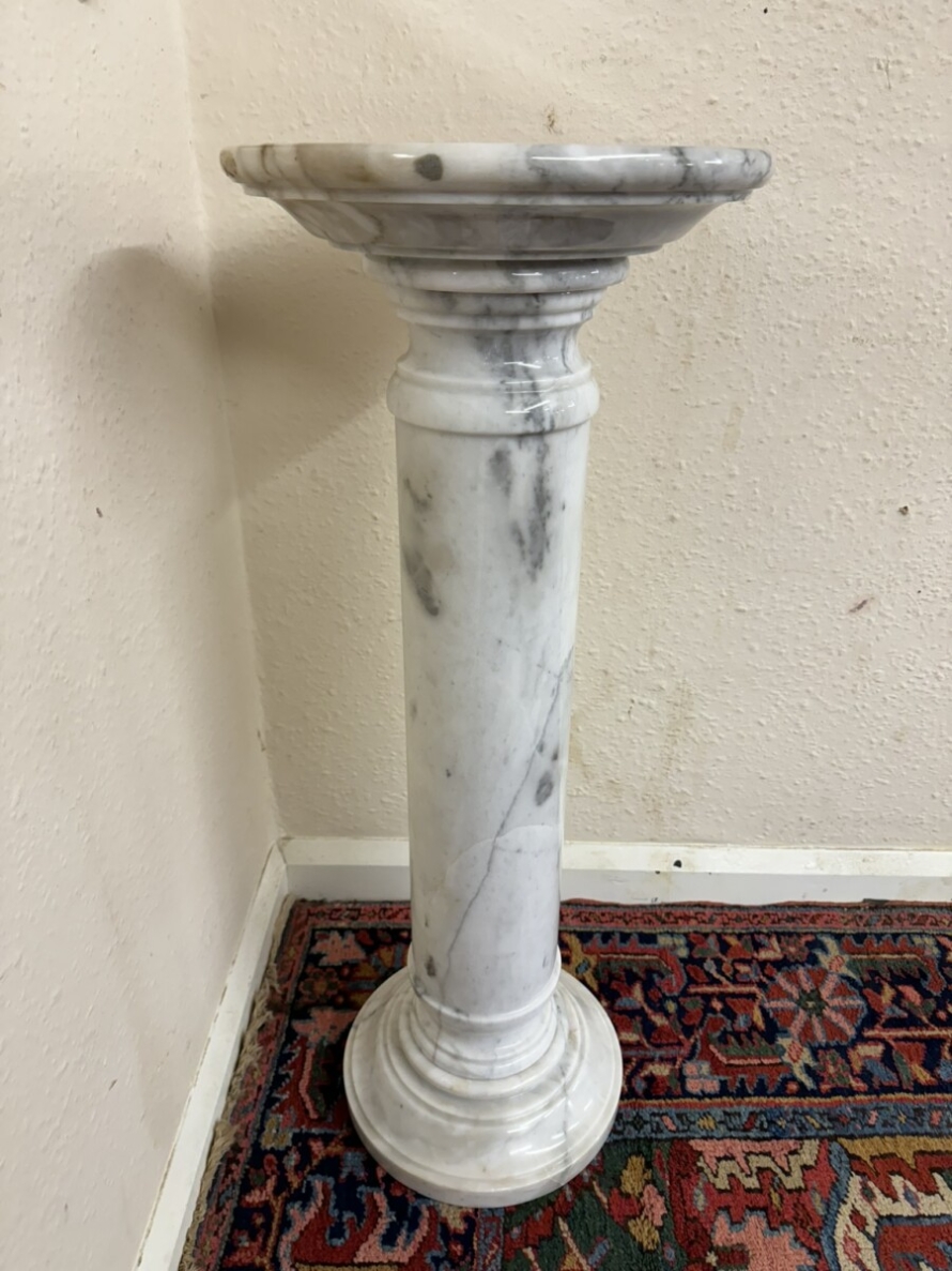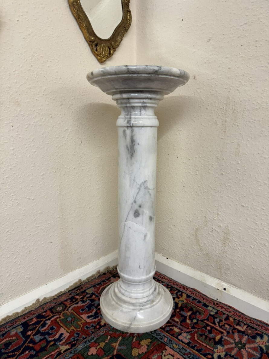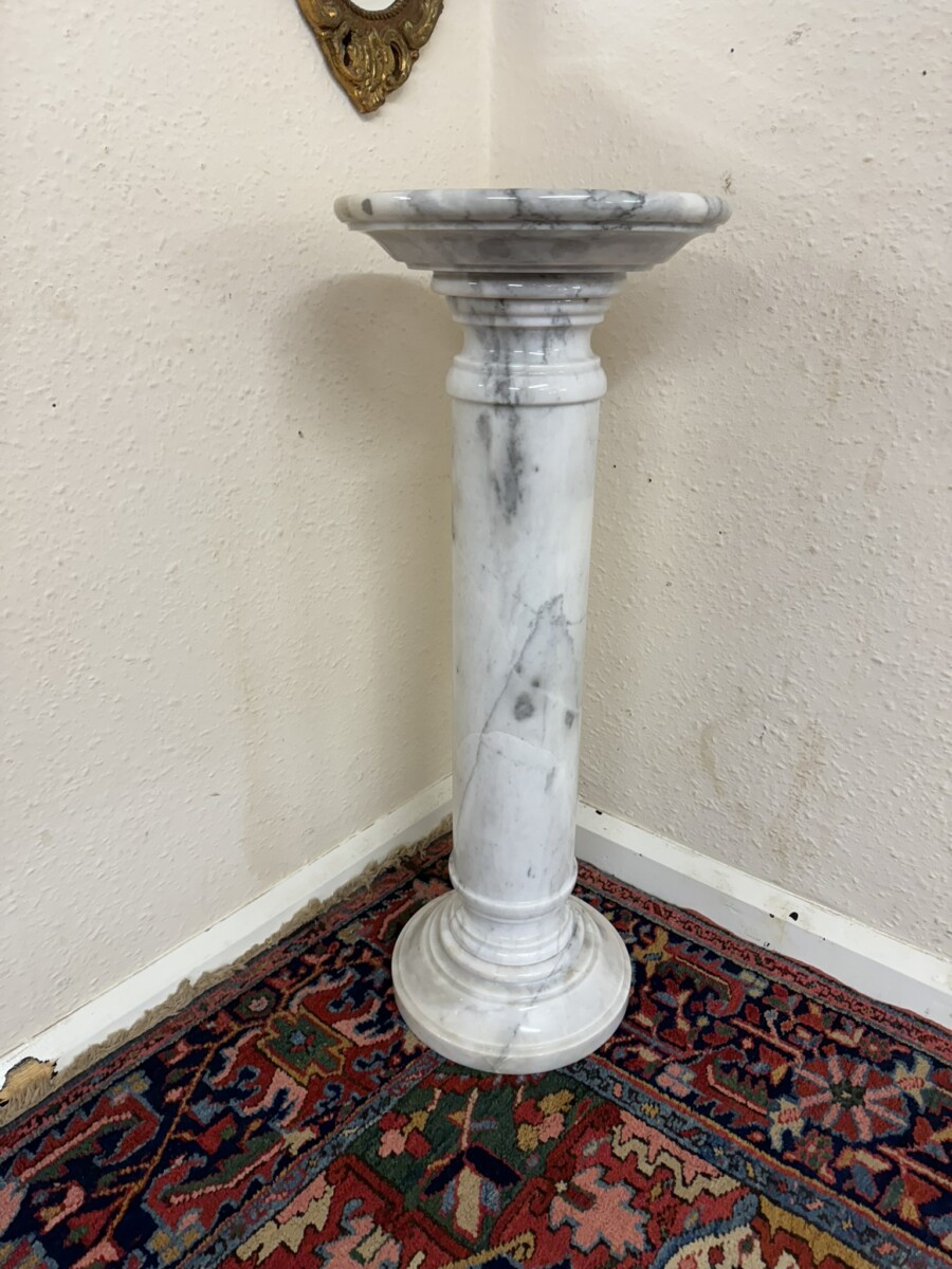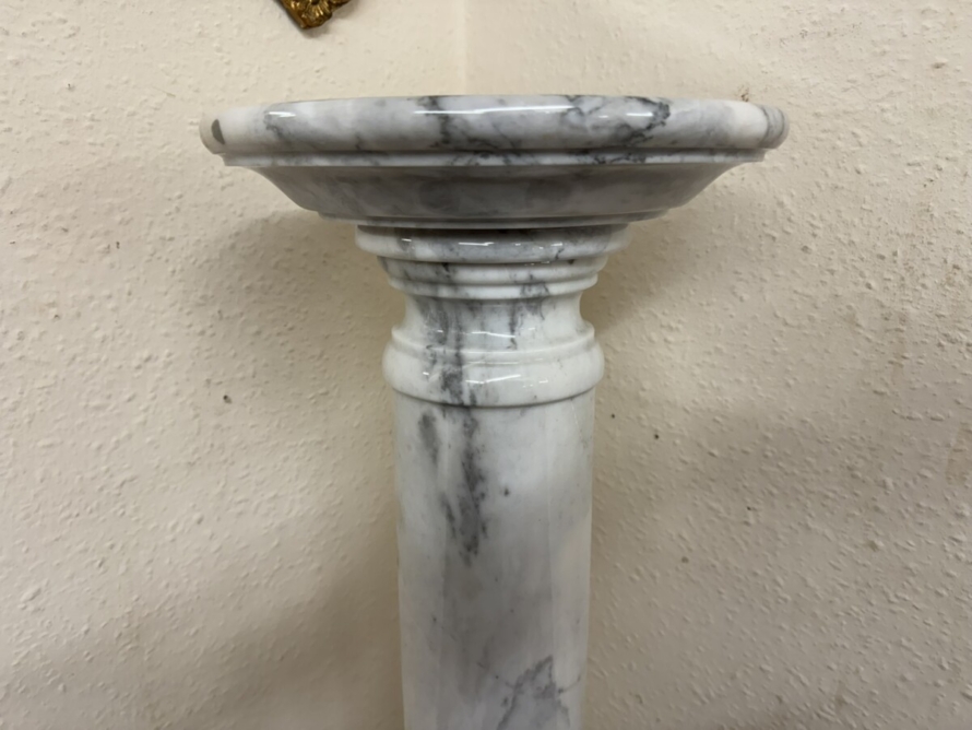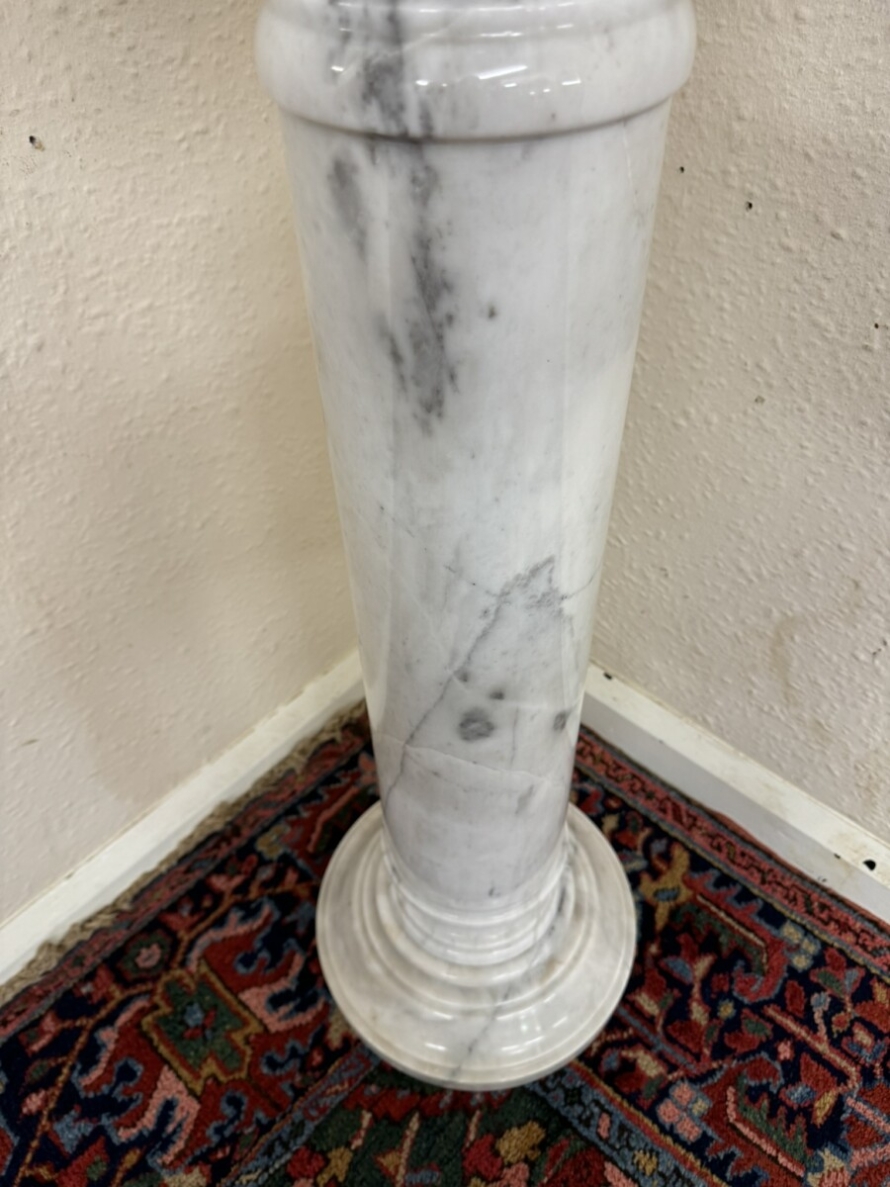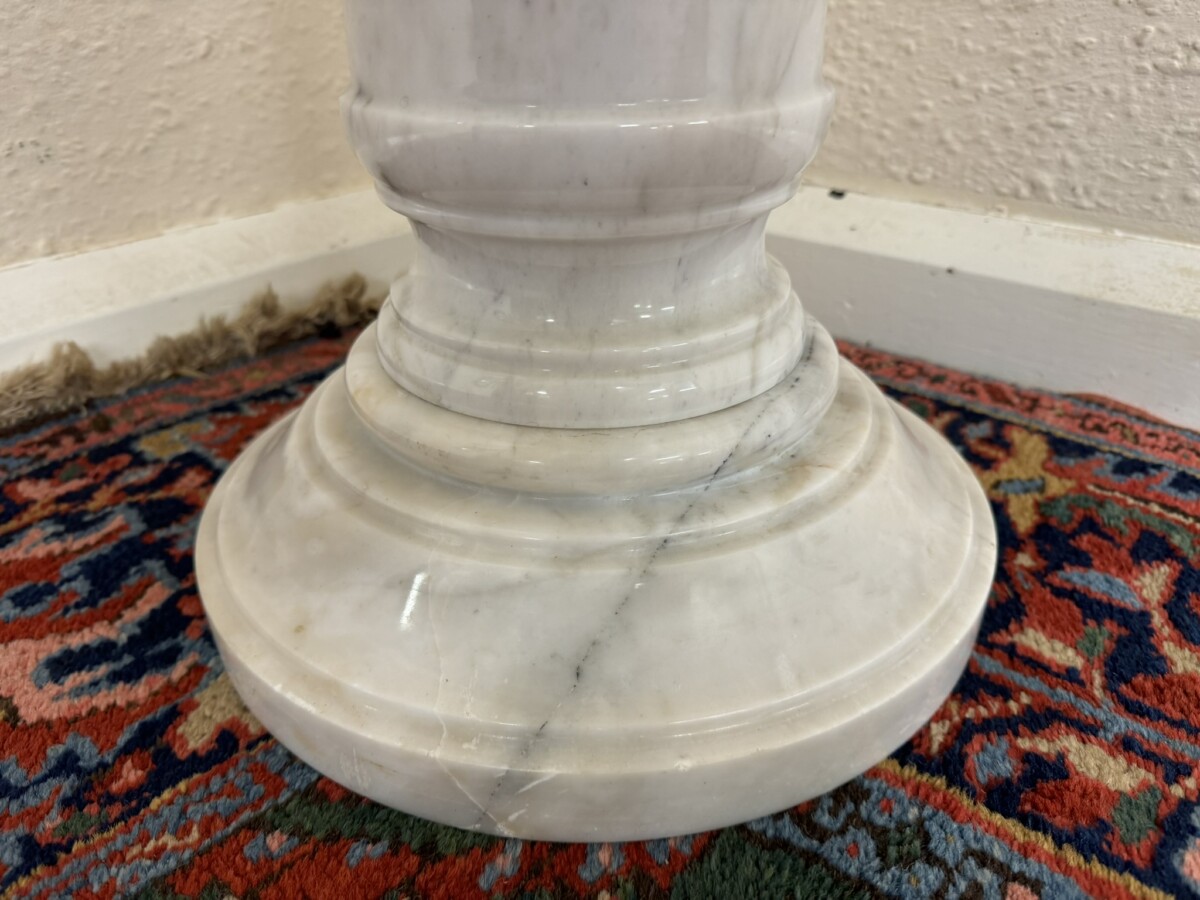 This fantastic one-piece French column dates circa 1950. The column is made in carreras white marble. The column is in excellent condition..