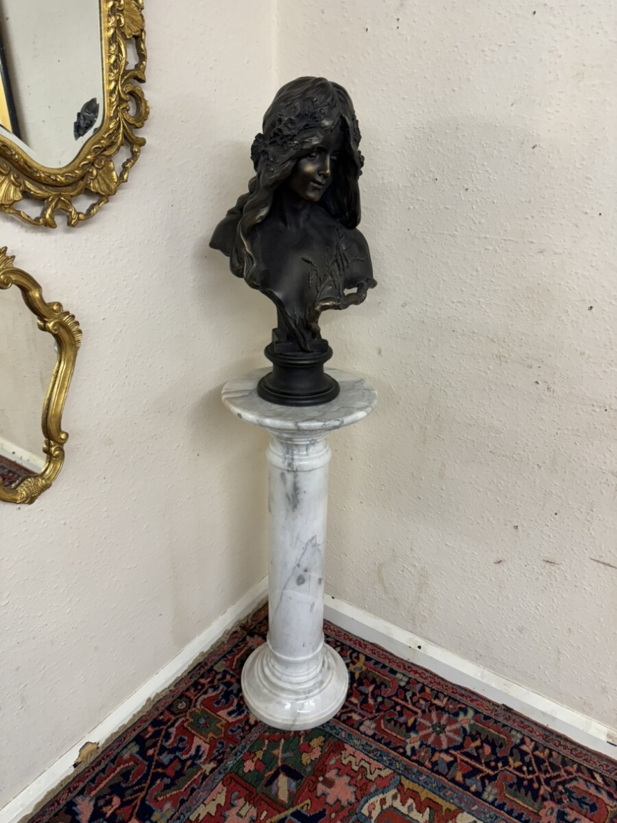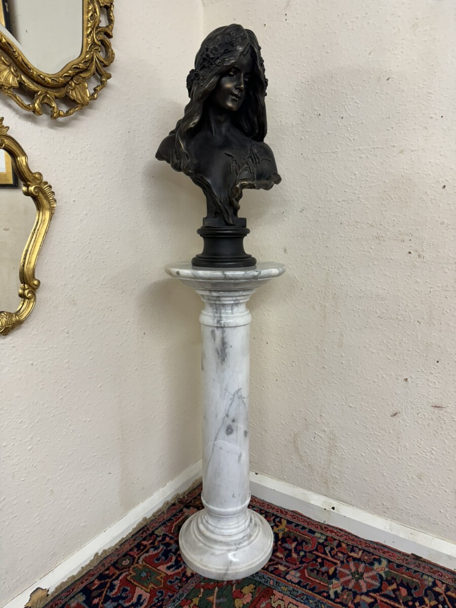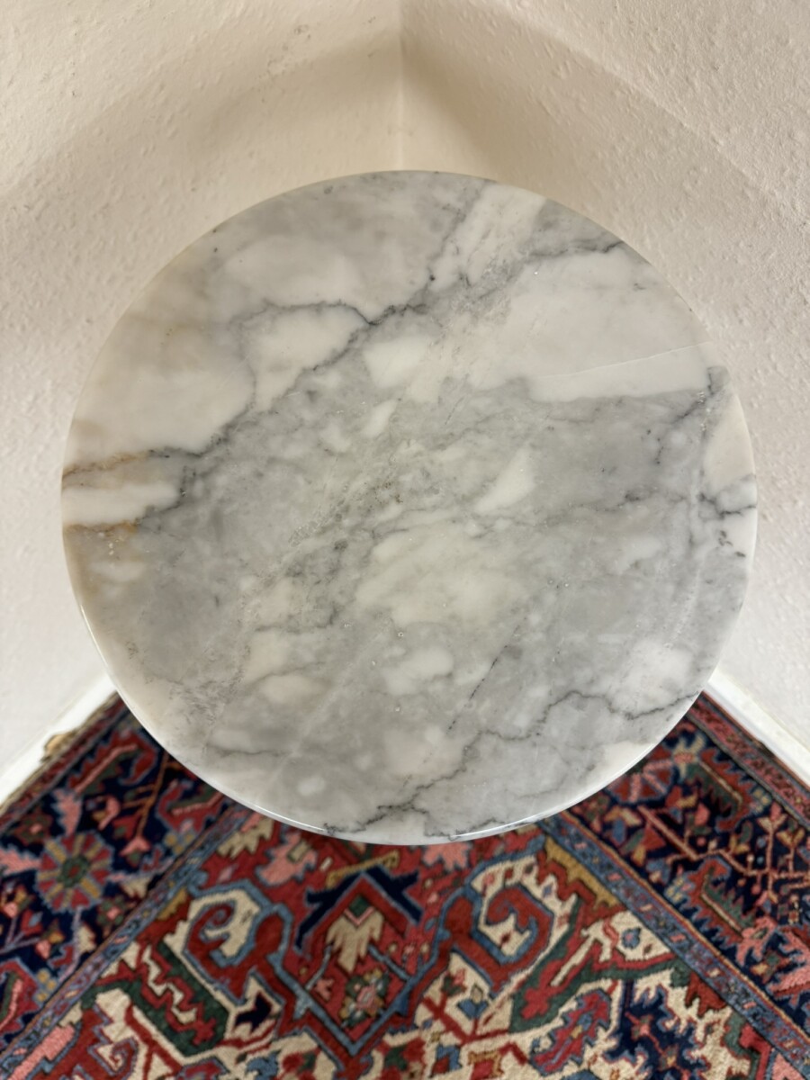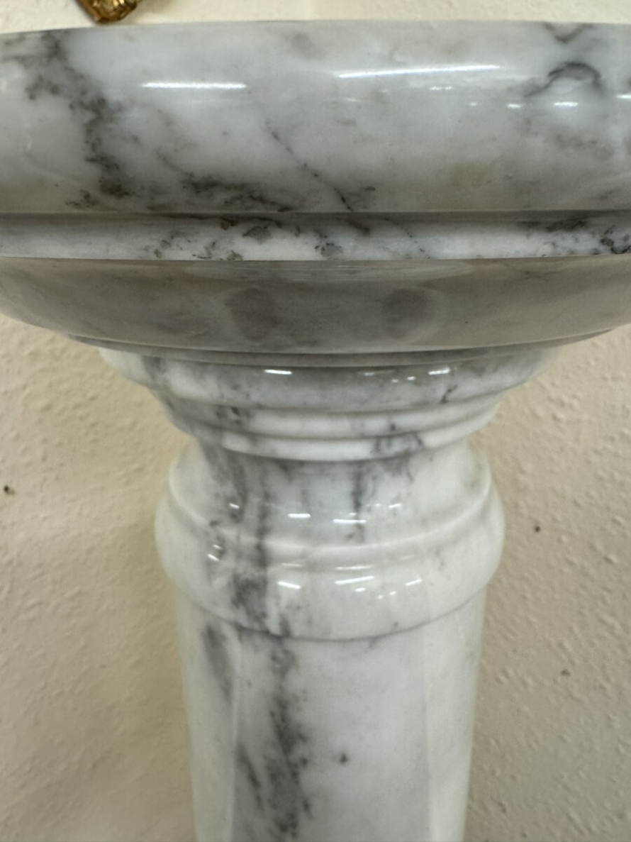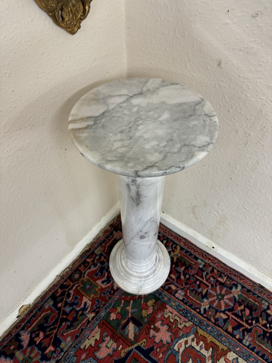 This fantastic one-piece French column dates circa 1950. The column is made in carreras white marble. The column is in excellent condition..