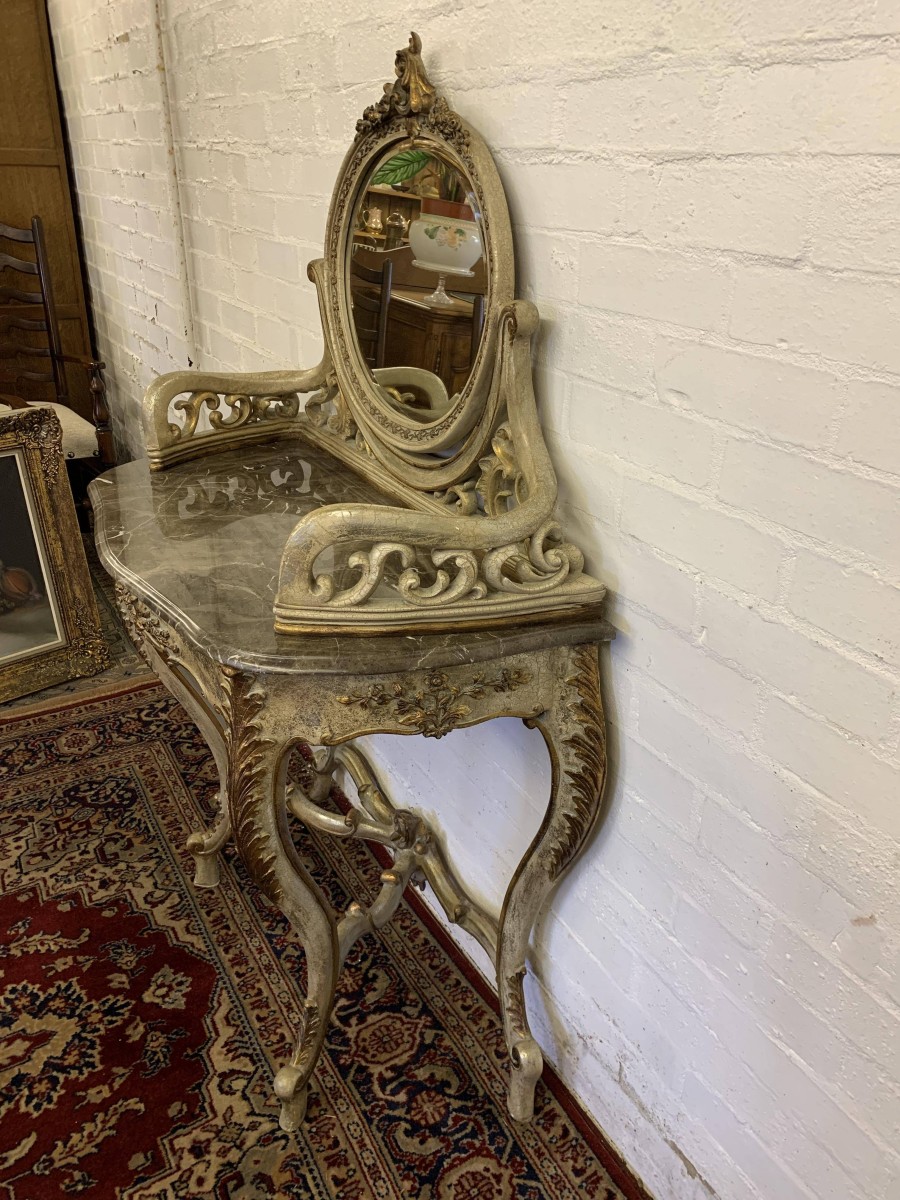 - Stunning French Carved & Shaped Marble Topped Dressing Table – Now Sold