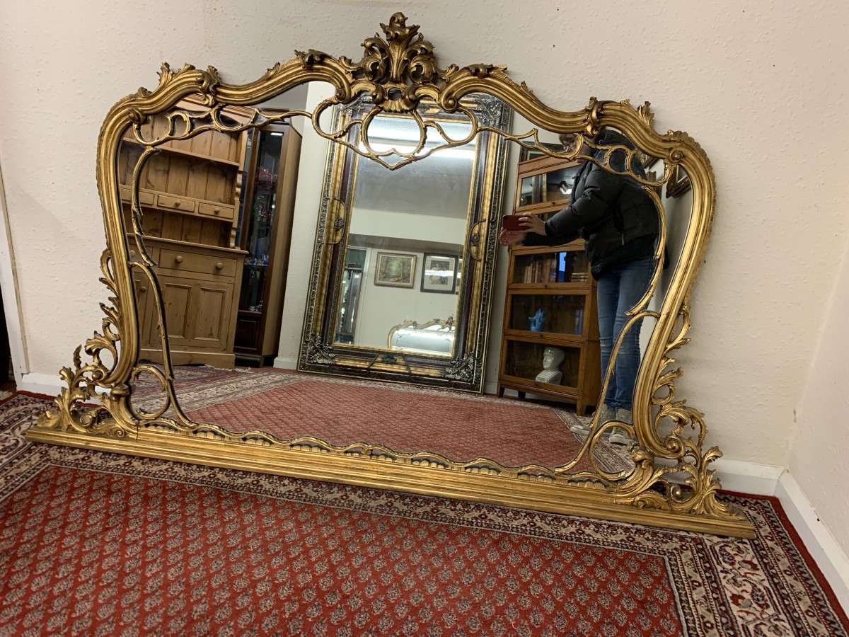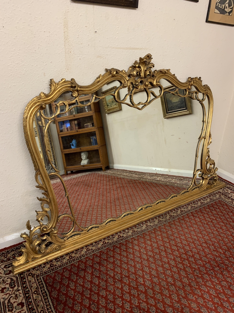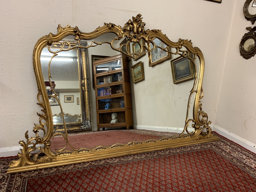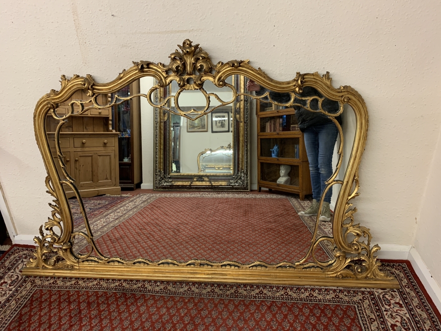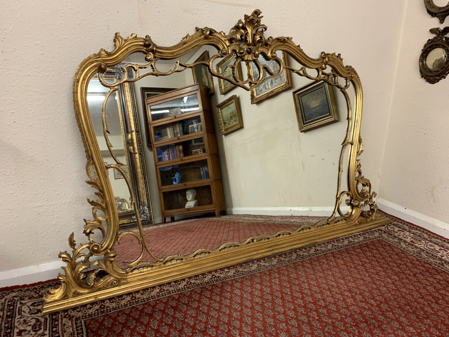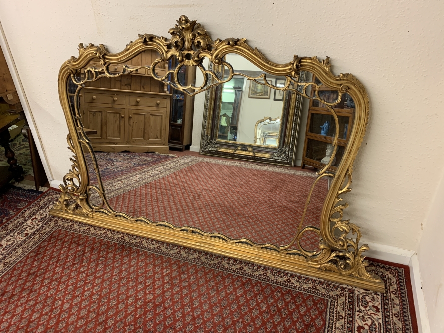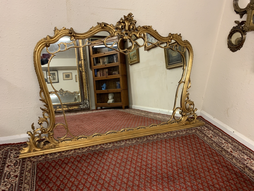 This exceptional overmantle mirror rises to a fabulous central carving. Shaped and carved throughout this striking mirror would enhance any home.