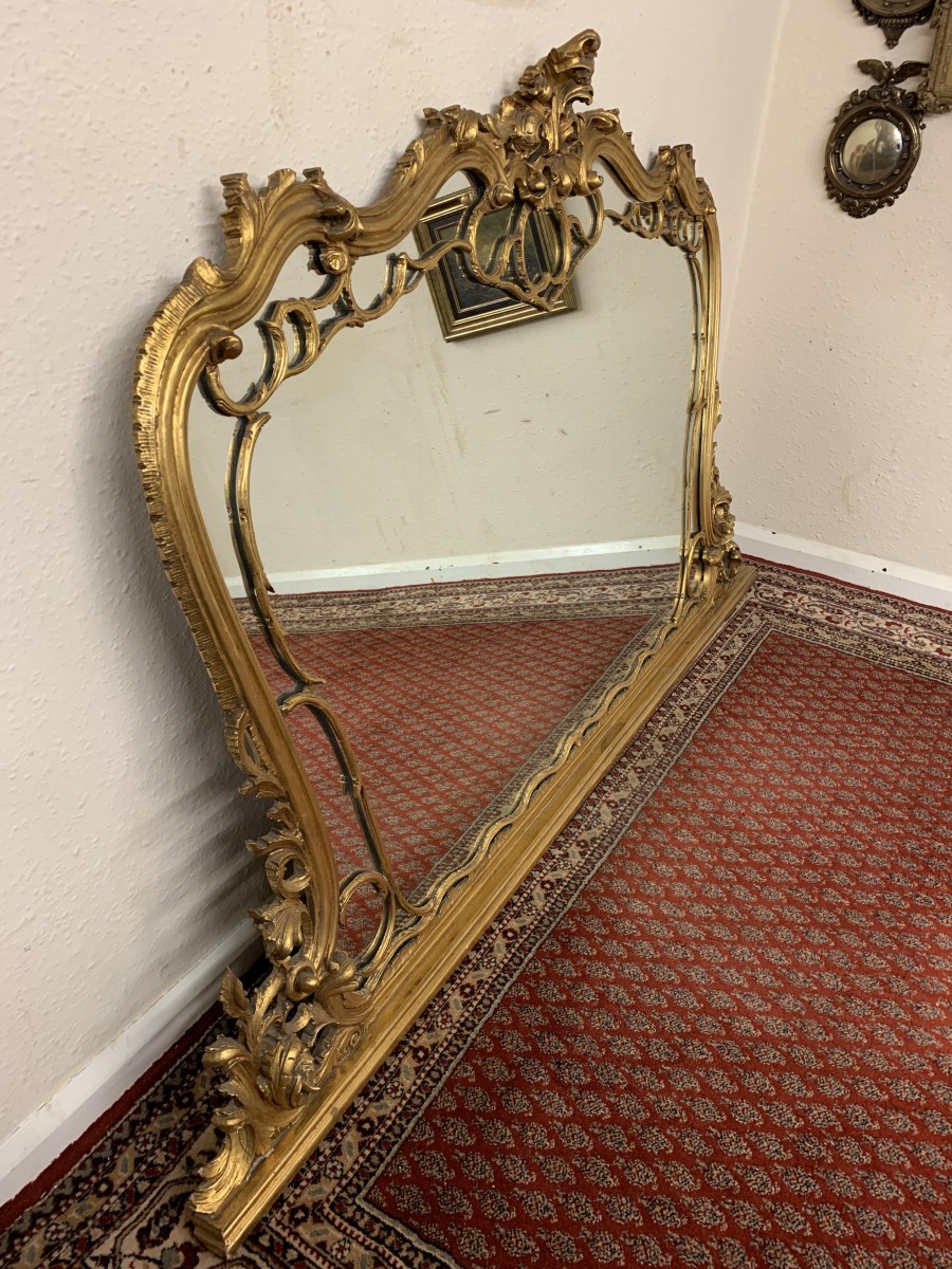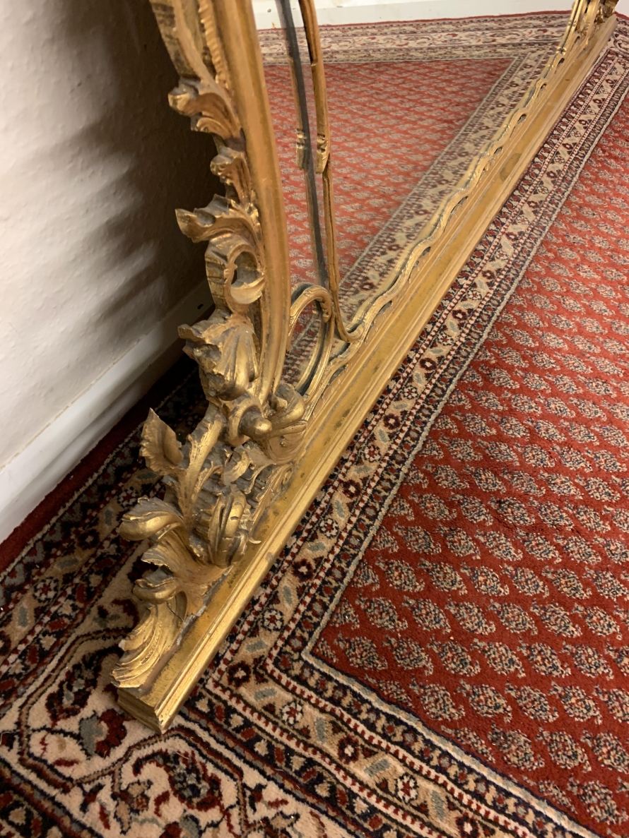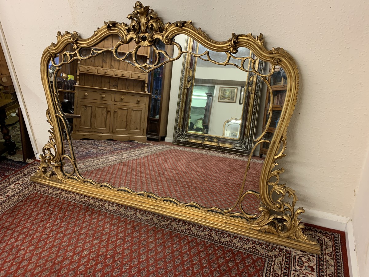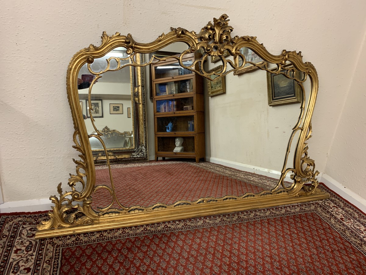 This exceptional overmantle mirror rises to a fabulous central carving. Shaped and carved throughout this striking mirror would enhance any home.