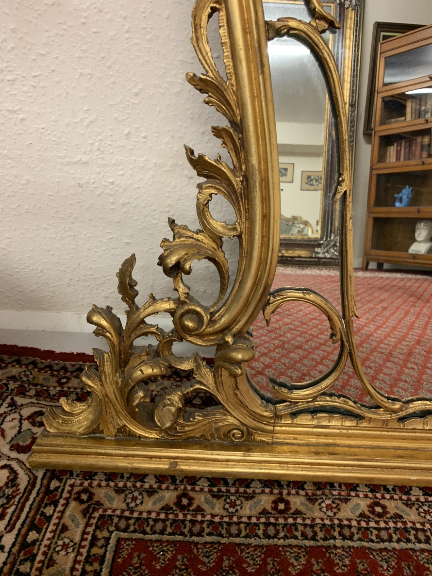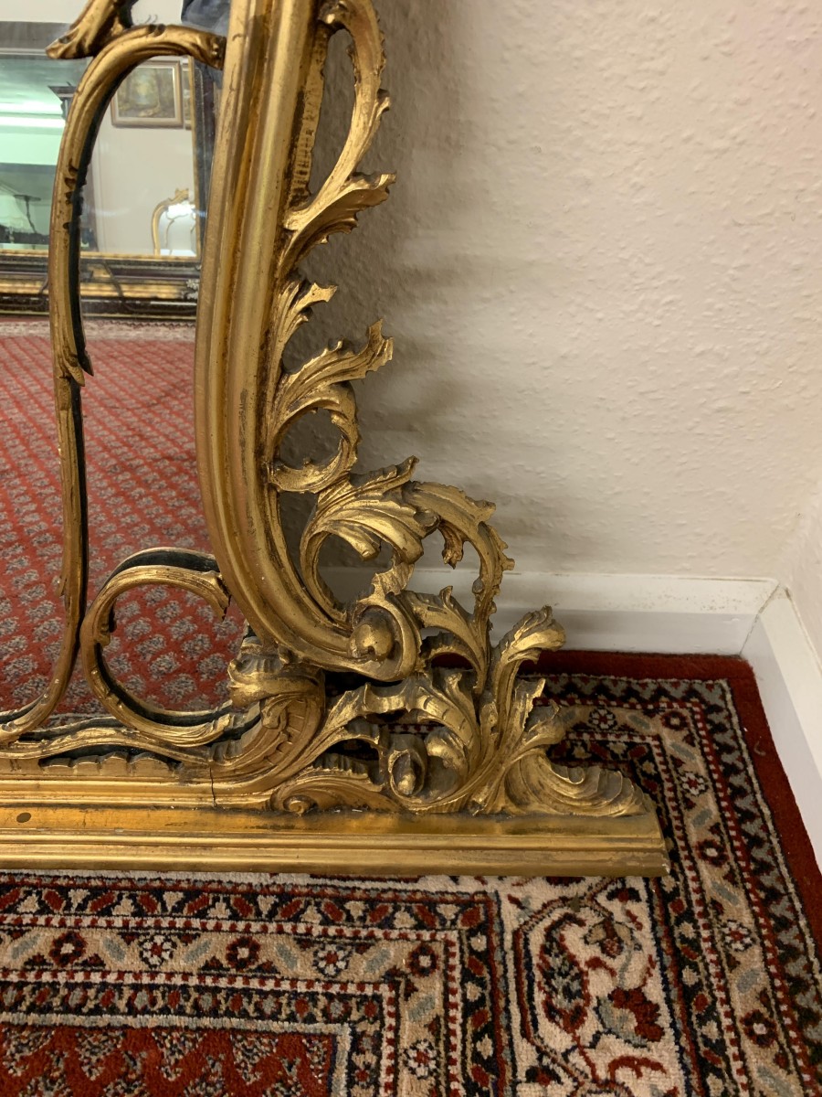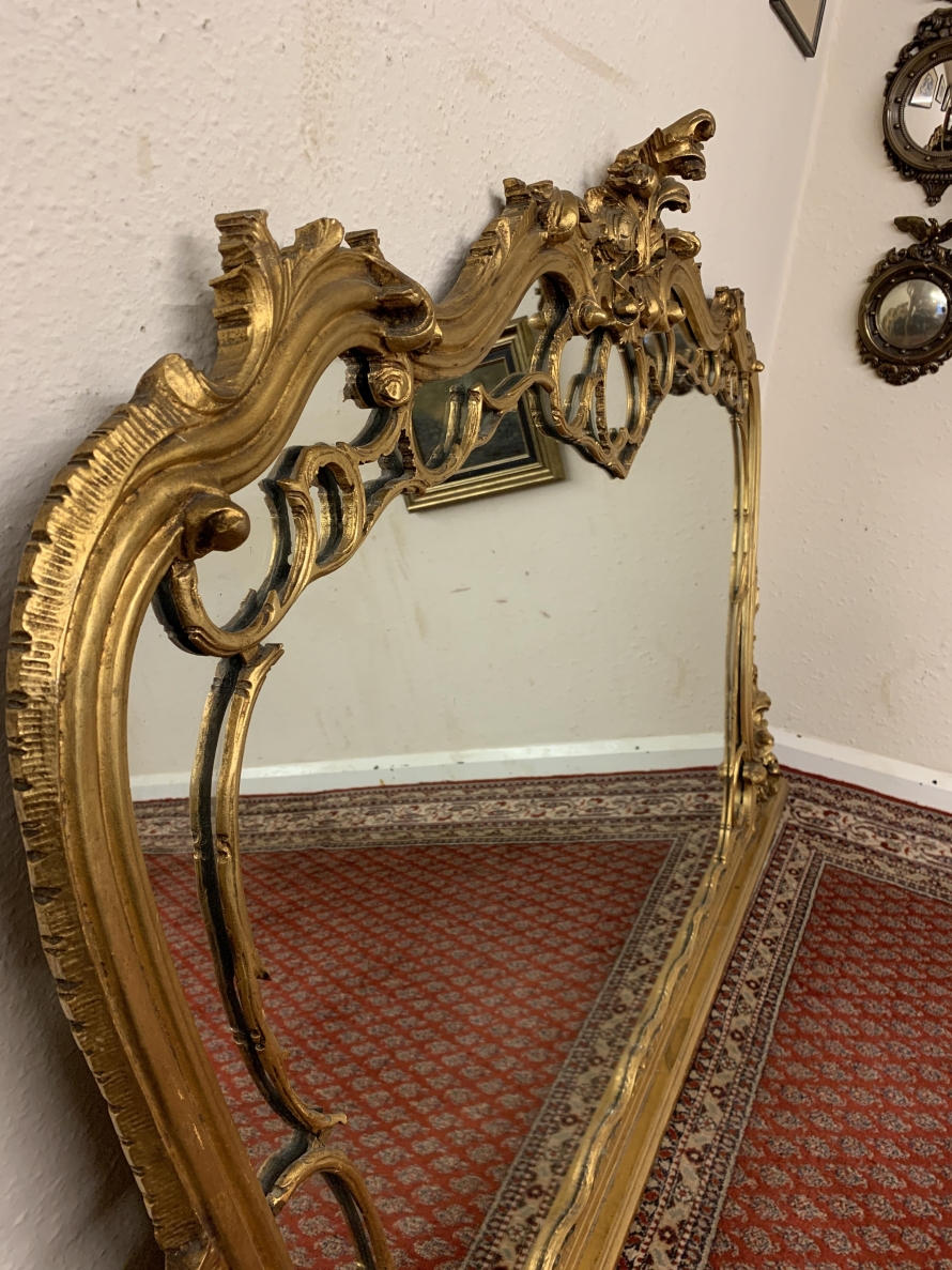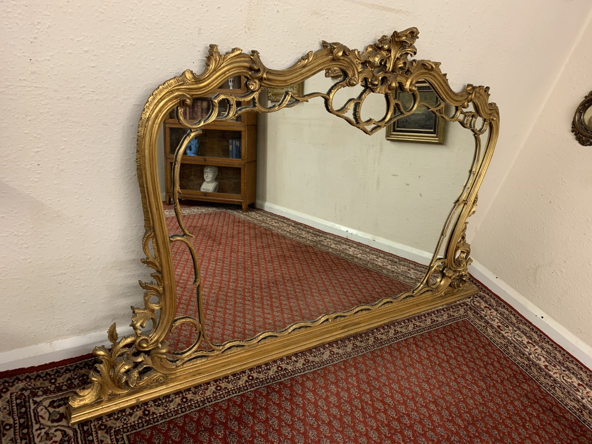 This exceptional overmantle mirror rises to a fabulous central carving. Shaped and carved throughout this striking mirror would enhance any home.