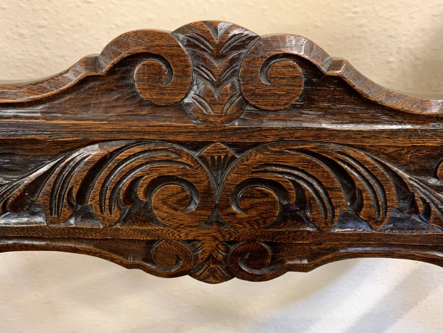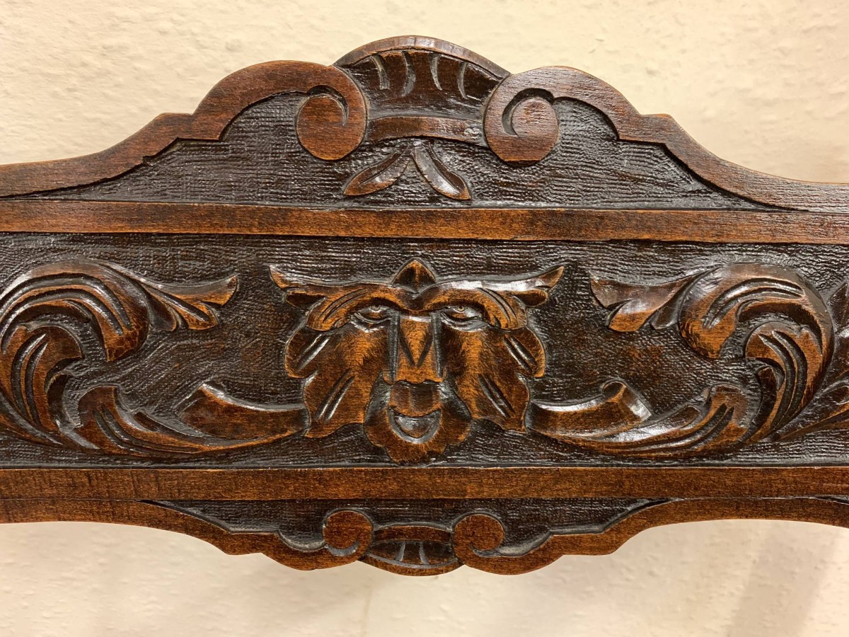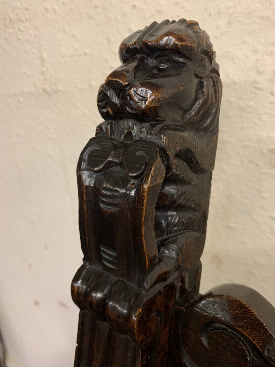 Stunning Near Pair Of Antique French Carved Oak Dagobert Armchairs Circa 1900