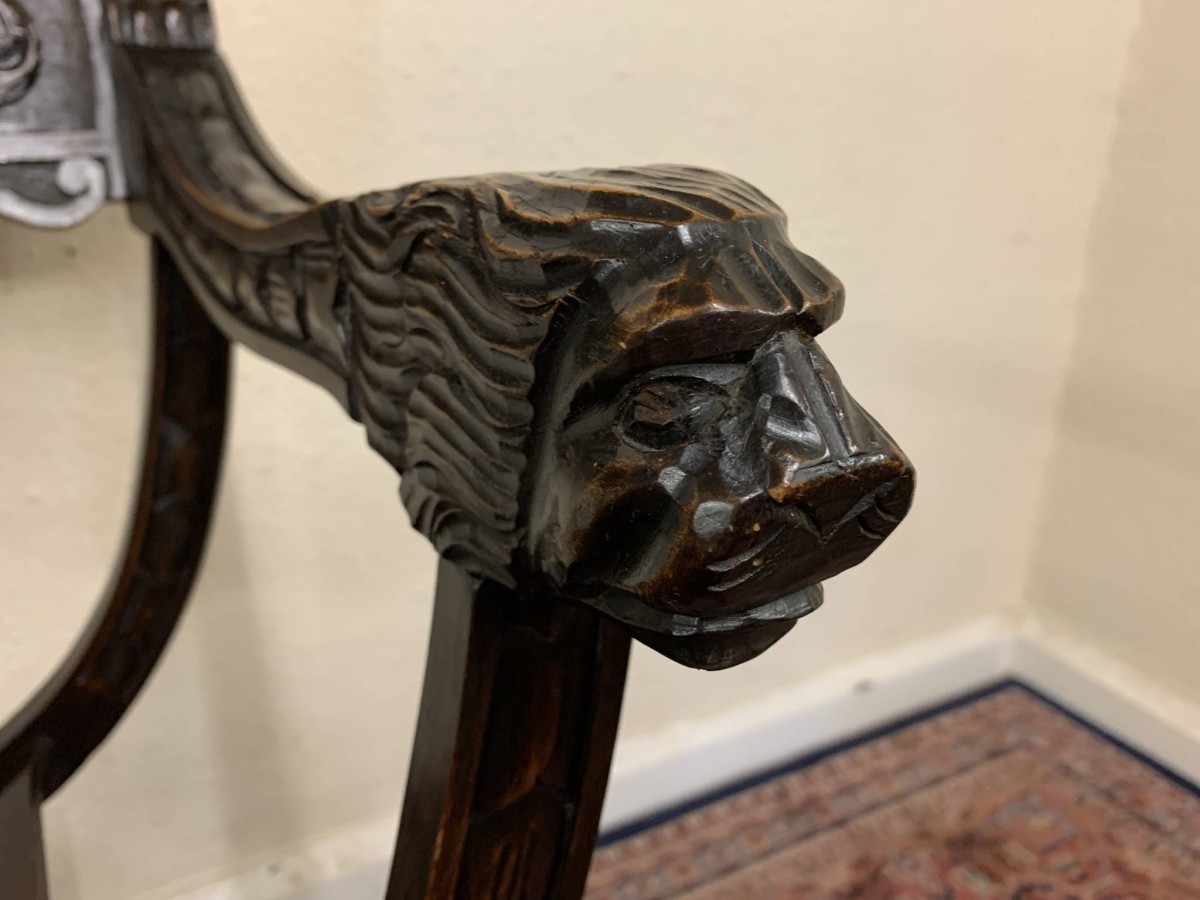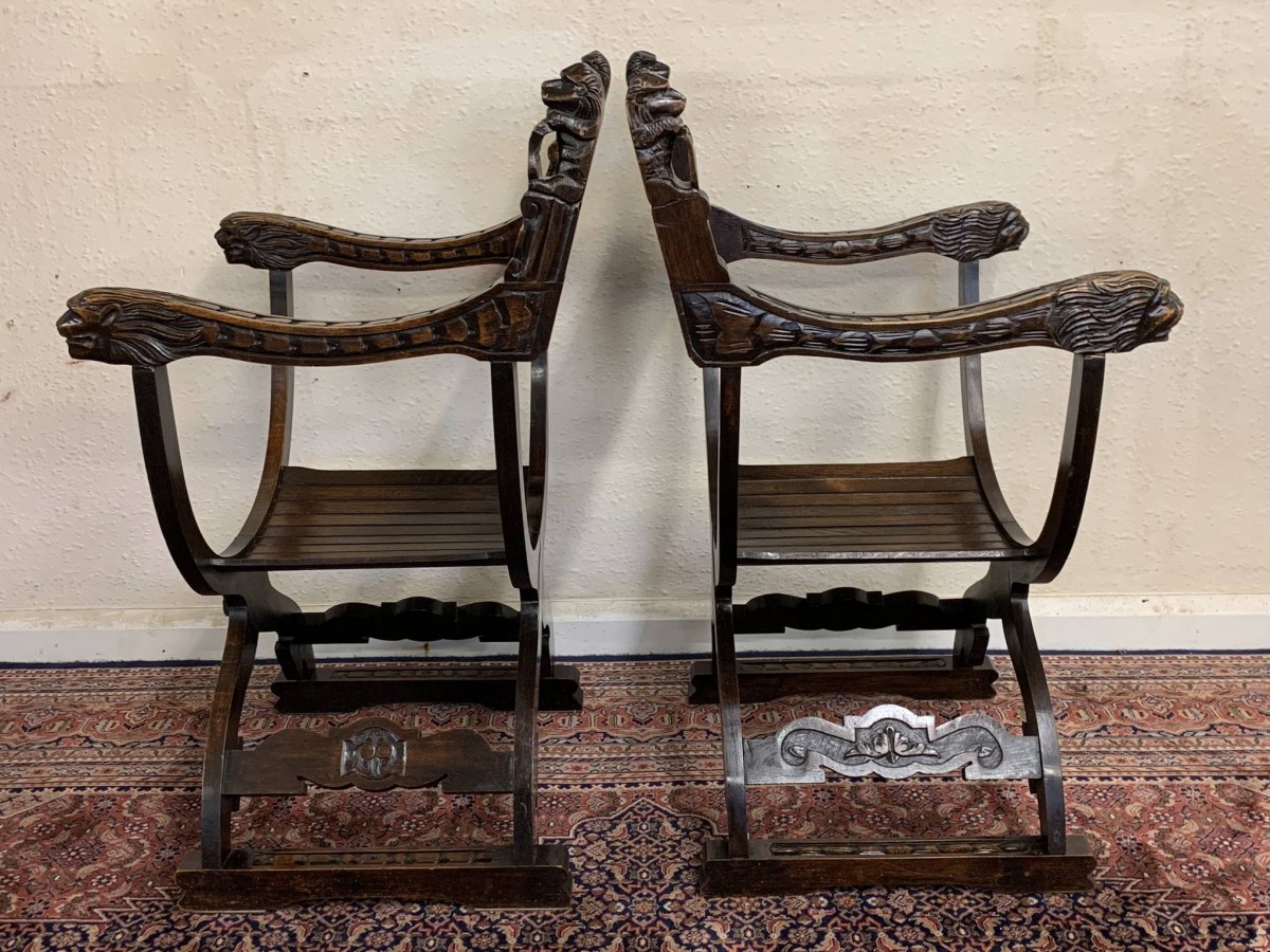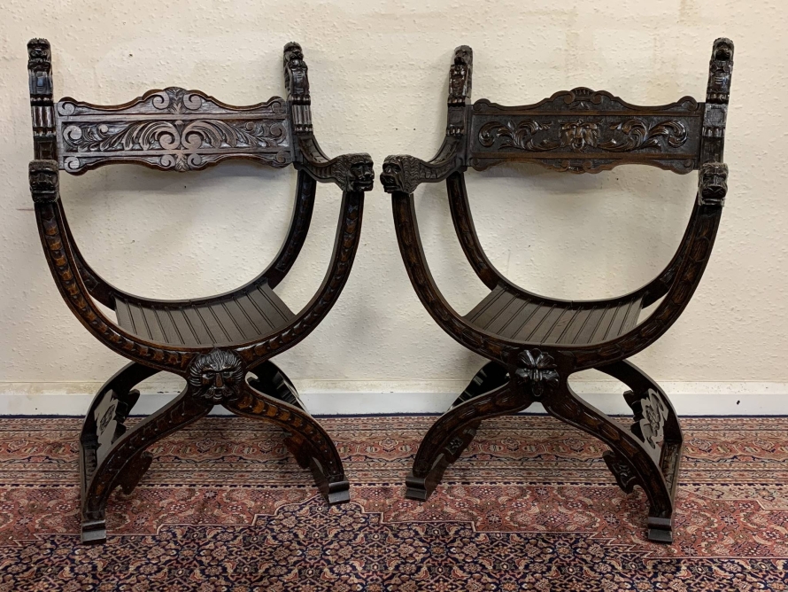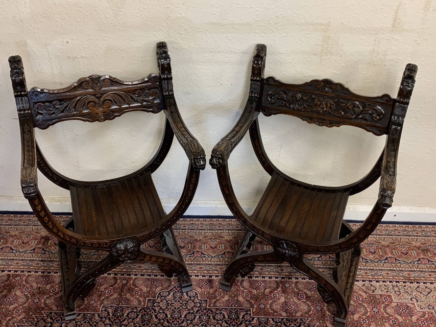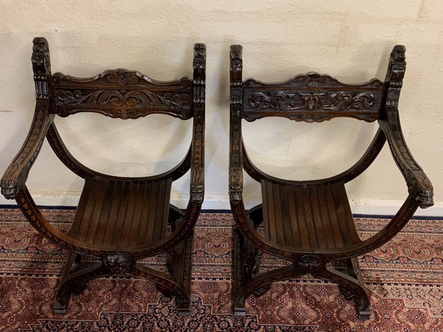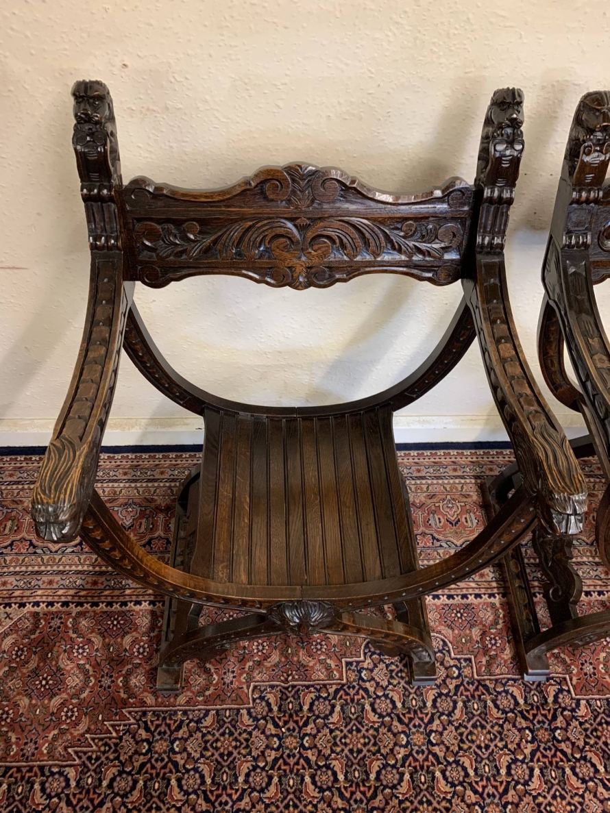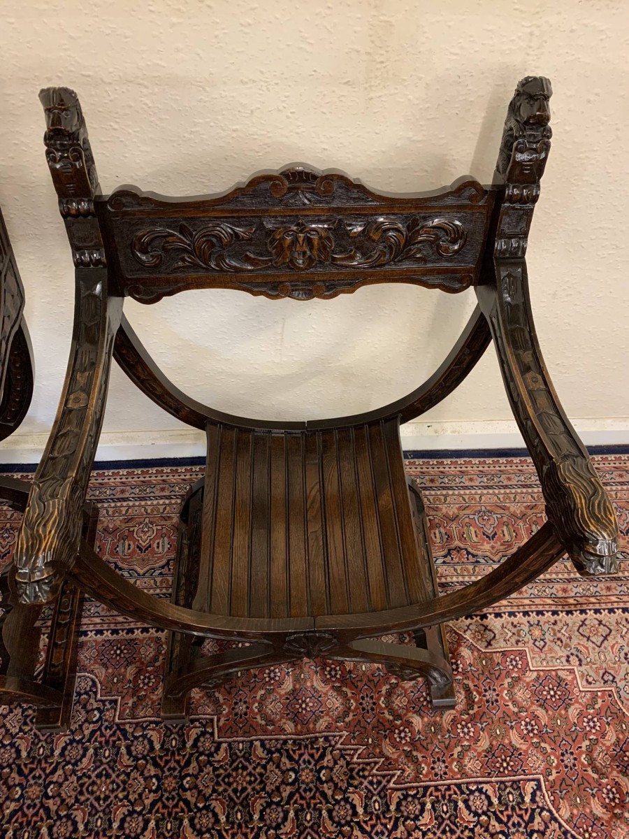- Stunning Near Pair Of Antique French Carved Oak Dagobert Armchairs Circa 1900