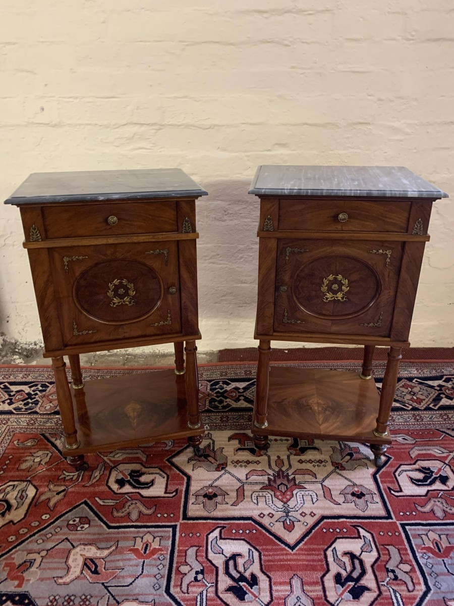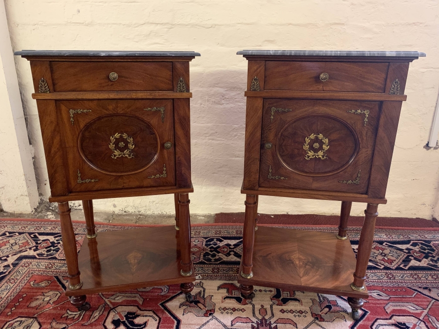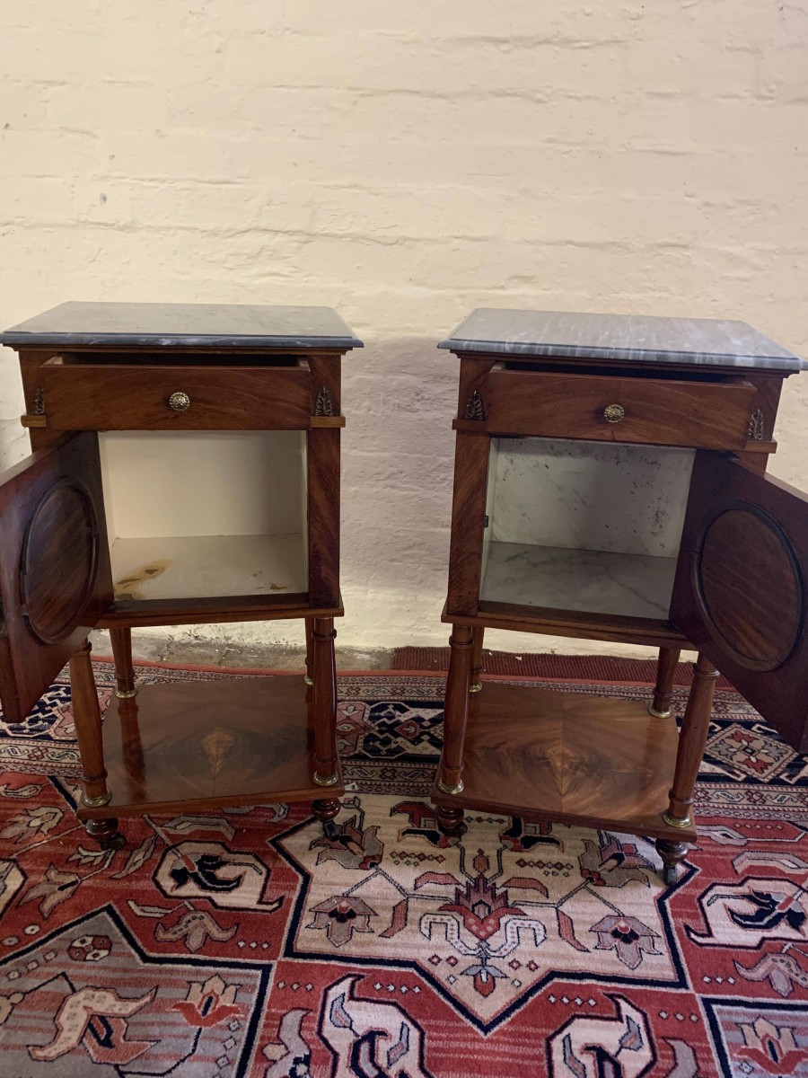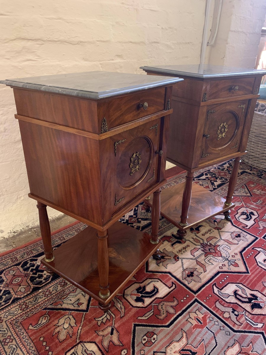 - Stunning Pair Of Antique French Mahogany Empire Marble Top Bedside Cabinets Circa 1890 – Now Sold