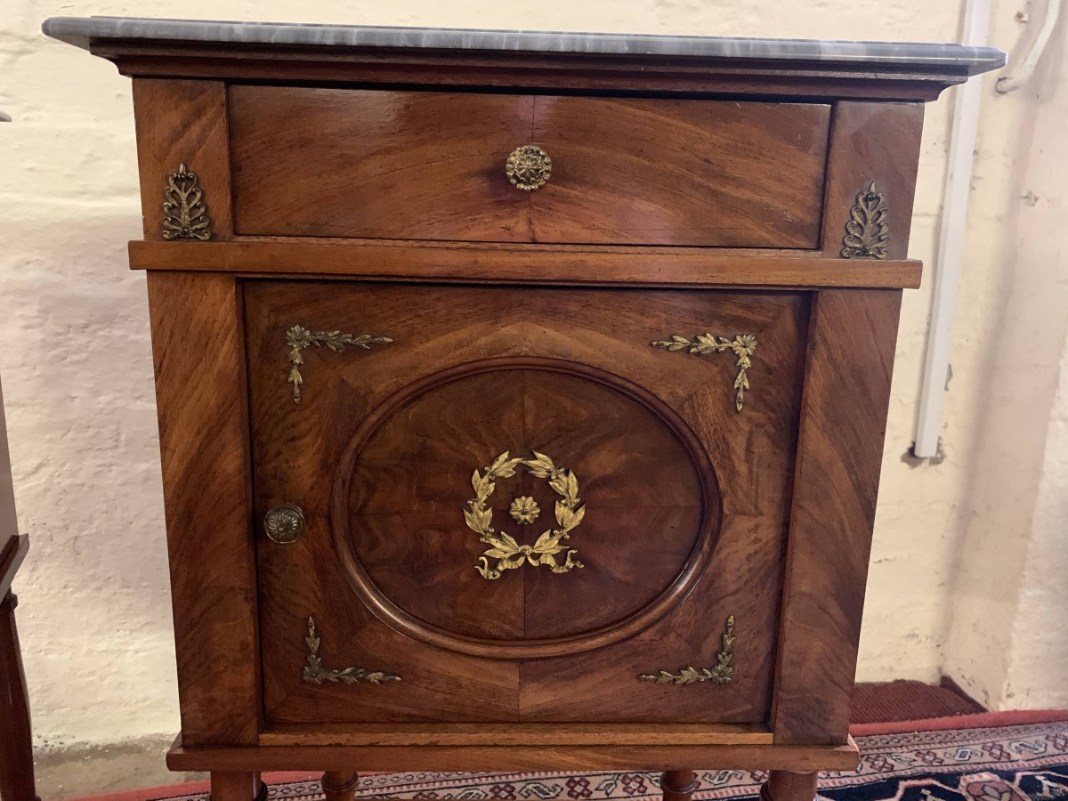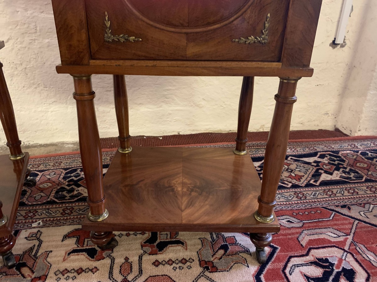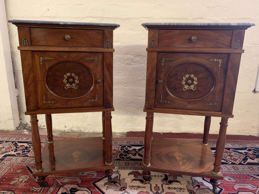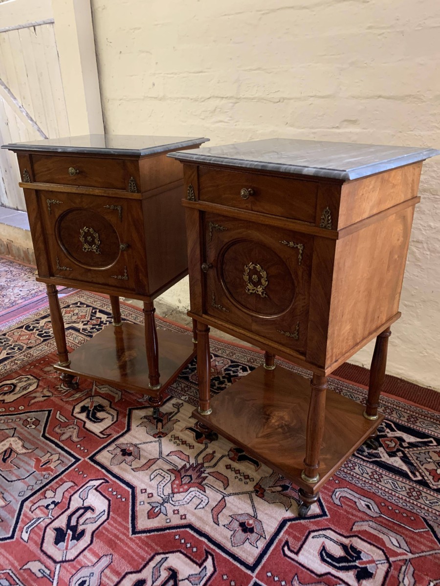 - Stunning Pair Of Antique French Mahogany Empire Marble Top Bedside Cabinets Circa 1890 – Now Sold