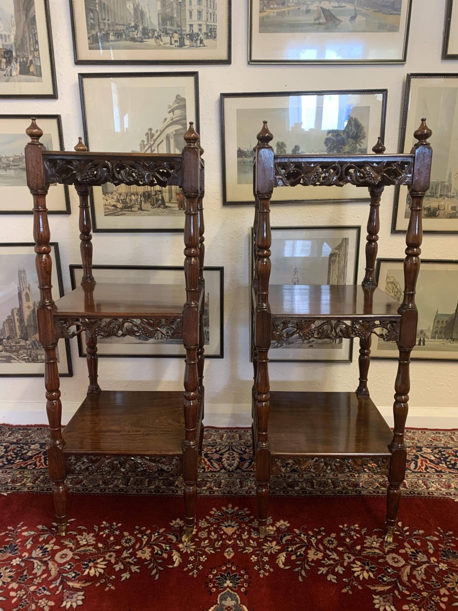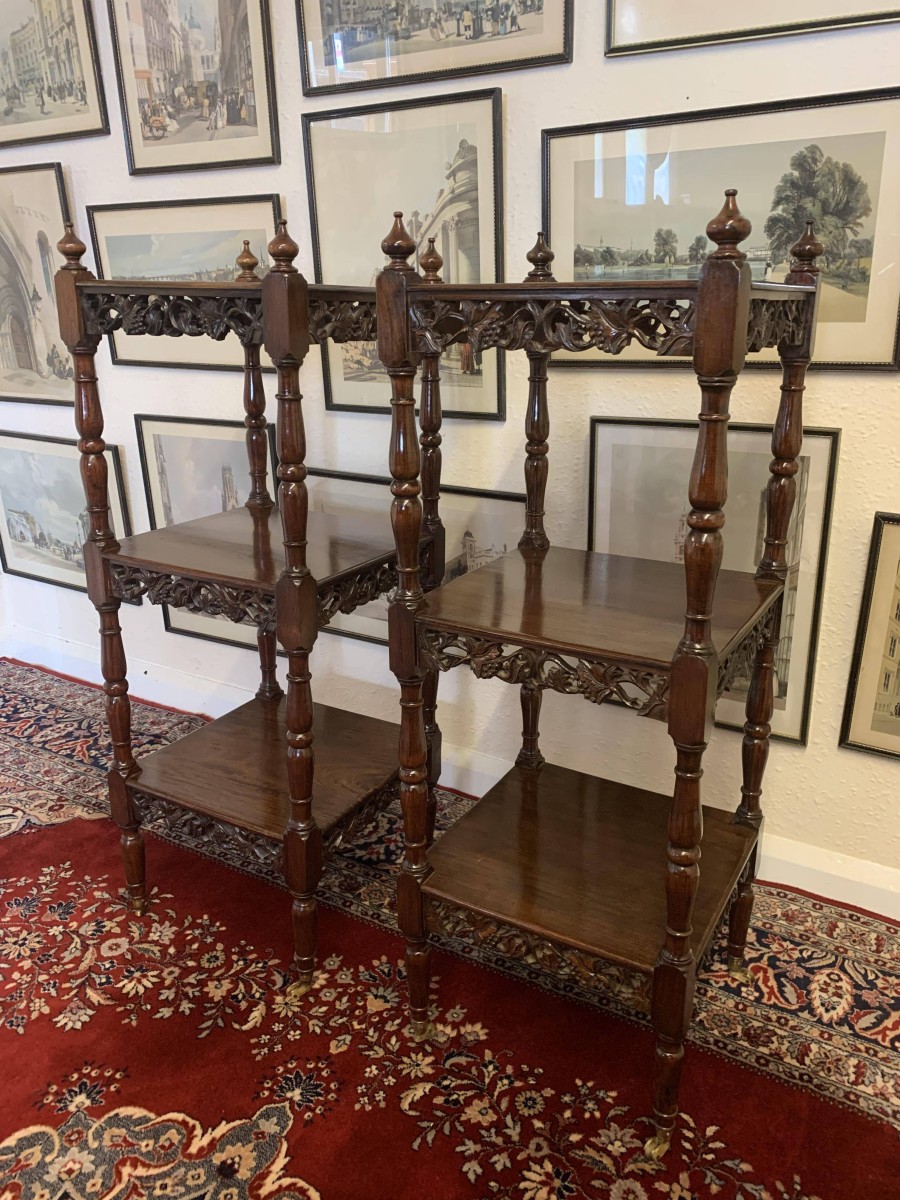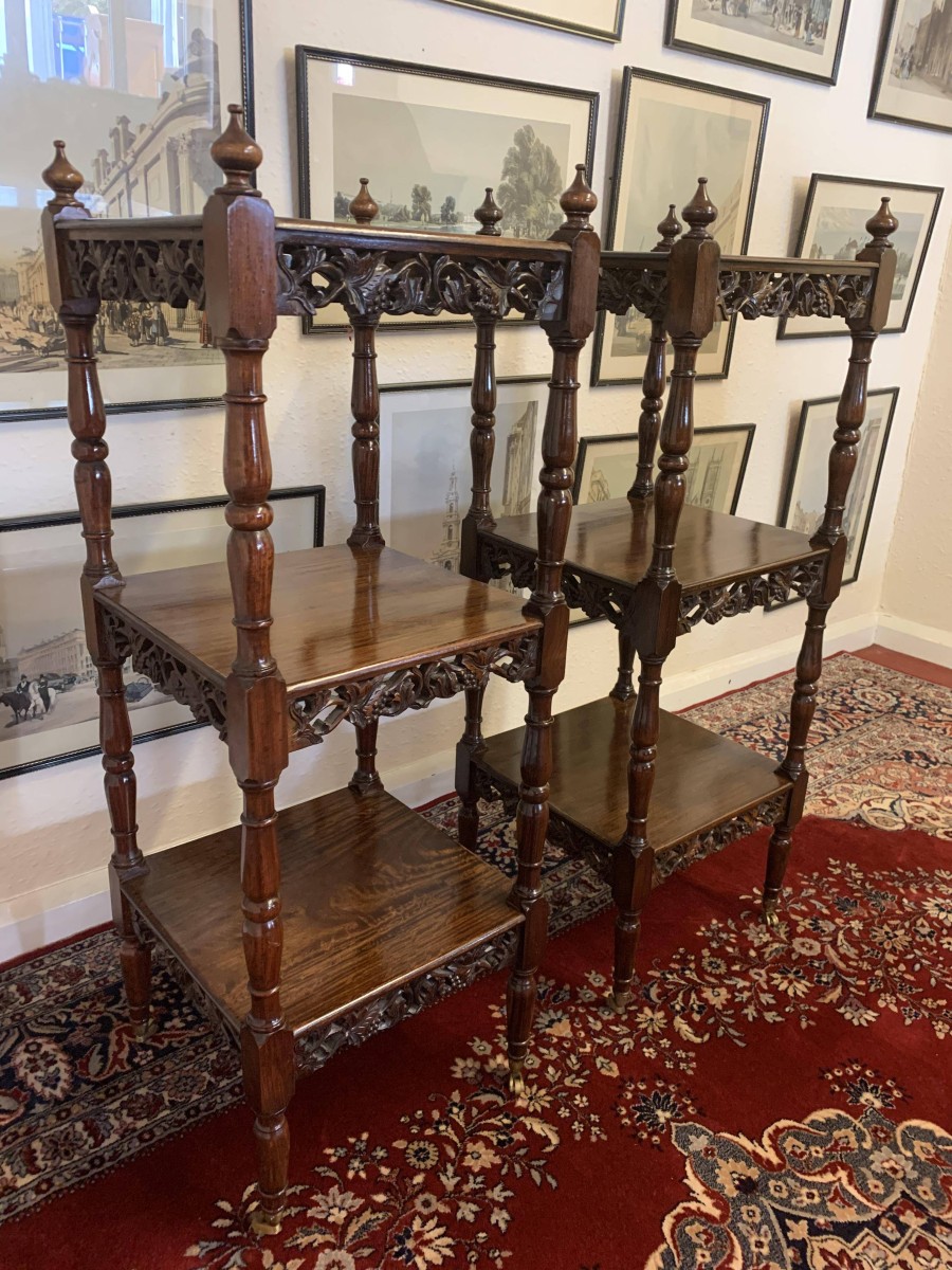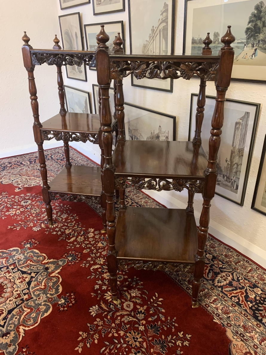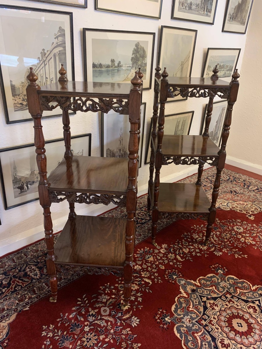 - Stunning Pair Of Carved Mahogany Three Tier What Nots/stands/sidetables/display – Now Sold