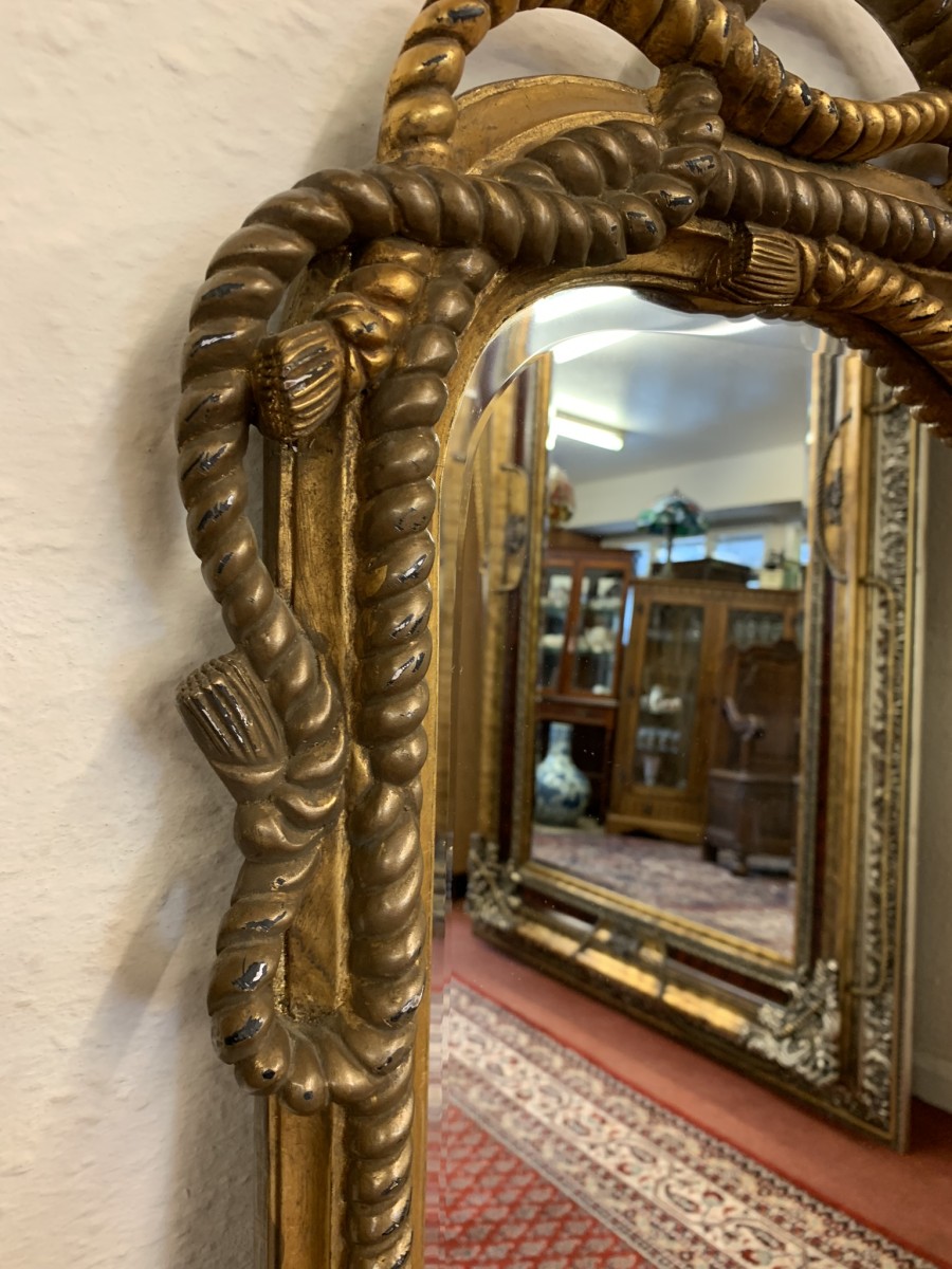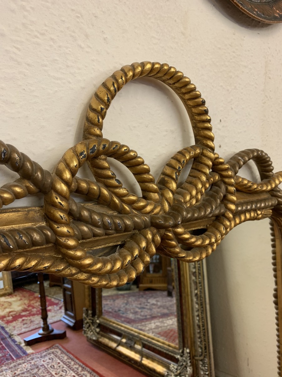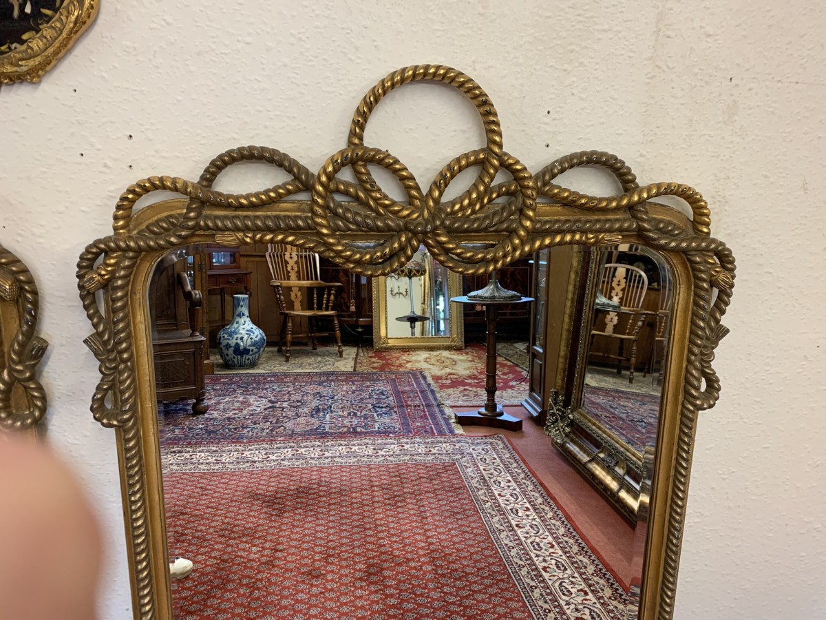 What a fabulously designed pair of mirrors each have a bevel edged mirror which sits in a highly decorative rope frame. The frames have a rope decorative design throughout.