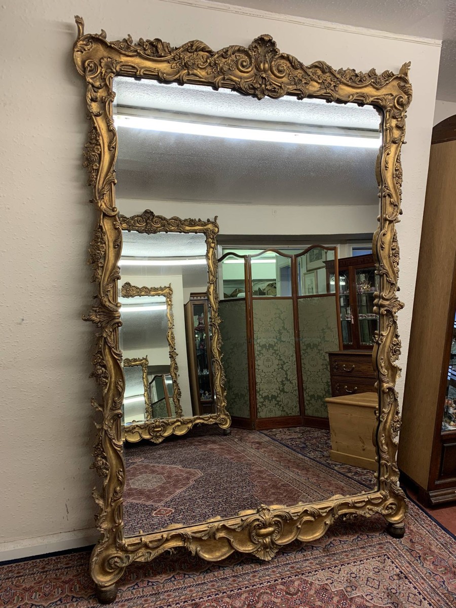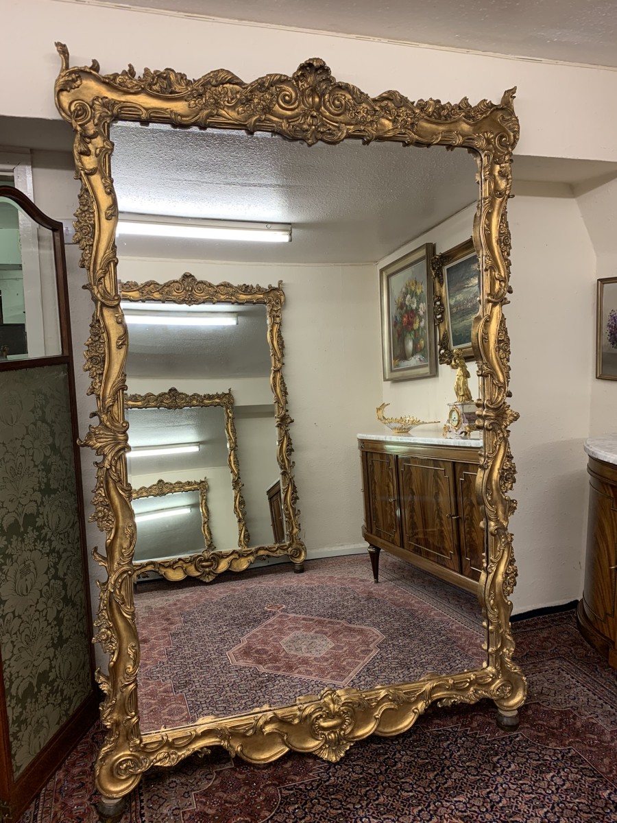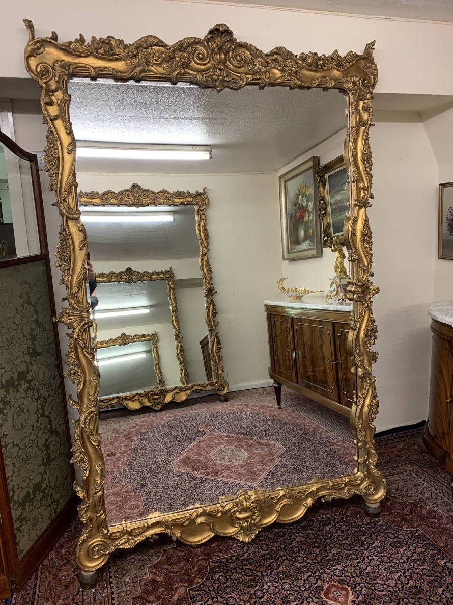 Stunning Pair Of Very Large Heavily Carved Rococo Style Gilt Wood Mirrors – Now Sold