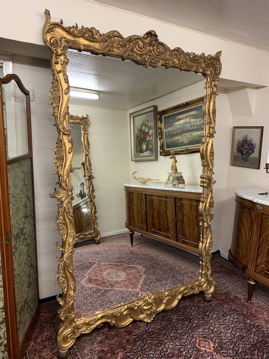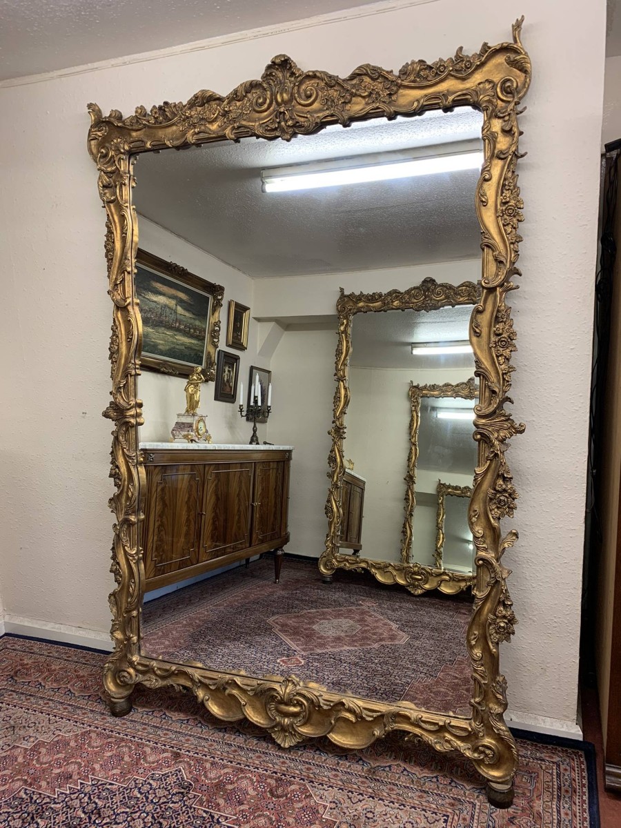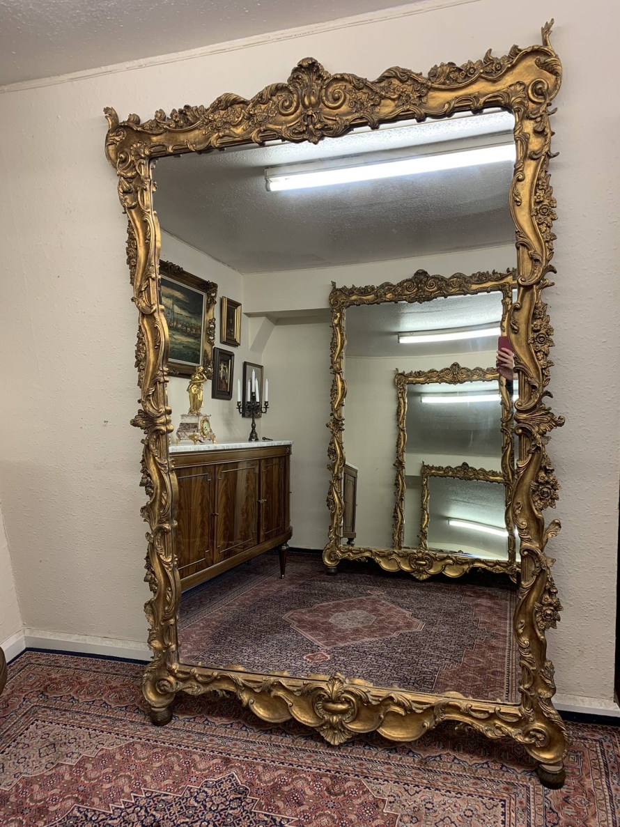 - Stunning Pair Of Very Large Heavily Carved Rococo Style Gilt Wood Mirrors – Now Sold
