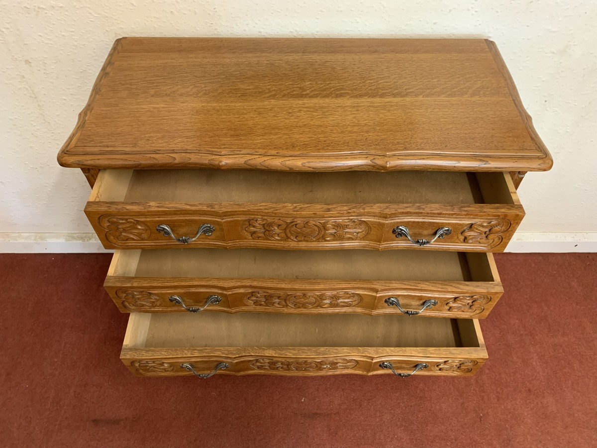 Stylish French Carved Oak Shaped Commode/chest Of Drawers (8)