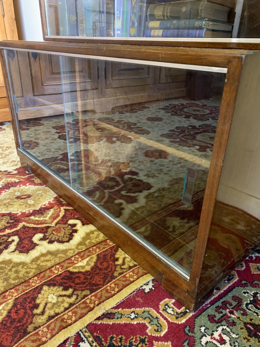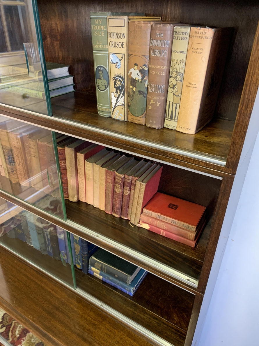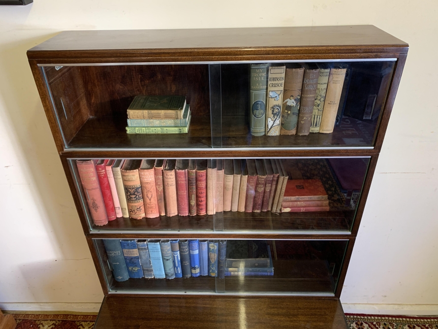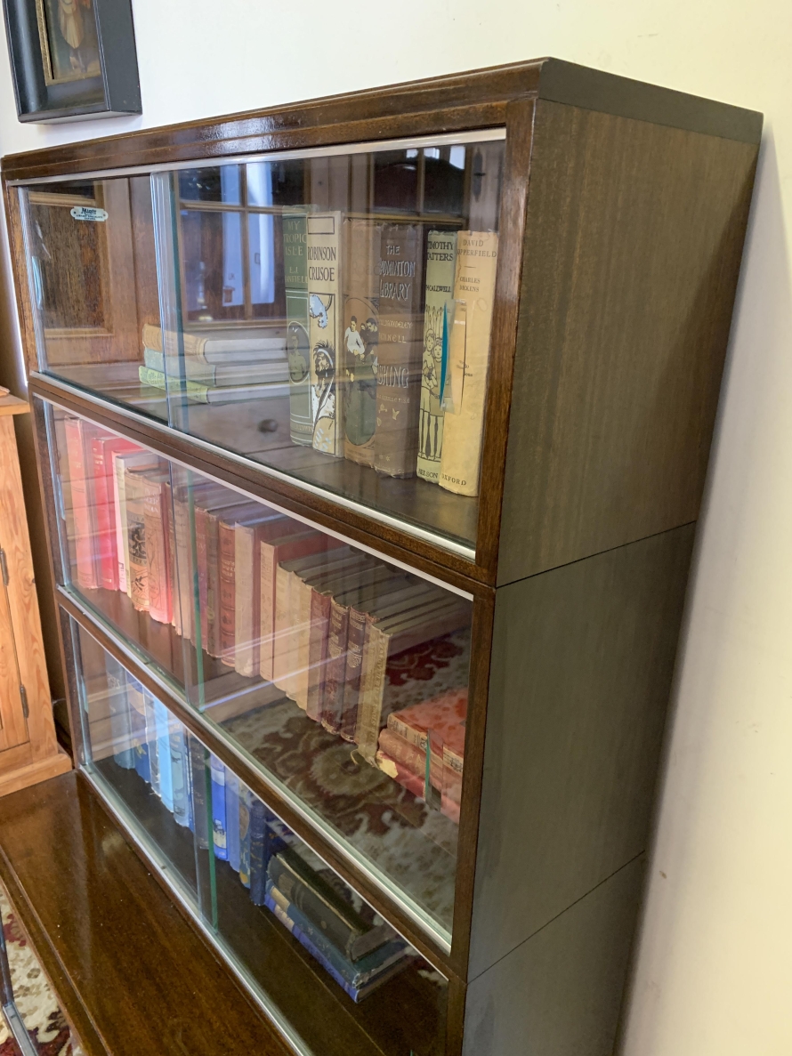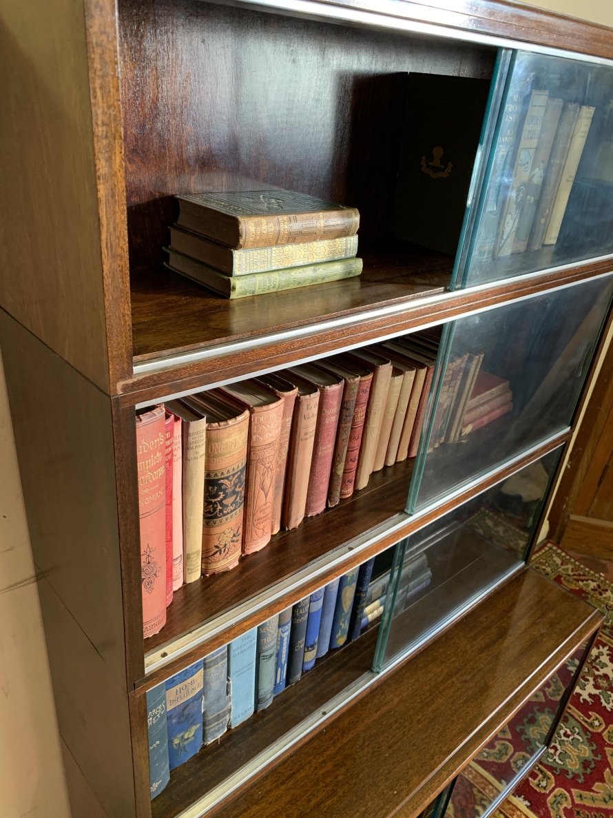 This “Miny” stacking bookcase is in fab condition. Each of the four tiers having a pair of sliding glass doors which sit in a chrome frame. The large bottom tier having a removable wooden shelf.