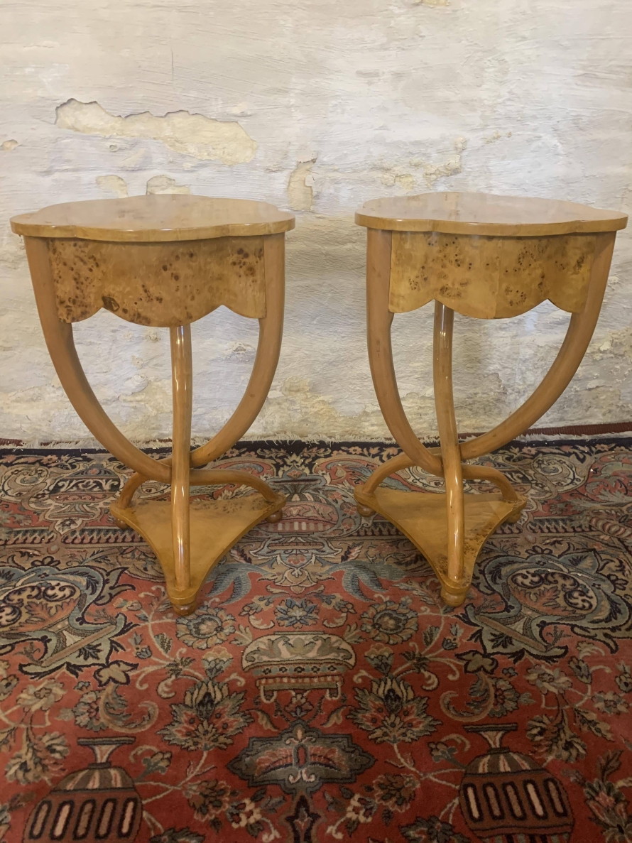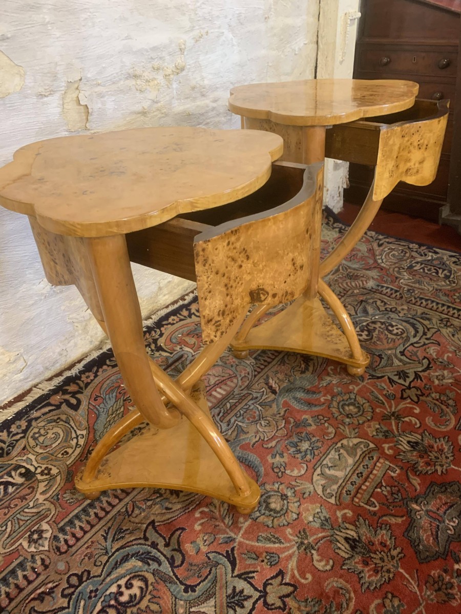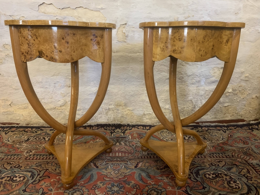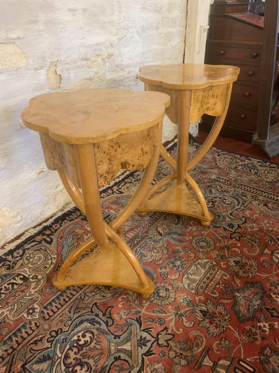 Stylish Pair Of Bird’s Eye Maple Side Tables – Now Sold