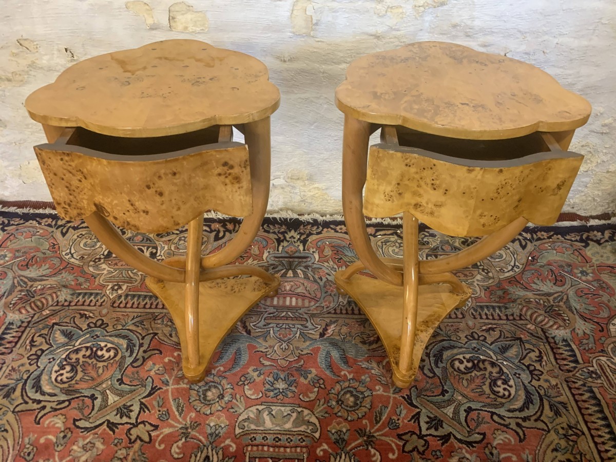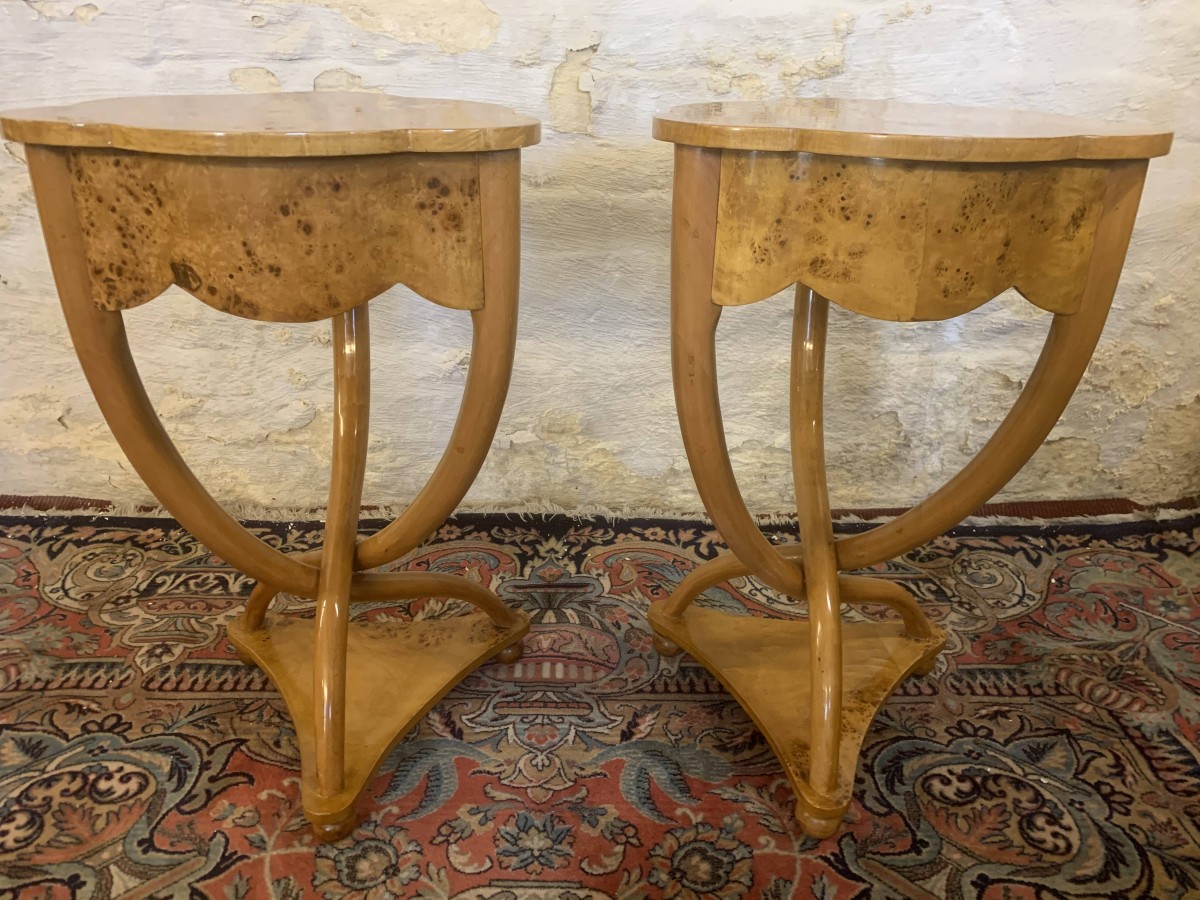 - Stylish Pair Of Bird’s Eye Maple Side Tables – Now Sold