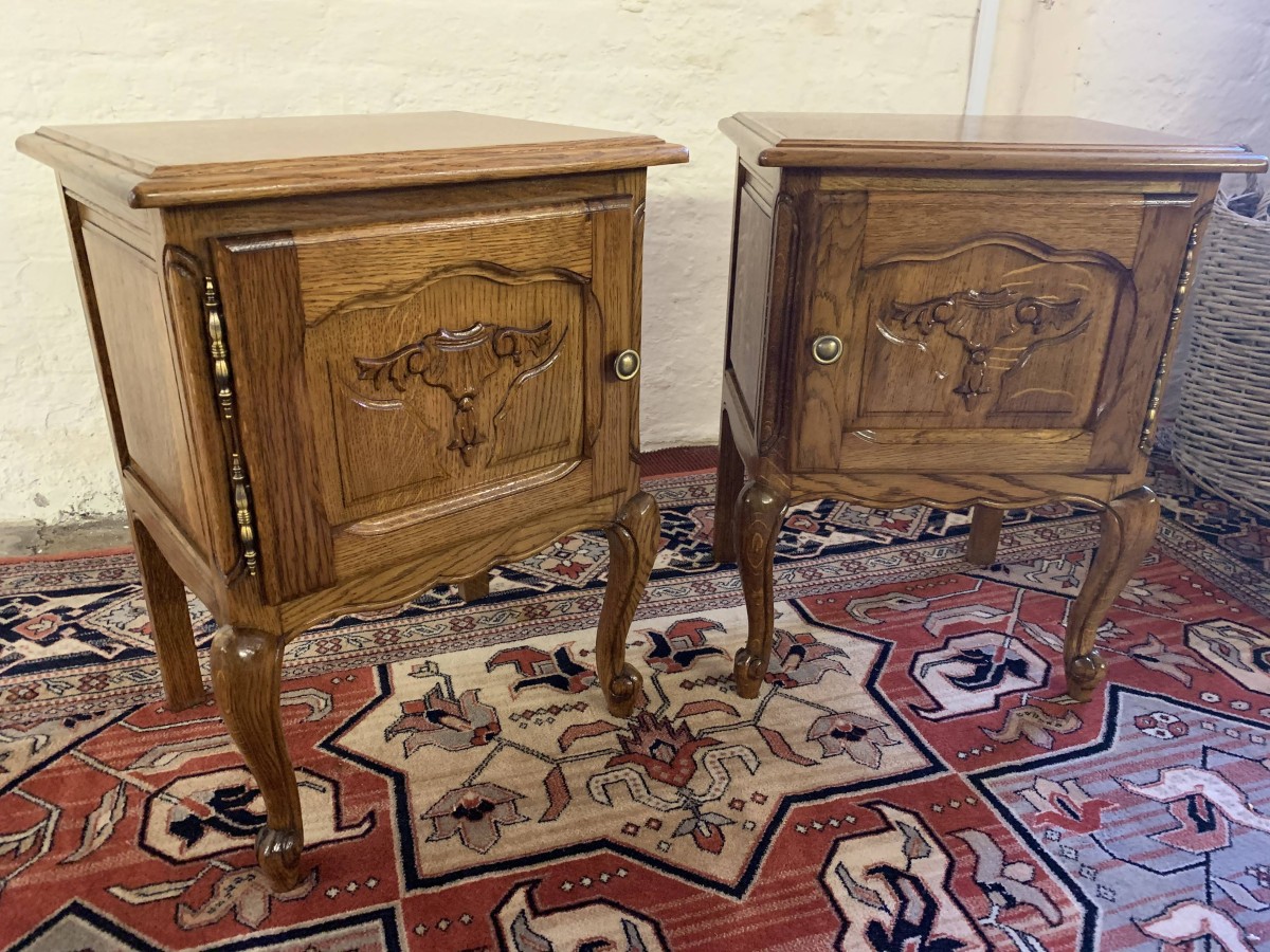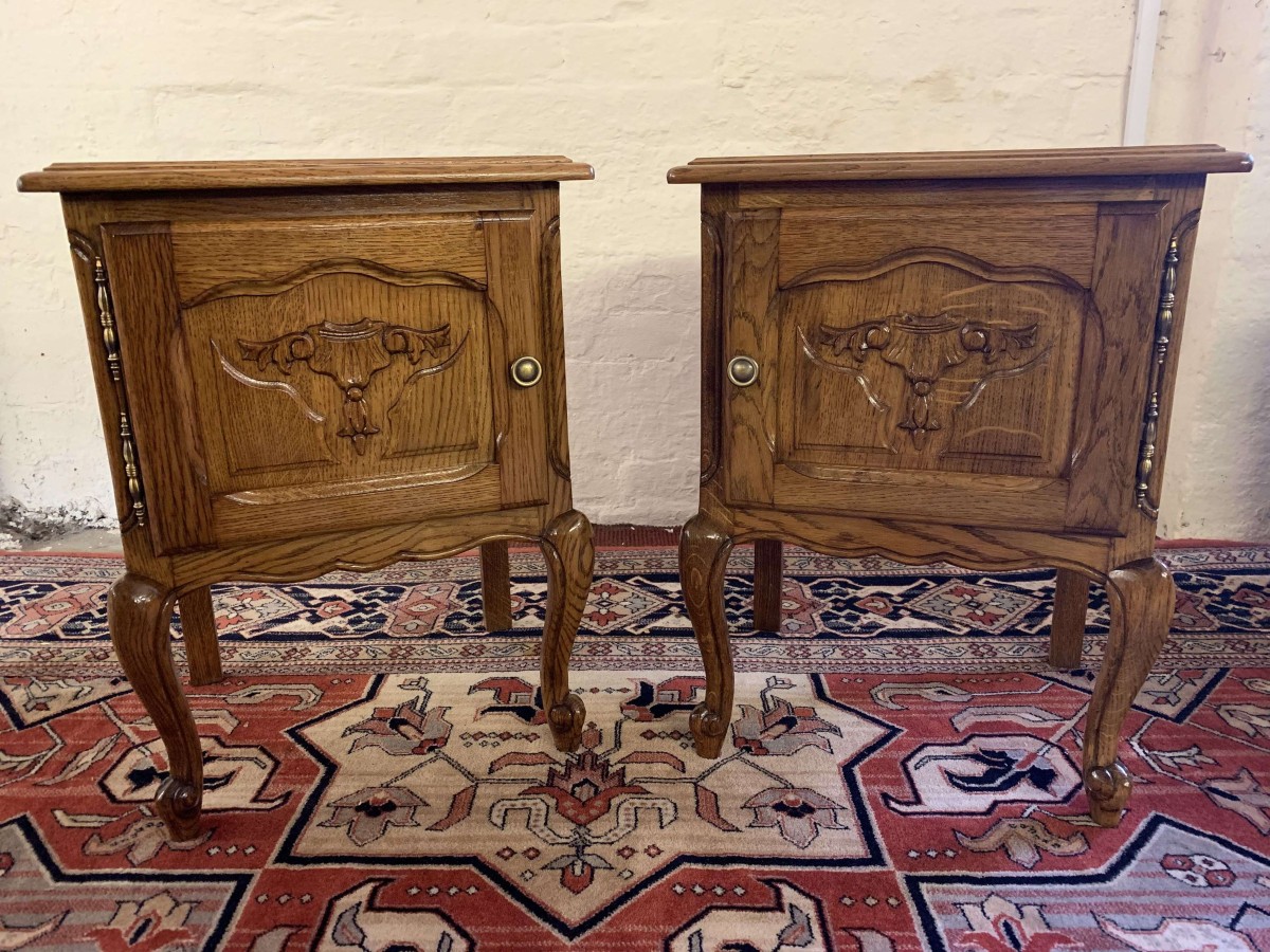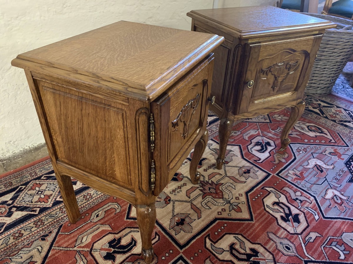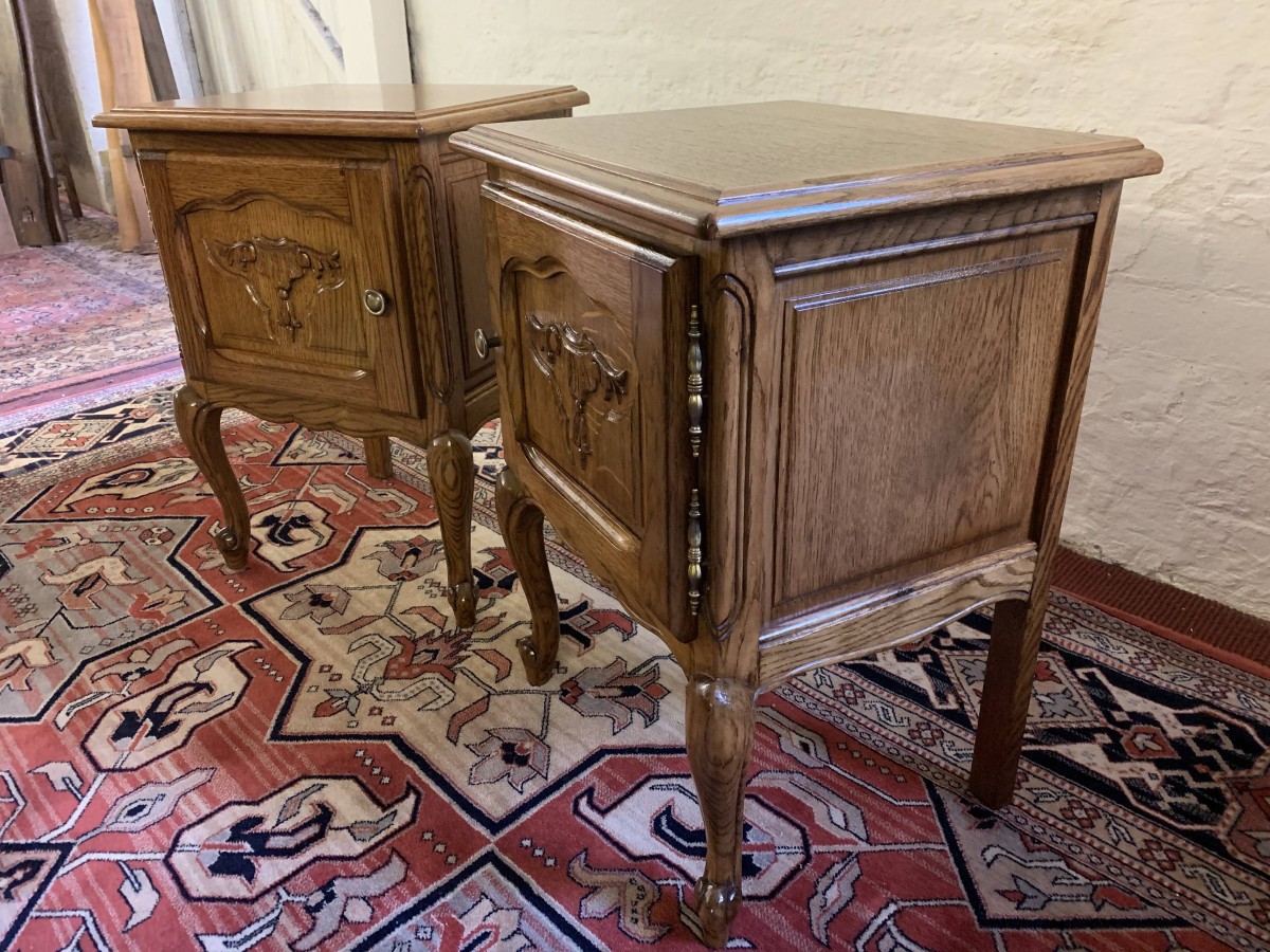 - Stylish Pair Of French Carved Oak Bedside Cabinets/tables – Now Sold