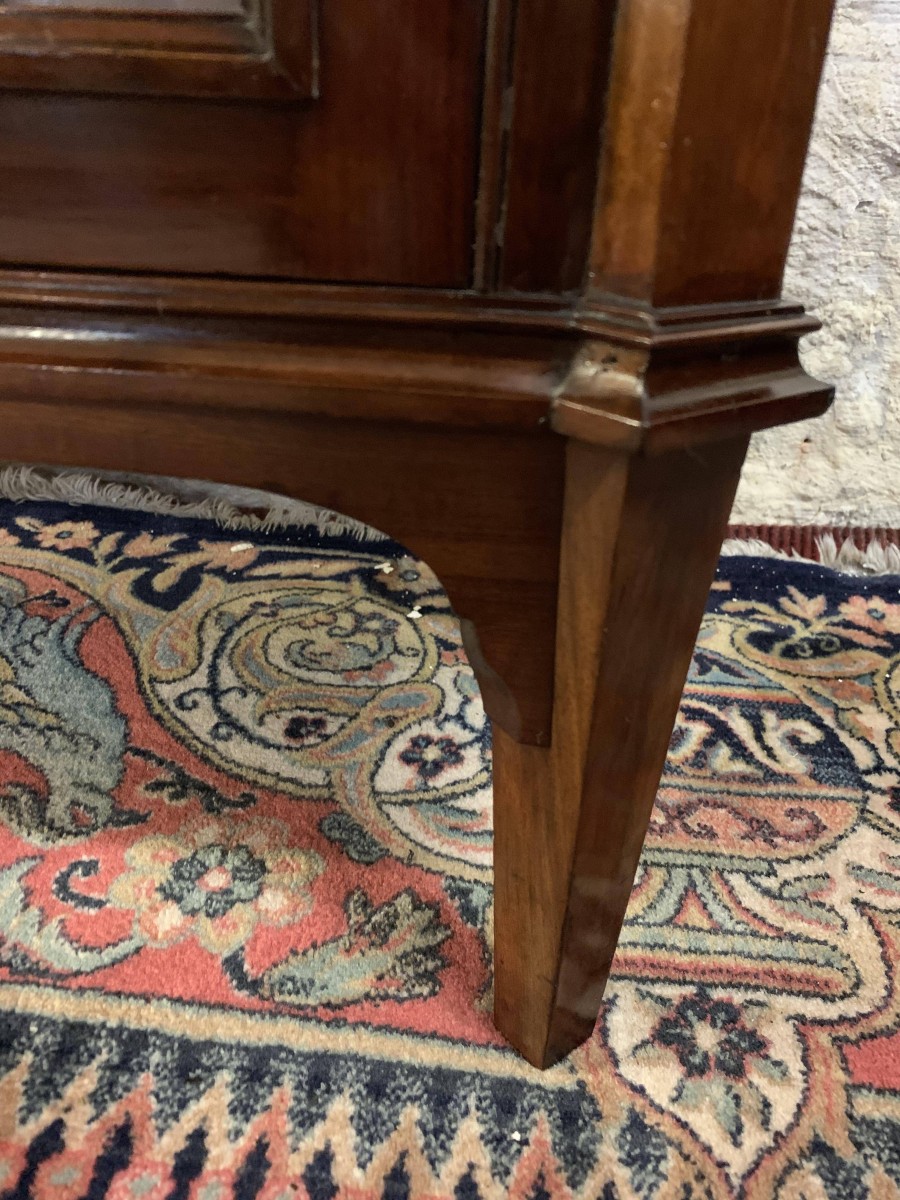 We are delighted to offer this superb quality Edwardian bookcase which is in excellent condition. The shaped over sailing top has a shaped back rail. Parquetry decoration sits above a pair of lockable astral glazed doors. The doors open to reveal three adjustable and removable shelves. Canted corners to the front, the bookcase stands firm on four tapered legs.