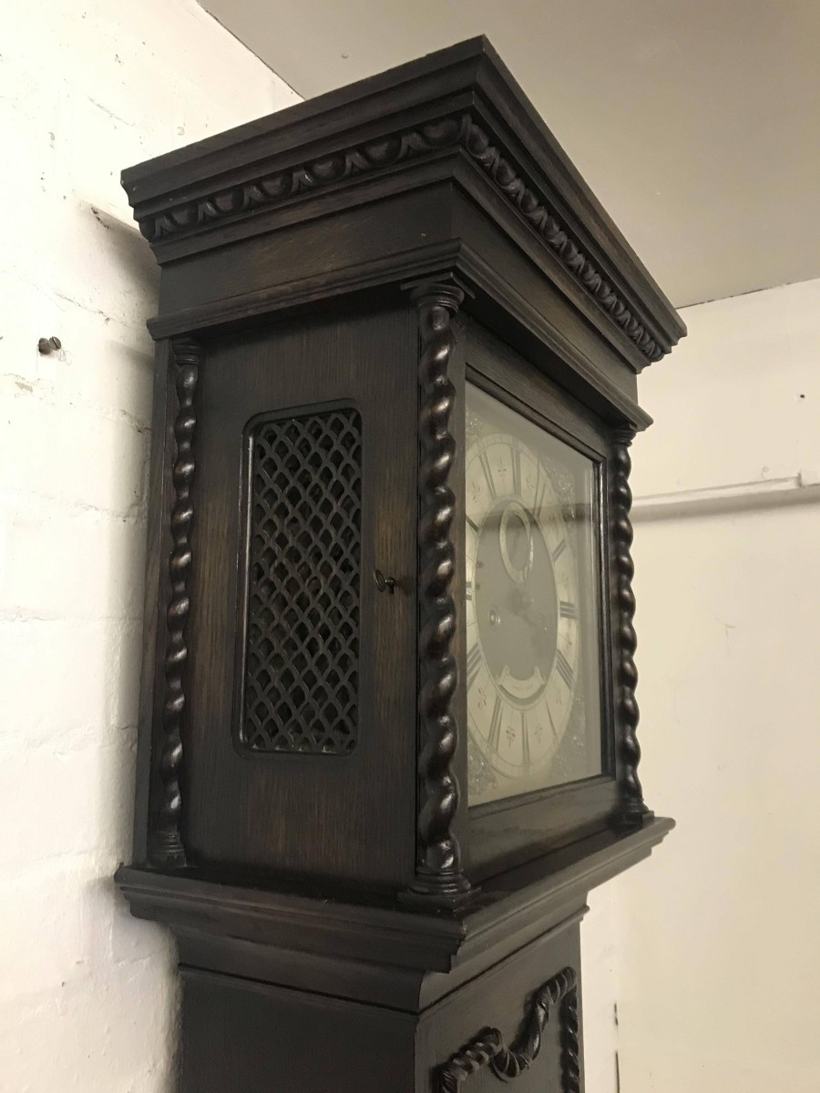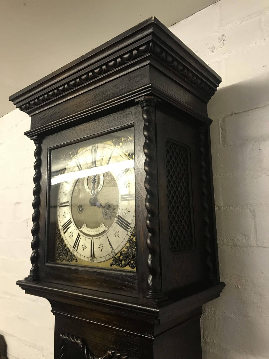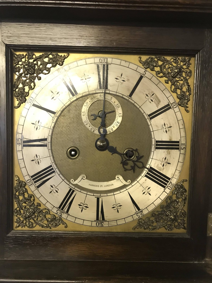 A Stunning Oak Longcase Clock Retailed by “Harrods Ltd London”