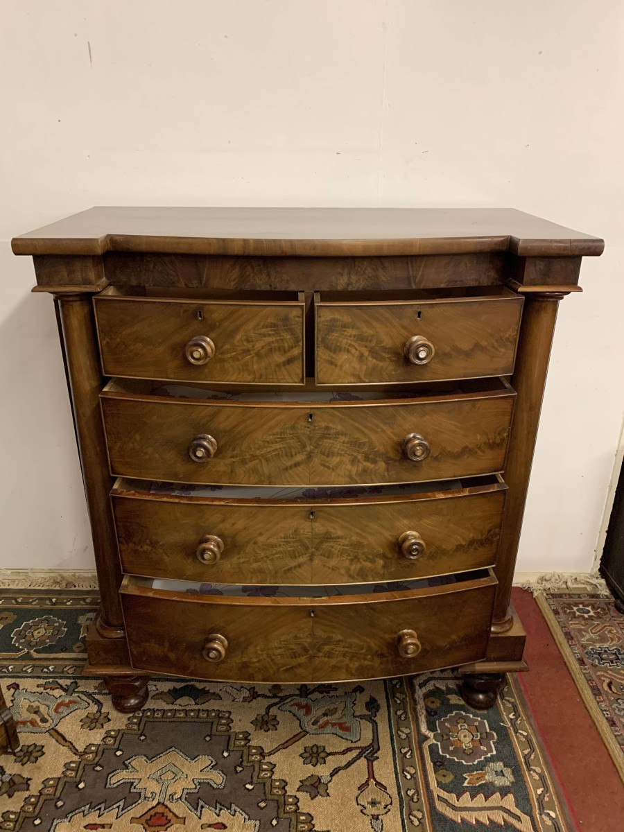 Victorian Mahogany Bow Front Chest Of Five Drawers – Now Sold