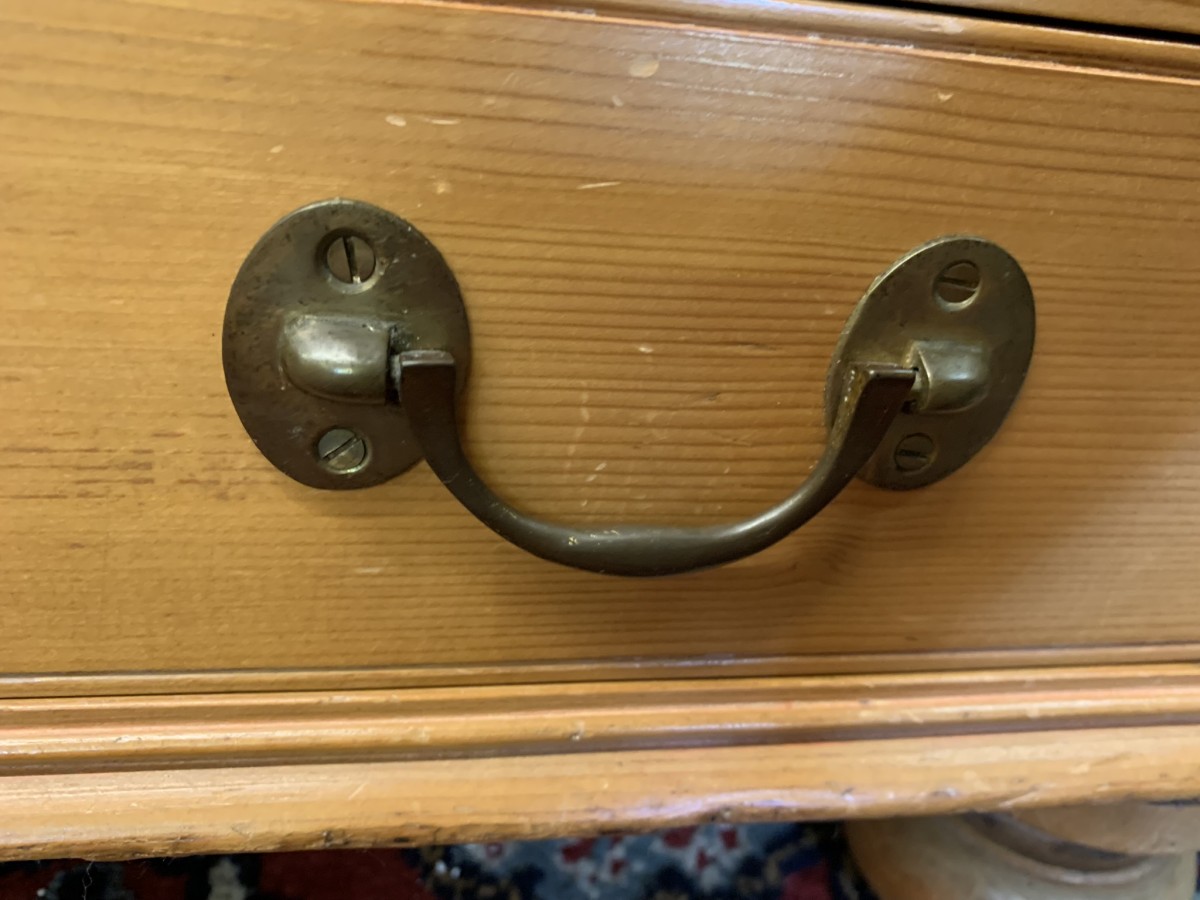 This blanket chest dates circa 1890. The lid rises to offer good size storage. Having a brass carrying handle to each side with a drawer to the front, the drawer having a pair of brass handles. This fabulous pine storage chest stands on four turned feet.