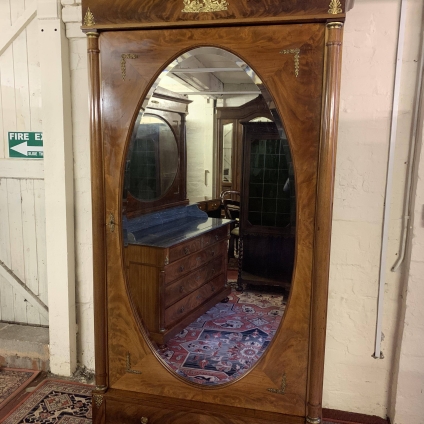 Previously SoldStunning Antique Satin Walnut Inlaid Serpentine Shaped Fitted Wardrobe Circa1900 – Now Sold